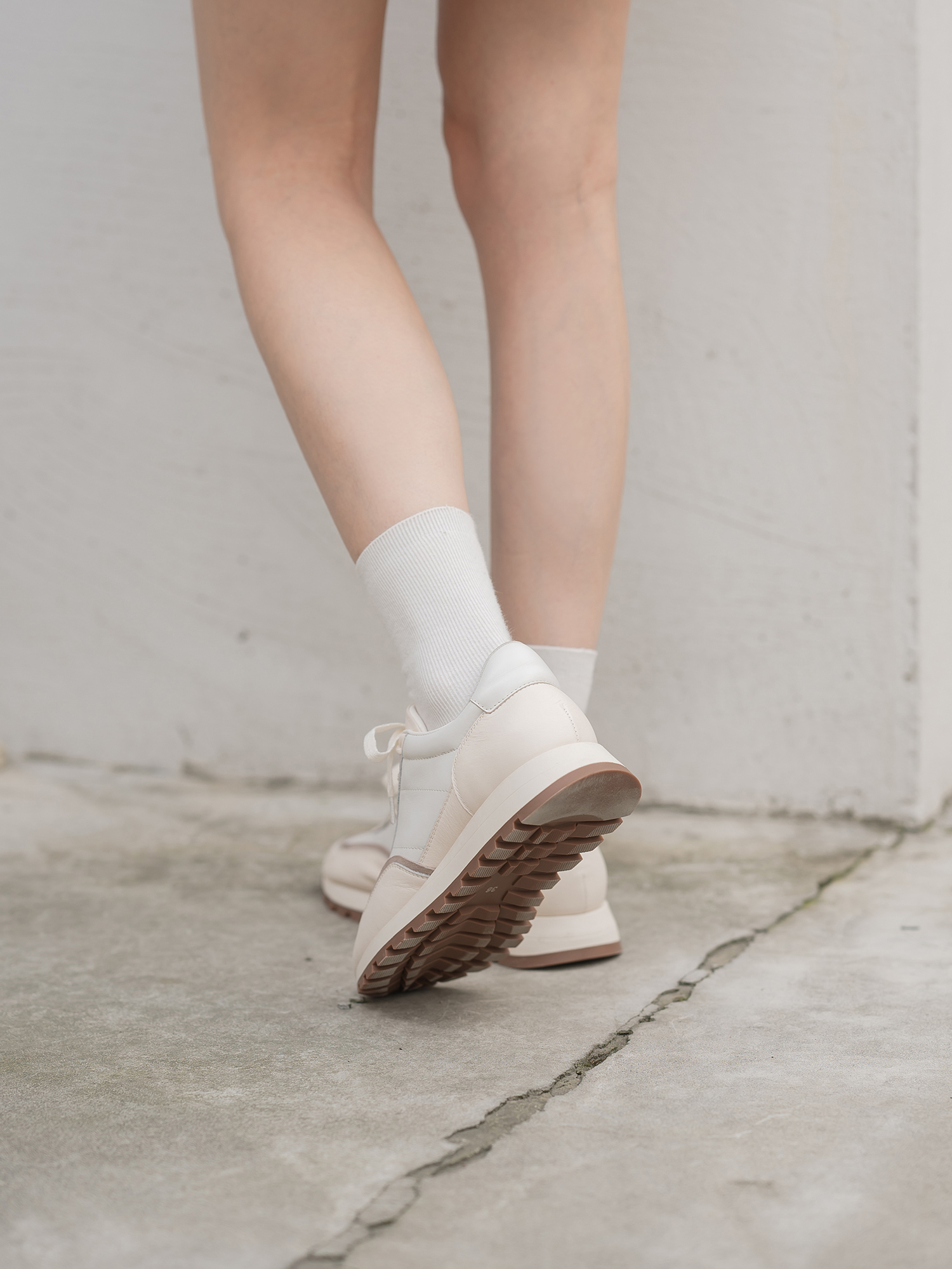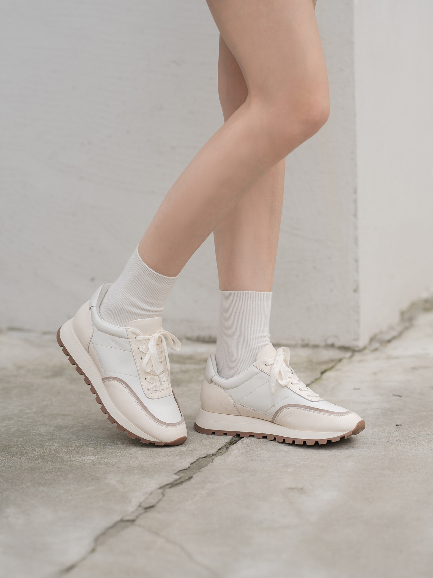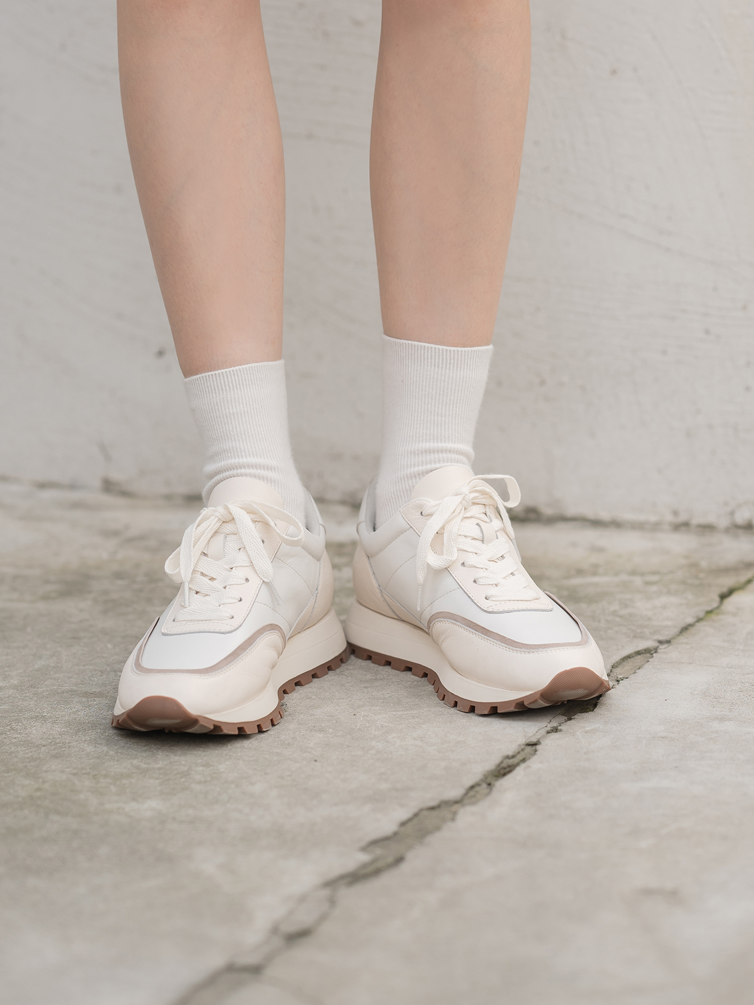 米白 奶白色小牛皮/浅杏色羊猄/白色納帕小牛皮鞋裡:羊皮