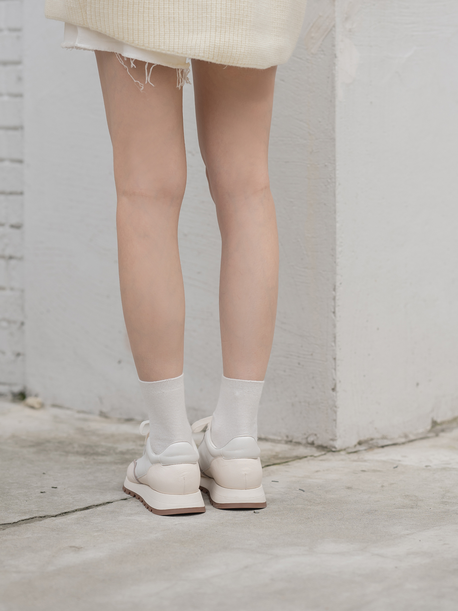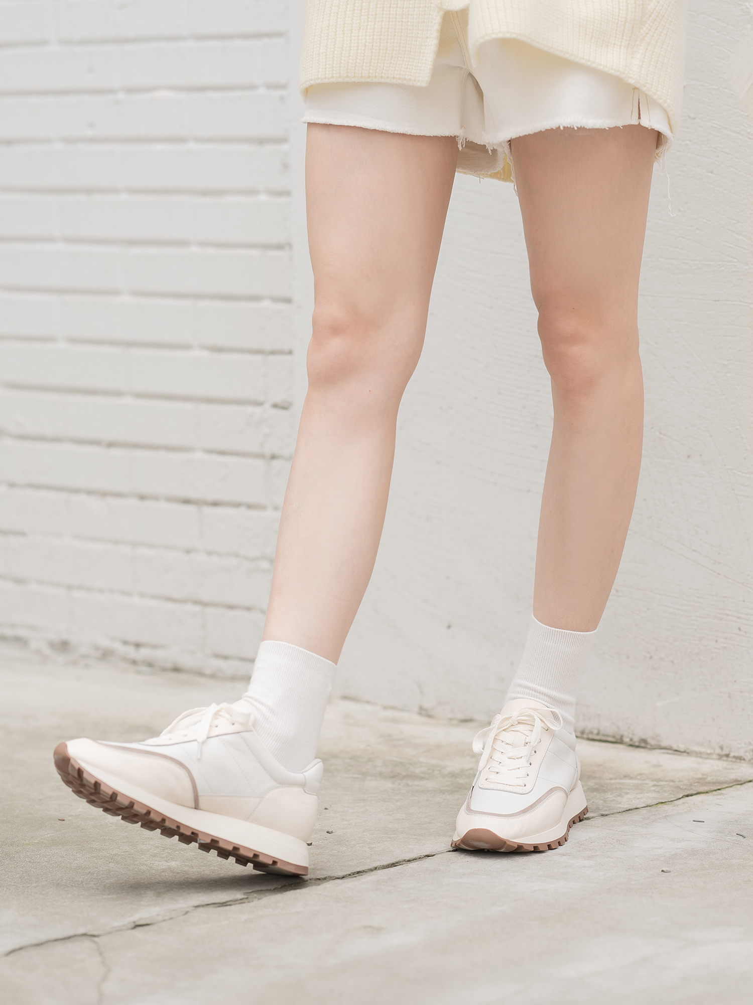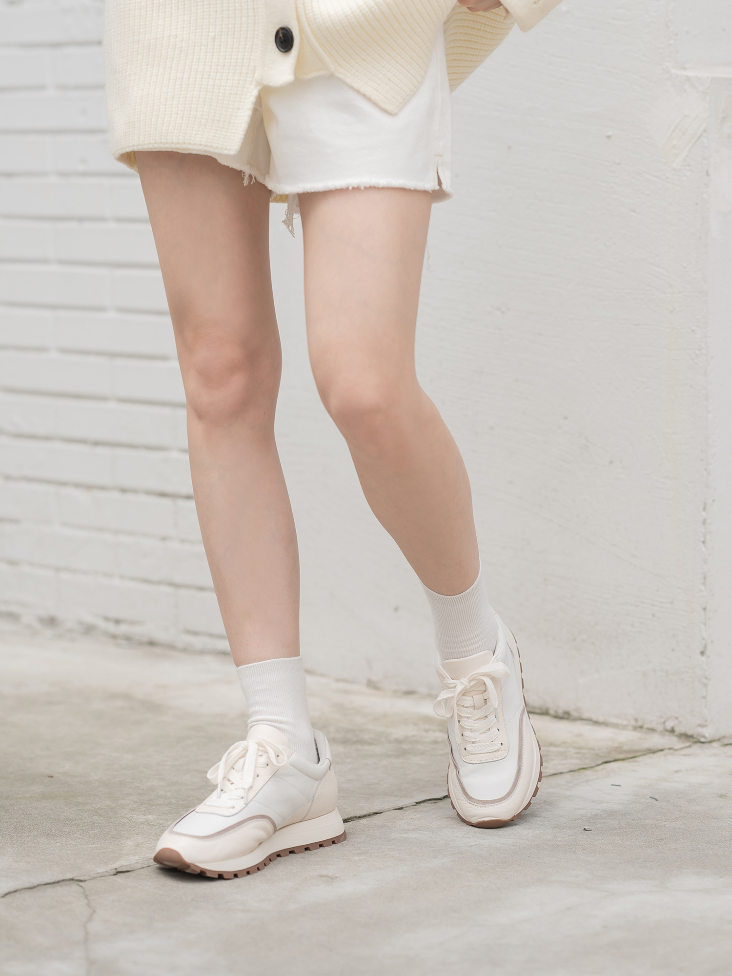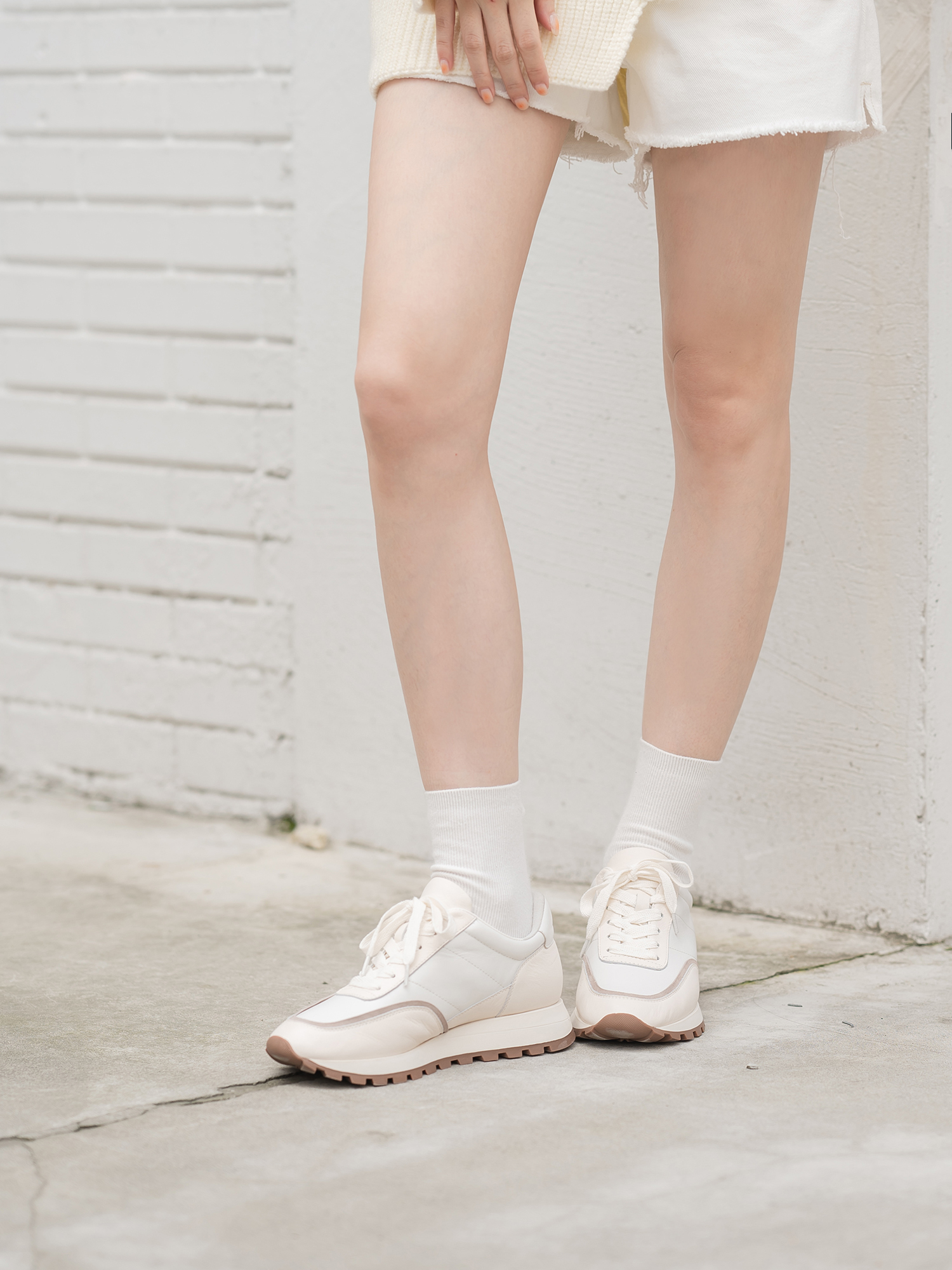 米白 奶白色小牛皮/浅杏色羊猄/白色納帕小牛皮鞋裡:羊皮