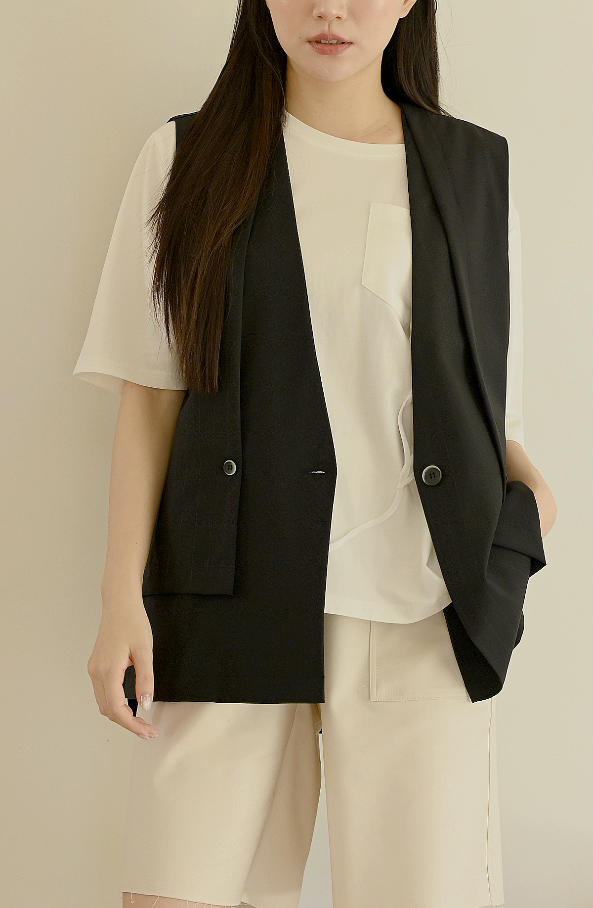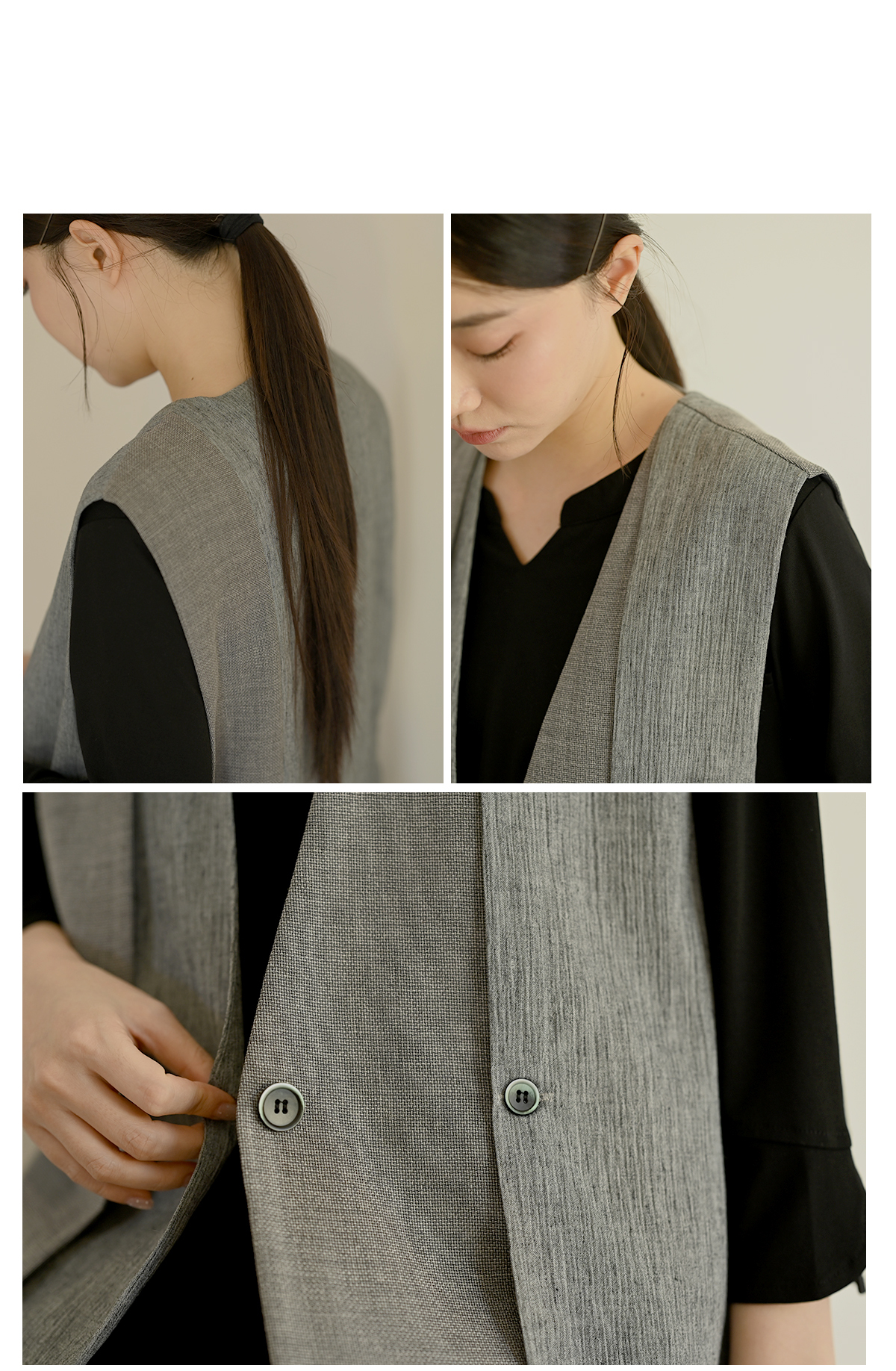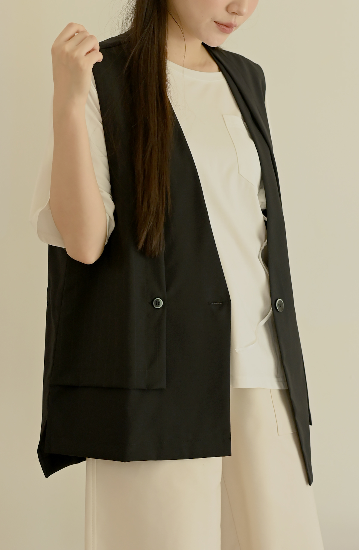 線條領口-無領西裝背心