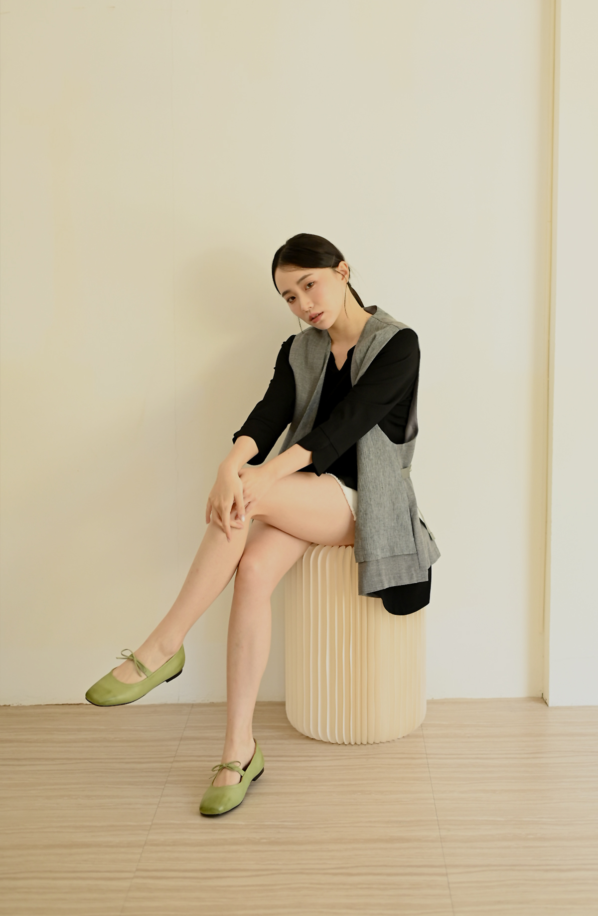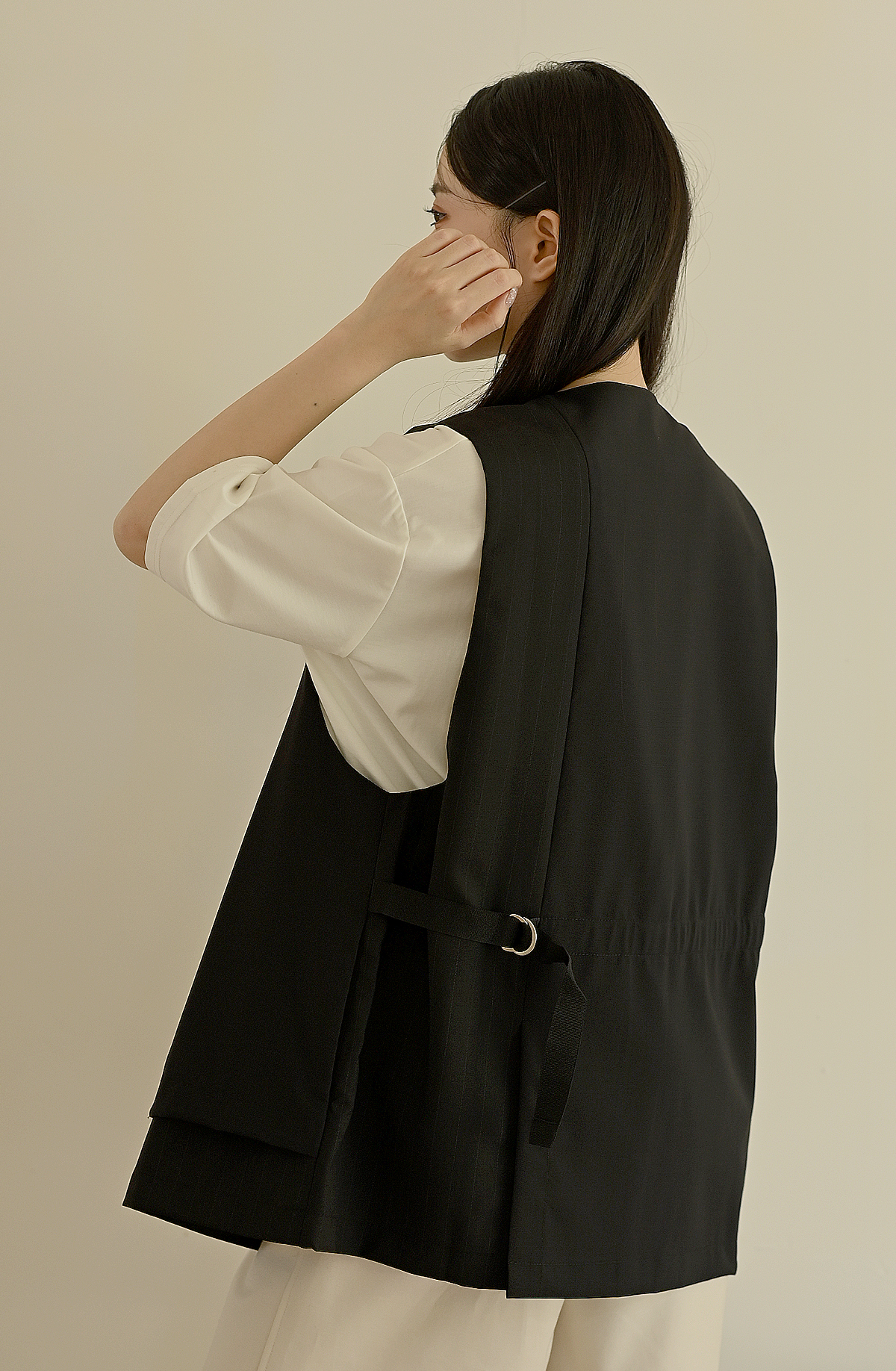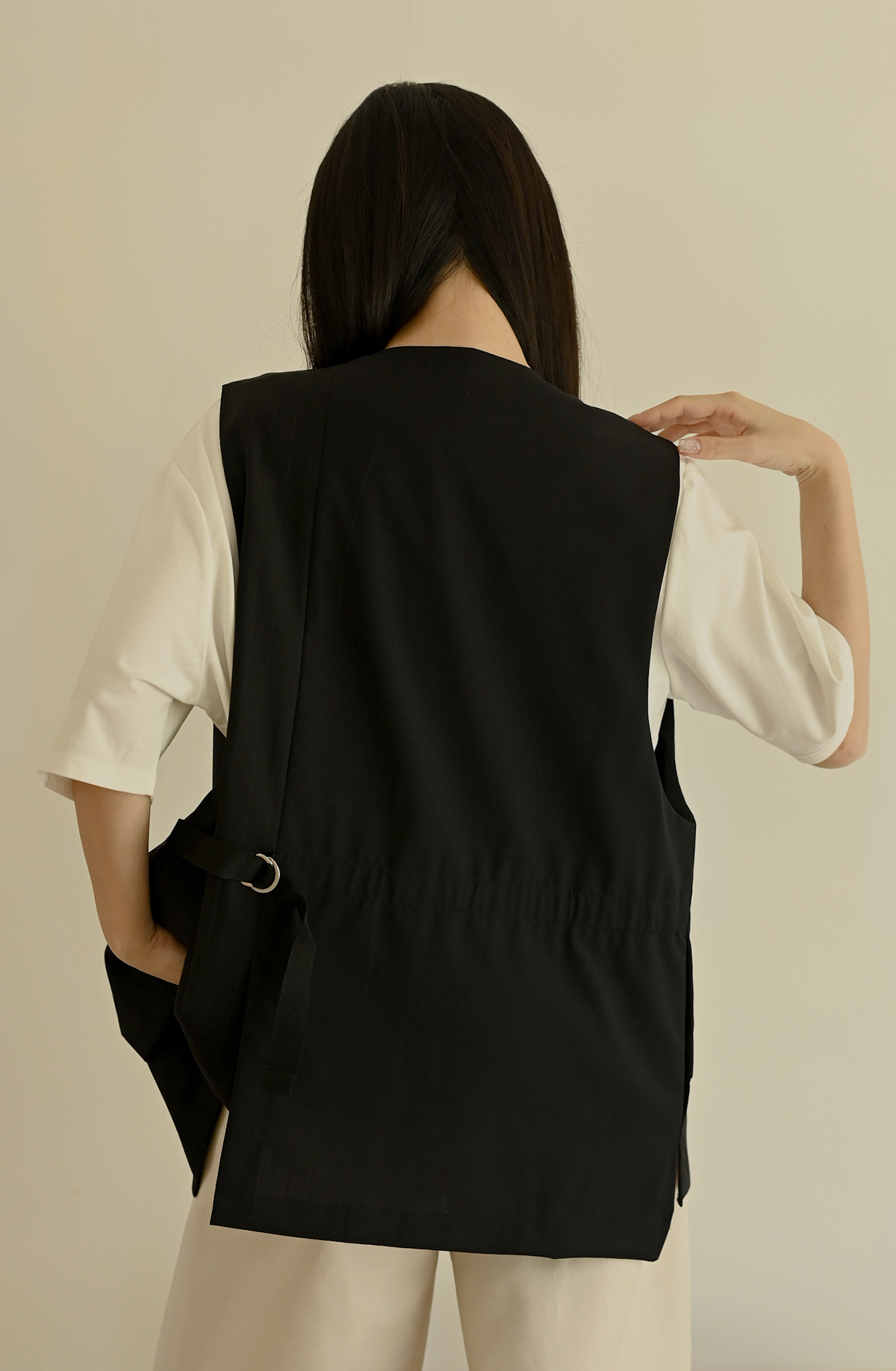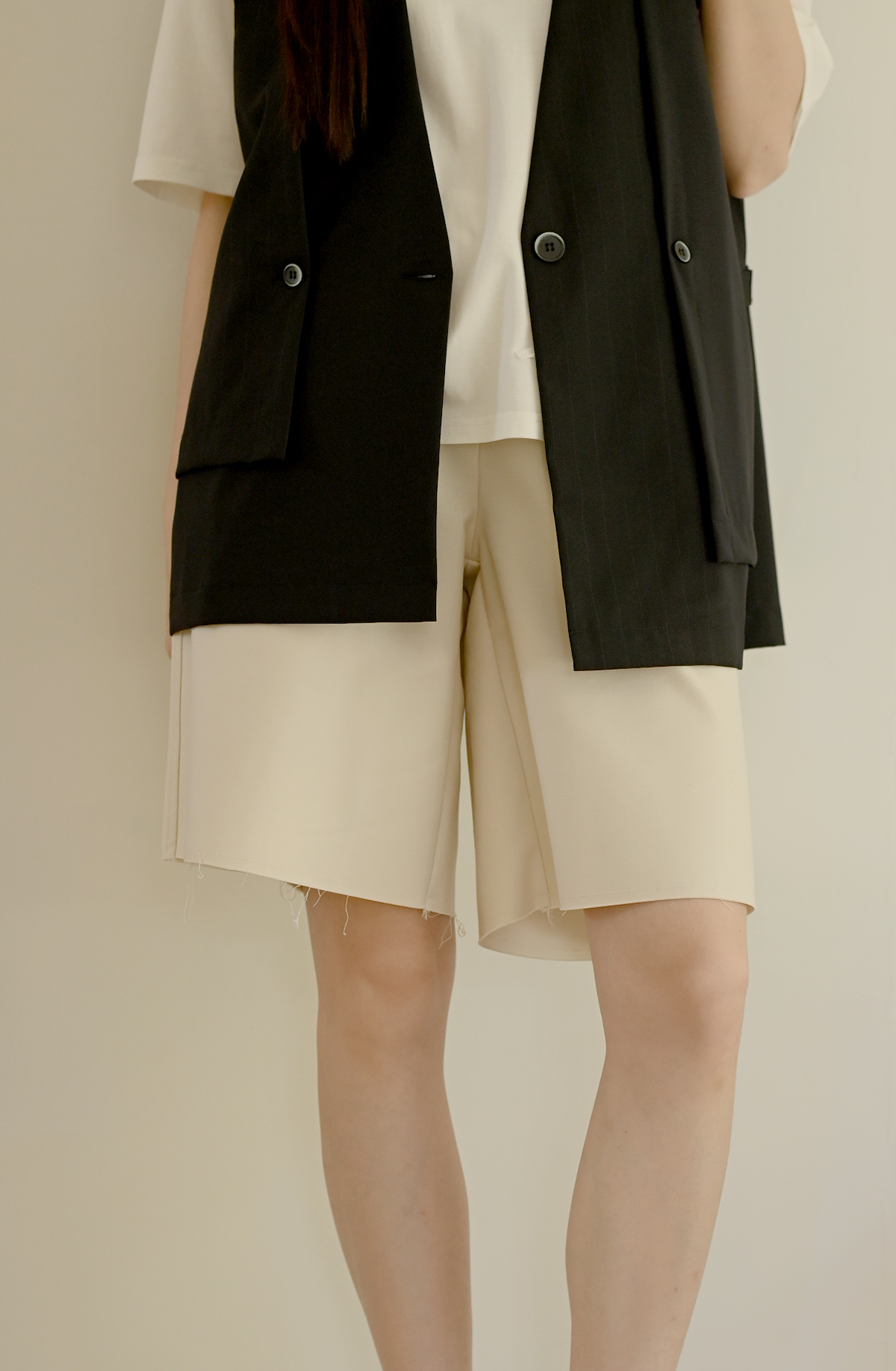 線條領口-無領西裝背心