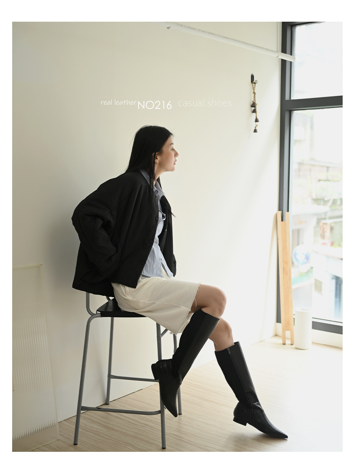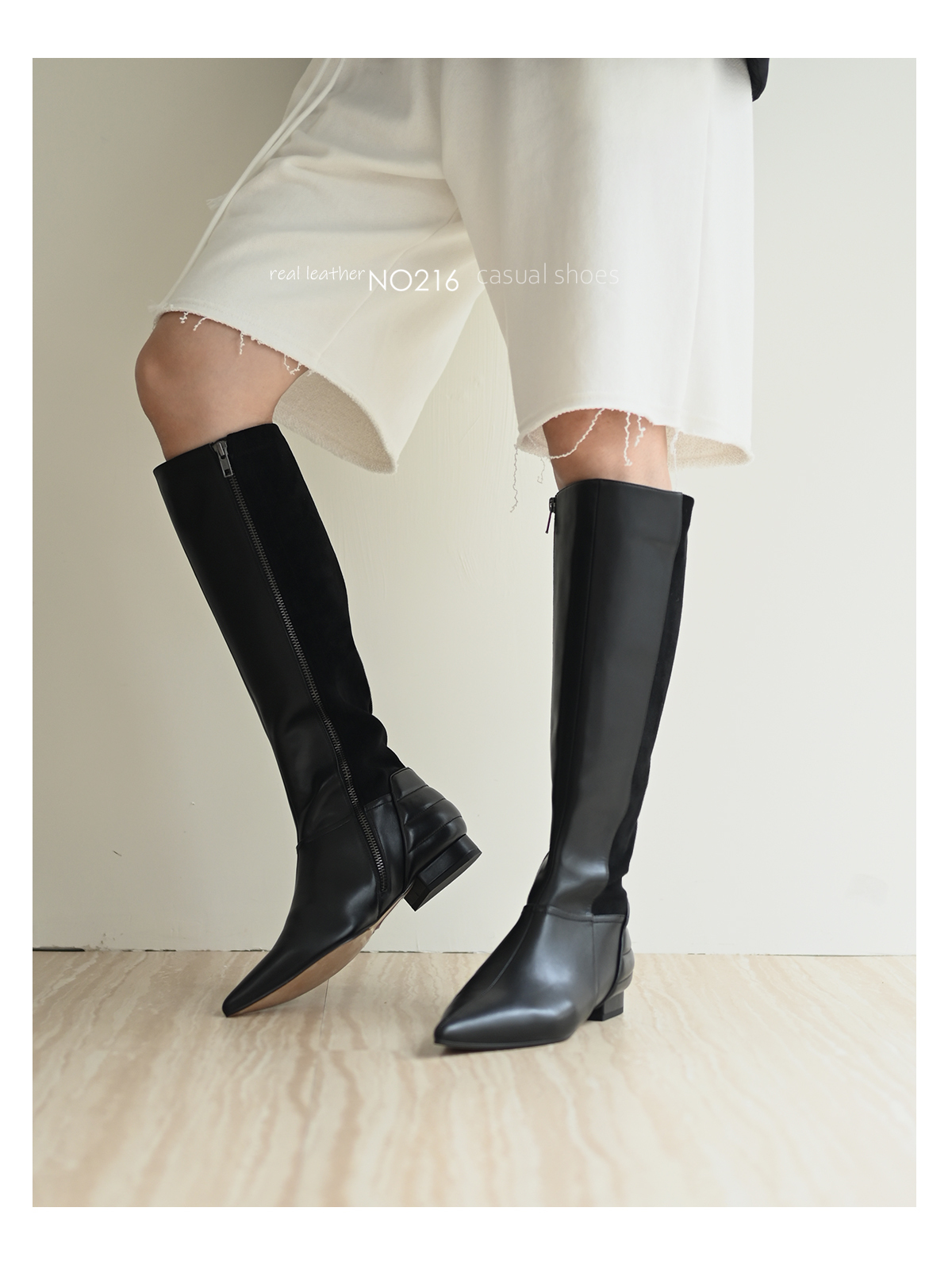 整體拉長身型線條的及膝長靴