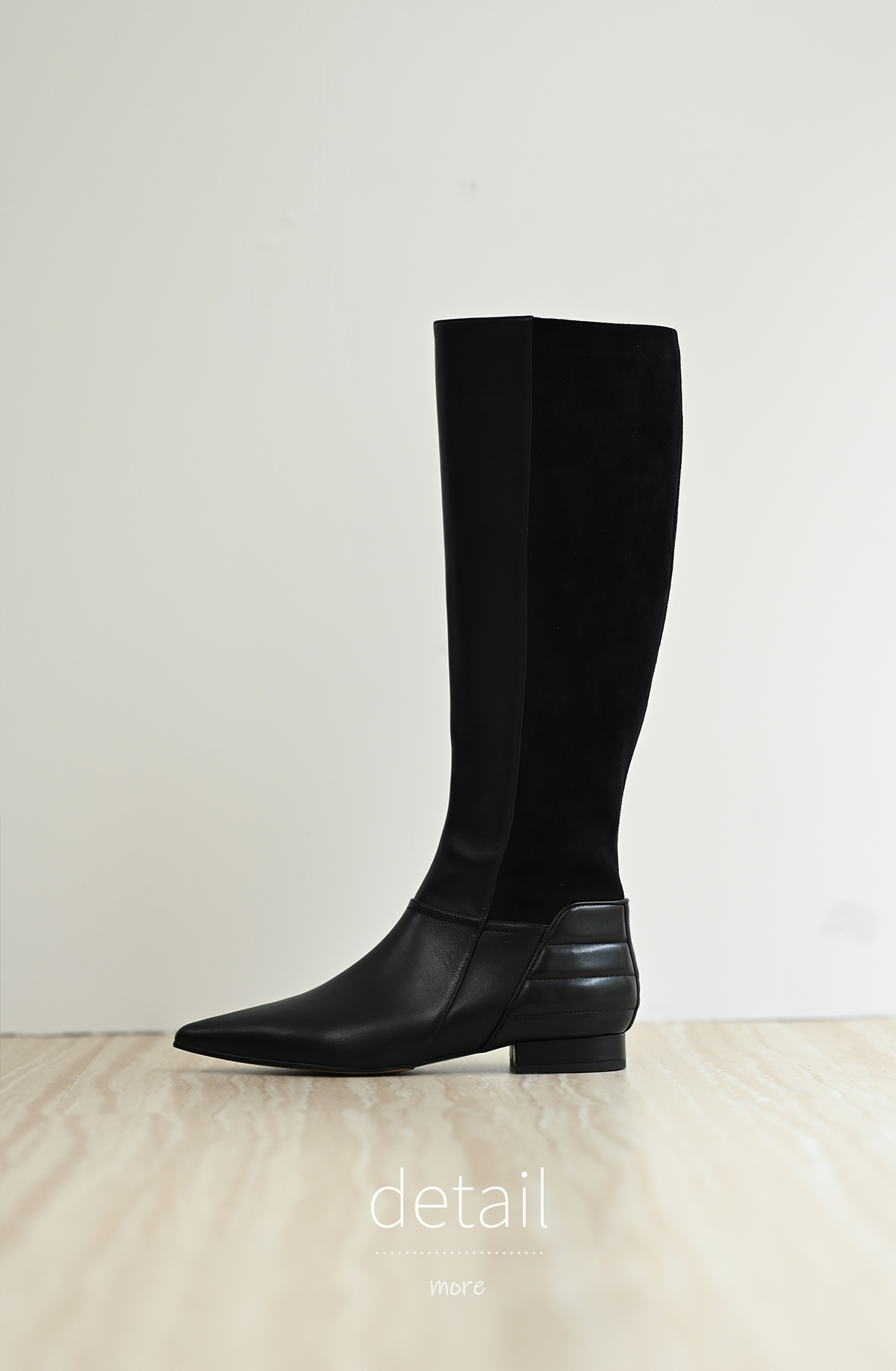 牛皮尖頭低跟騎士靴
