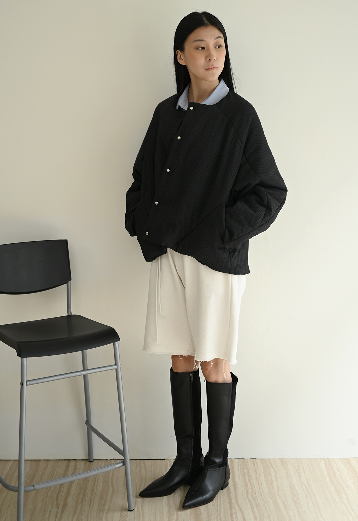 搭配中性五分褲+襯衫上衣