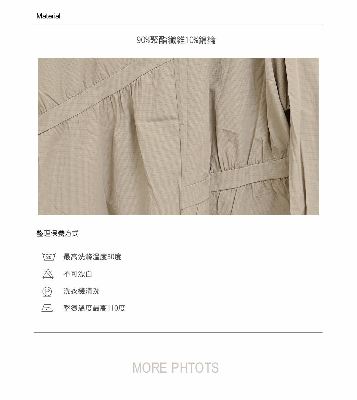 下方有詳細圖表說明和衣物保養方式