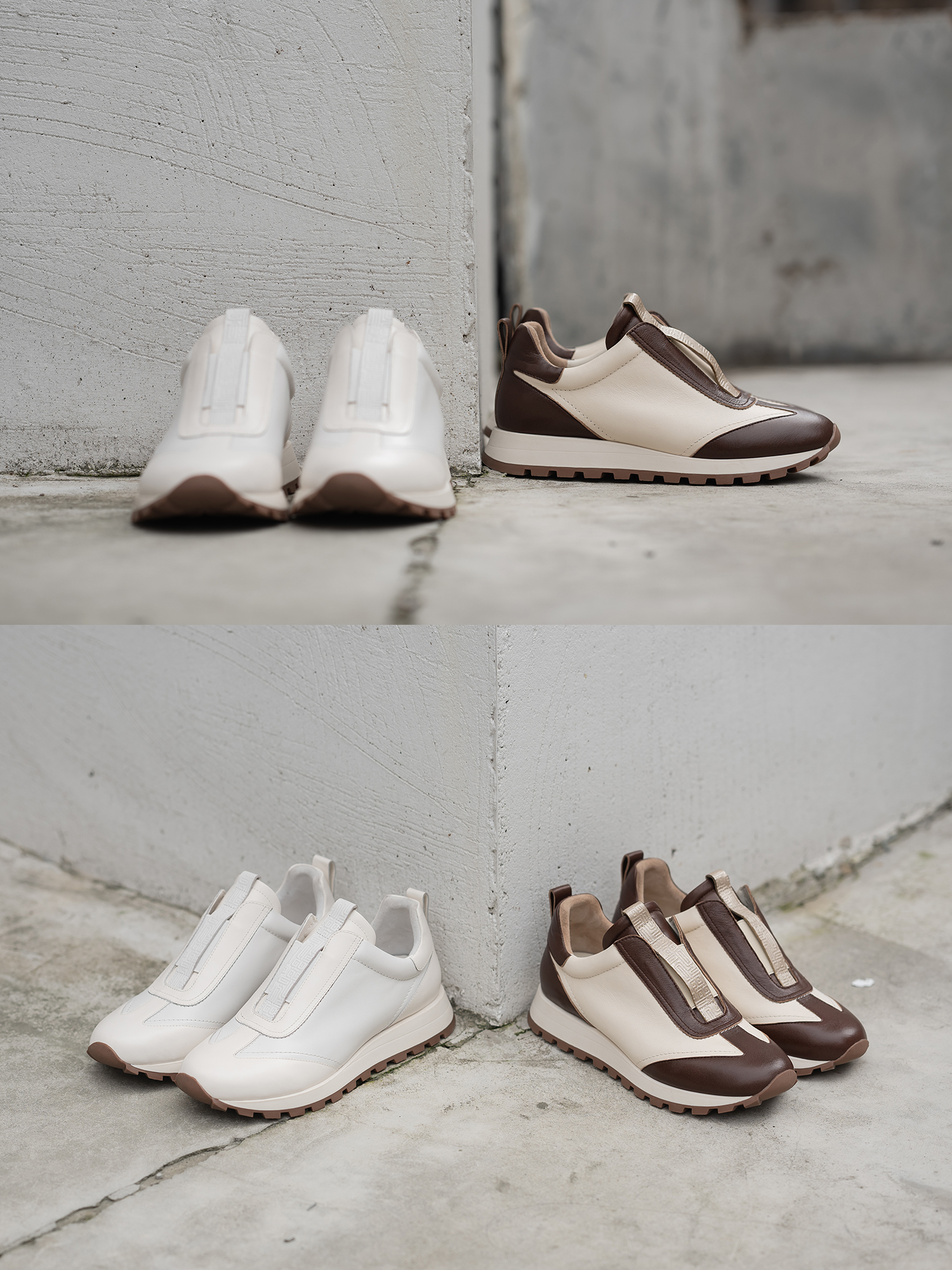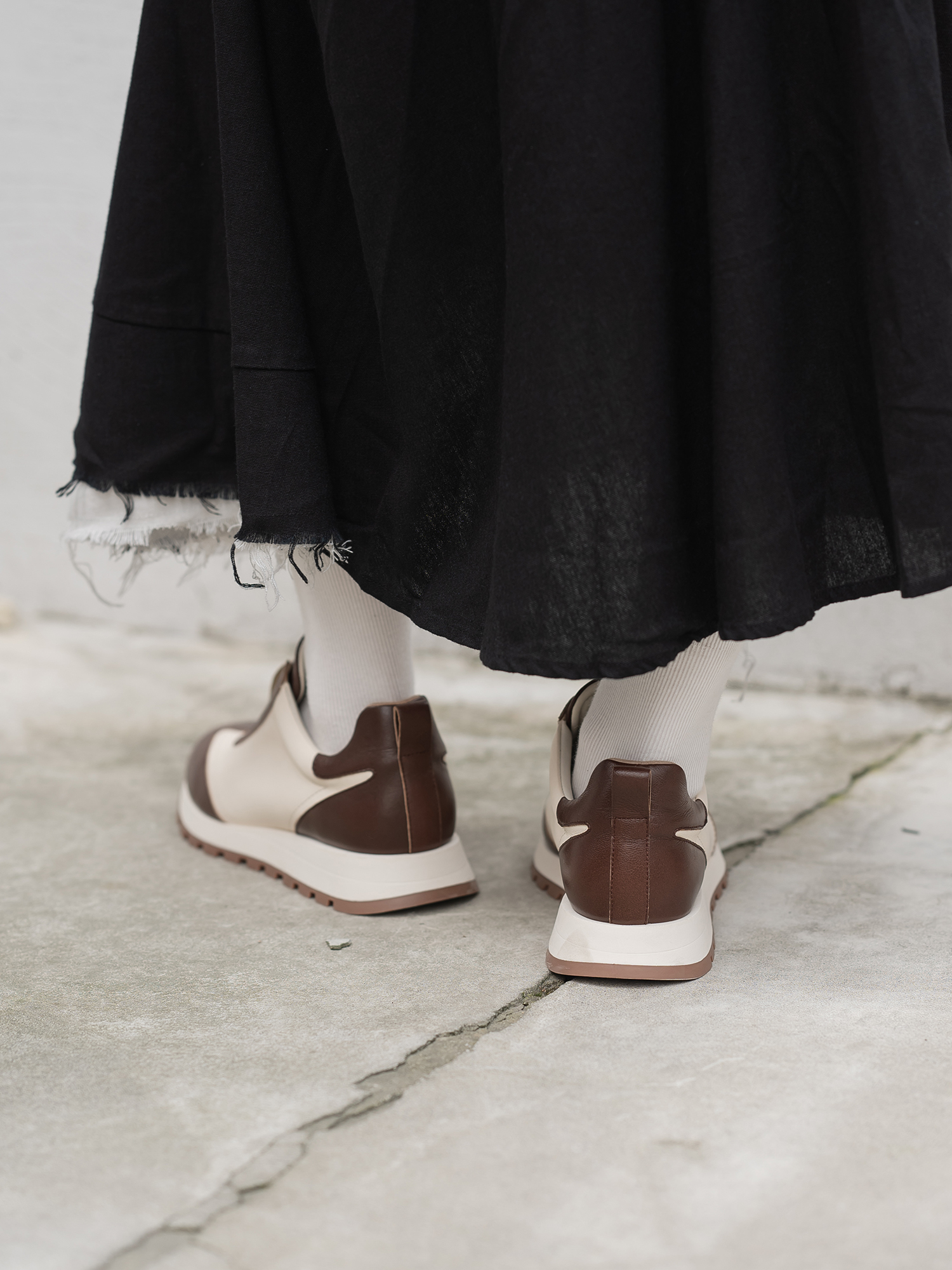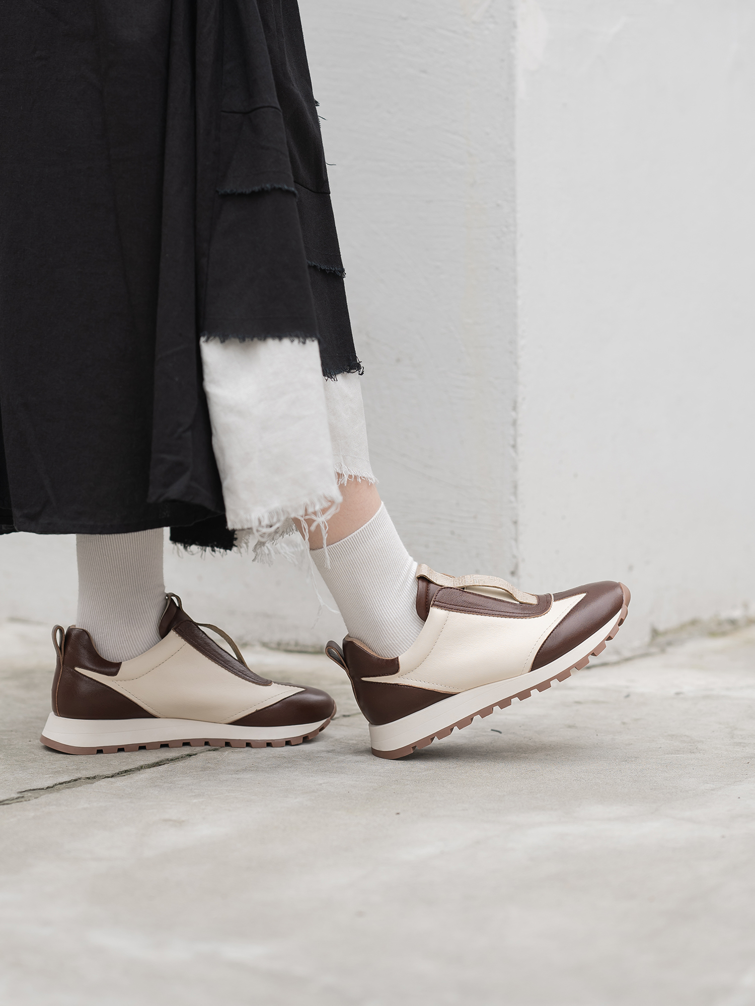 咖啡 浅色咖啡鹿皮 /奶白色小牛皮/香檳色迷宮紋牛皮