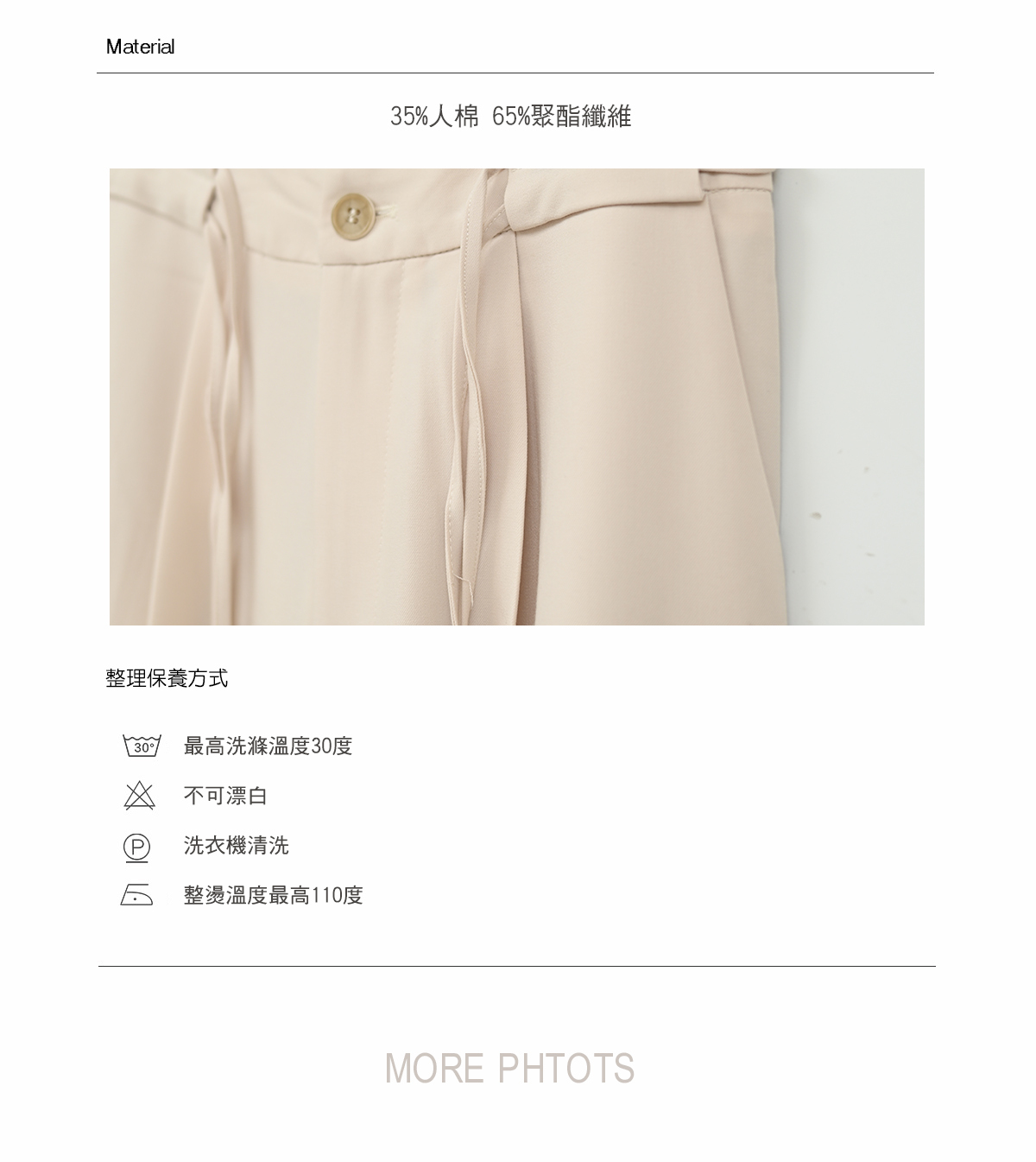 下方有詳細圖表說明和衣物保養方式