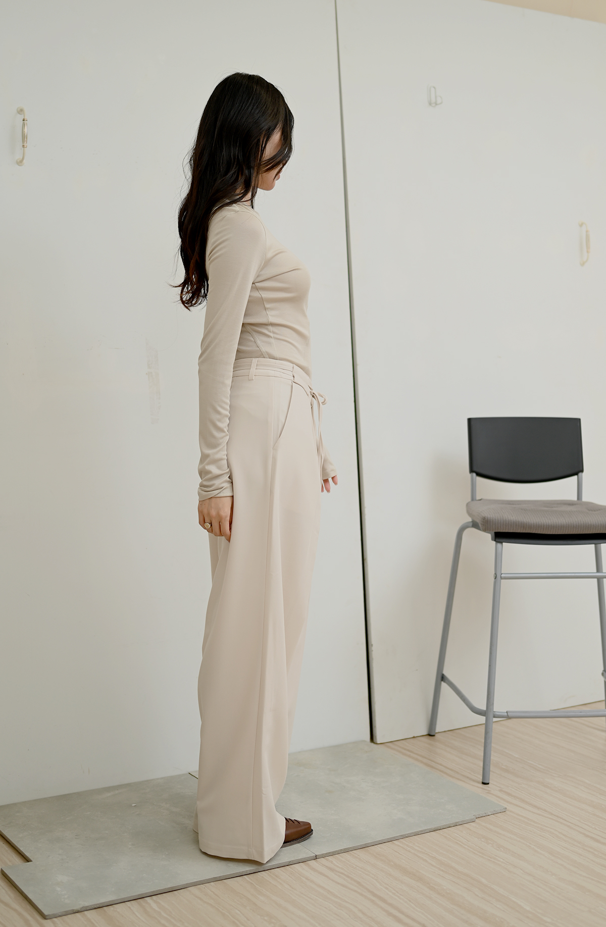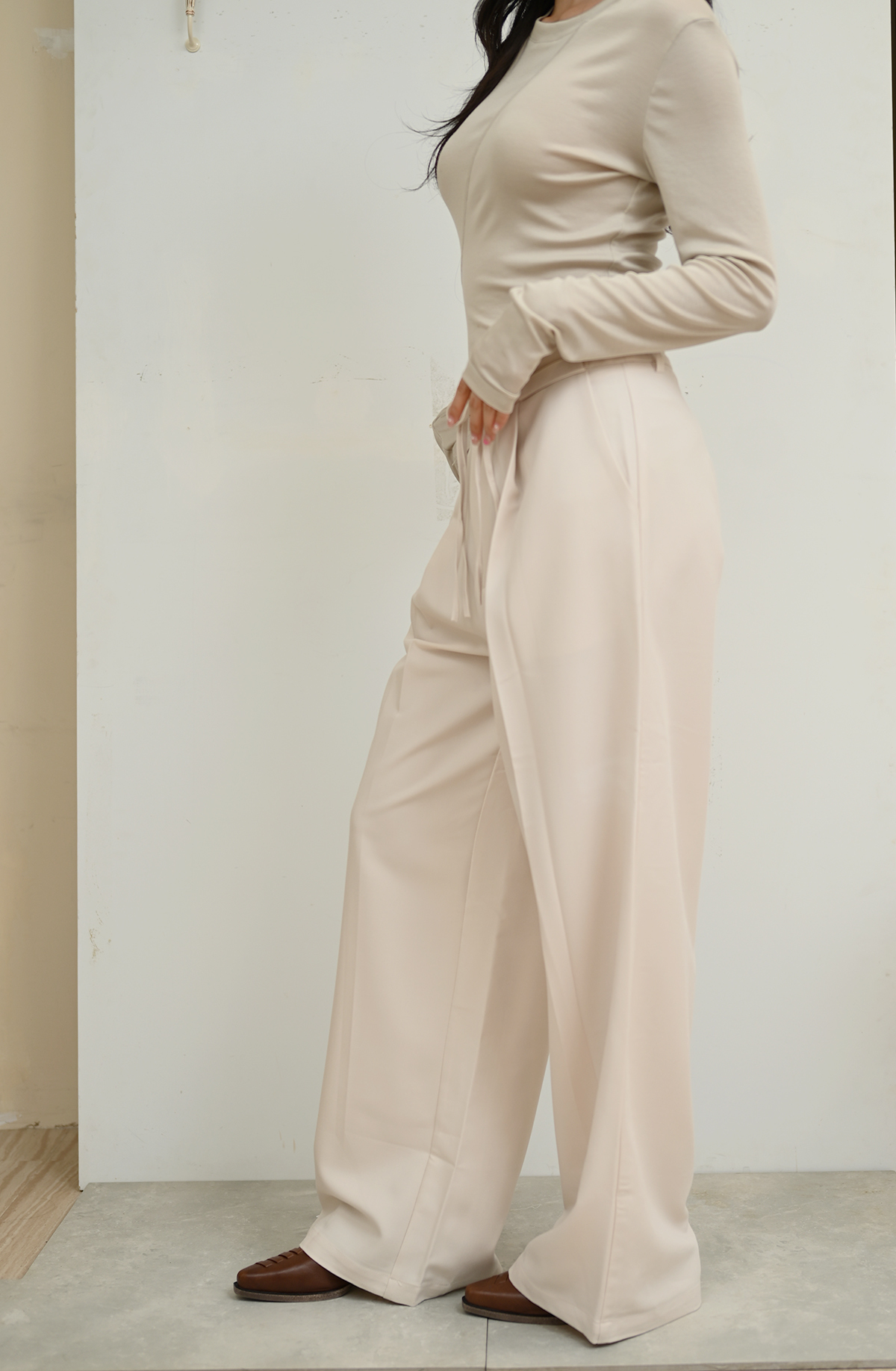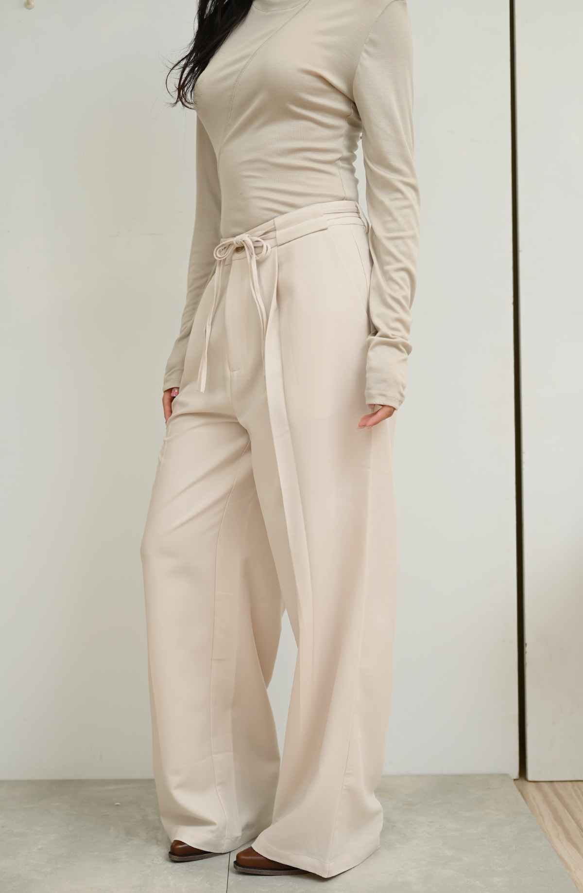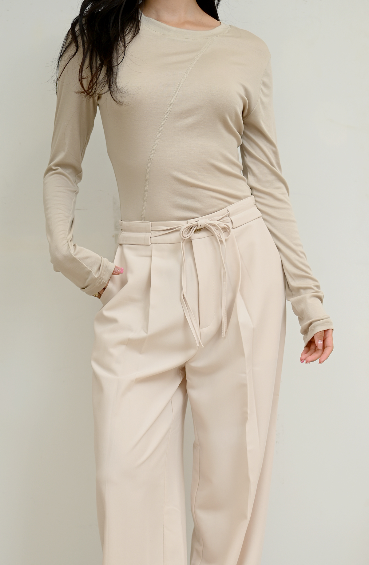 立體剪裁抽帶-直筒休閒西裝褲