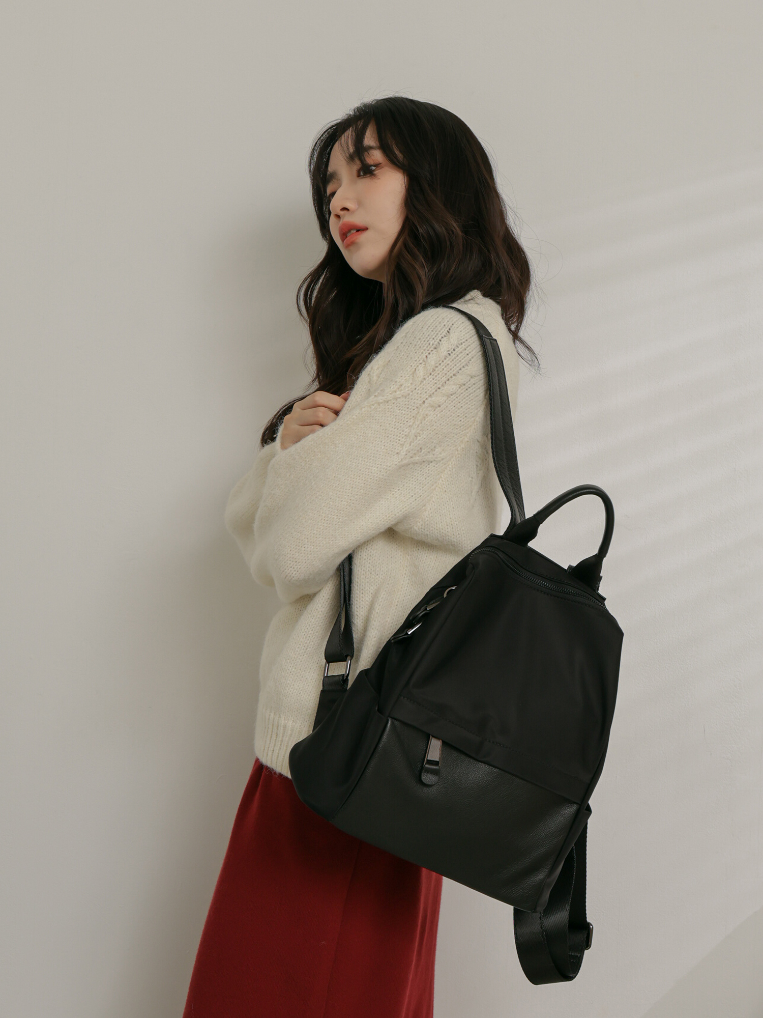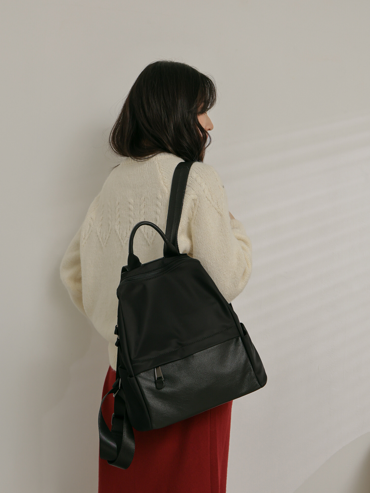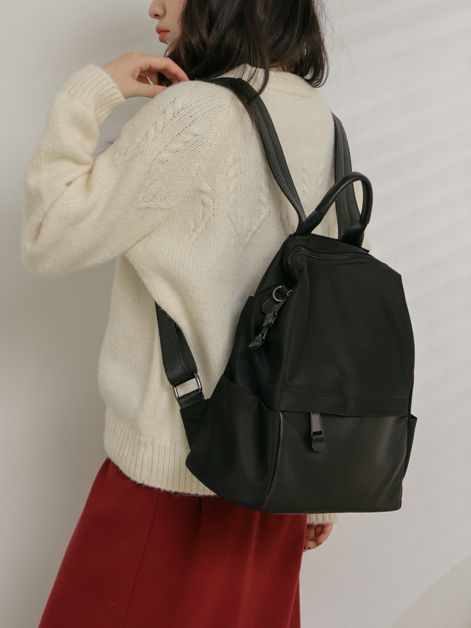 簡約學院風-雙材質後背包
