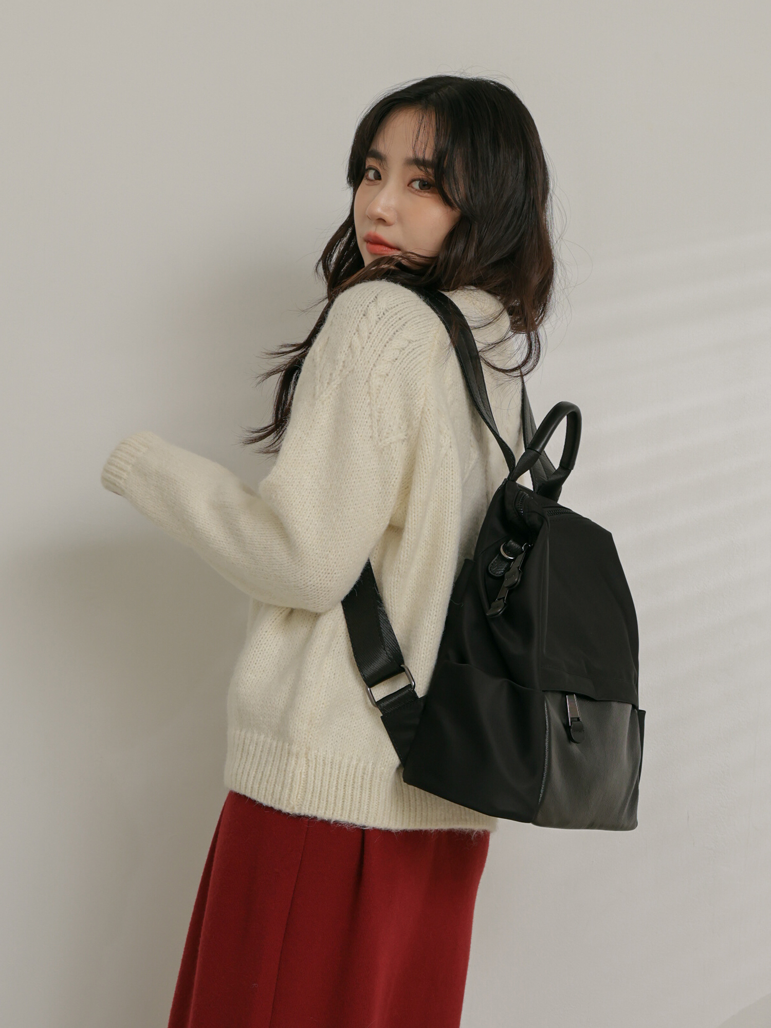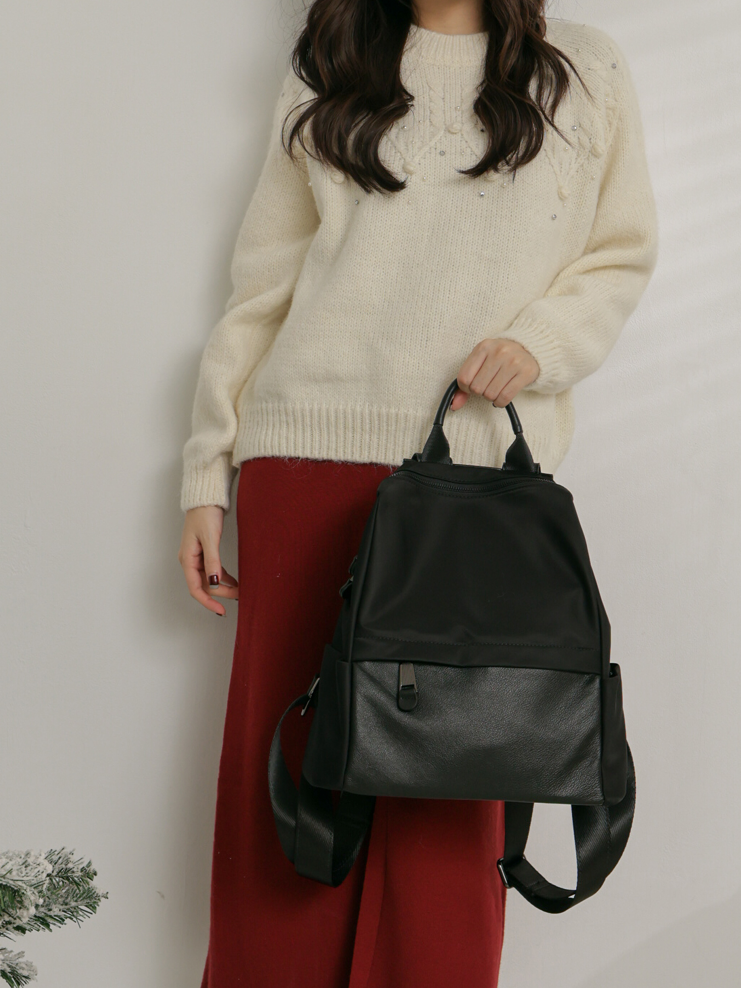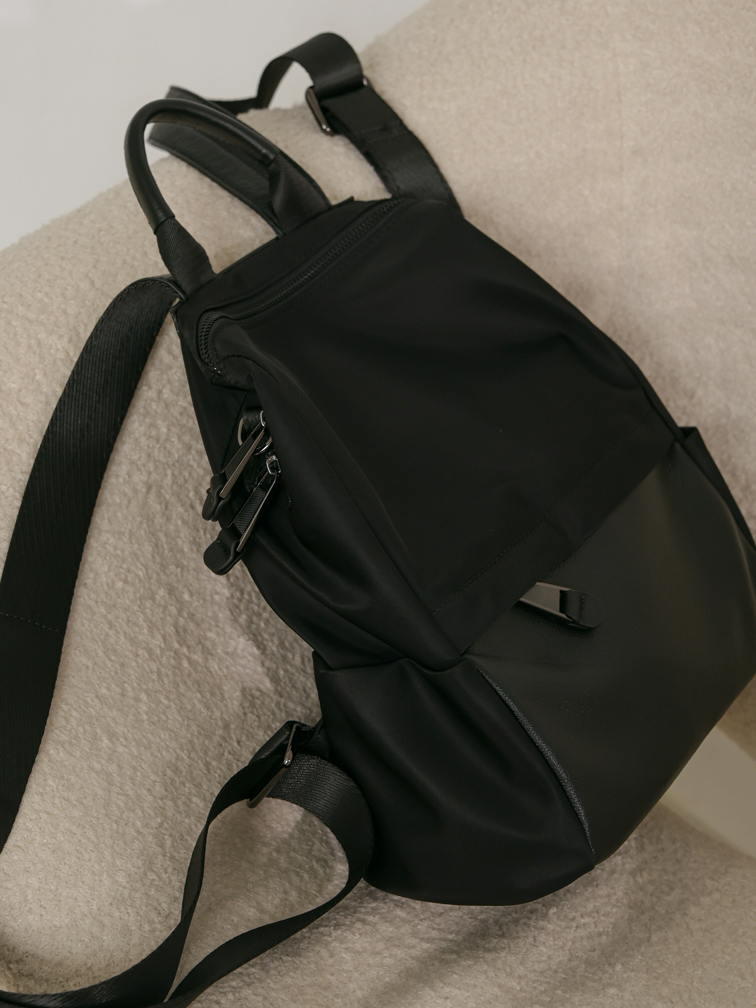 簡約學院風-雙材質後背包