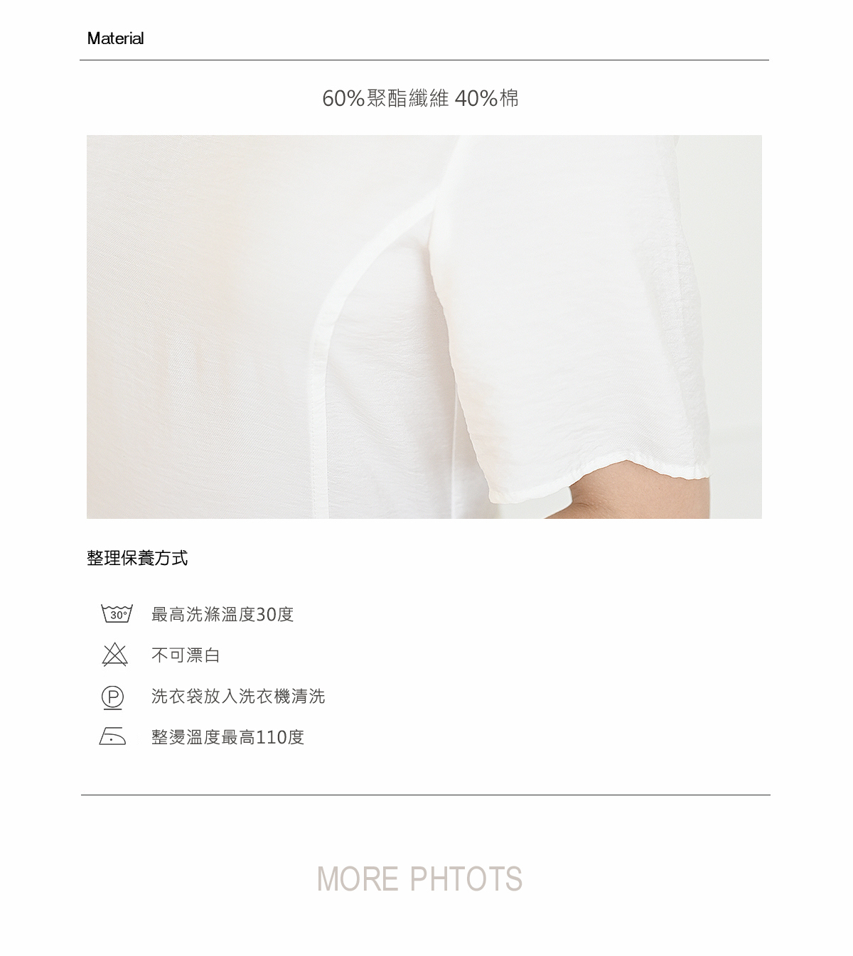 |尺寸和面料|下方有圖表說明 衣物保養方式