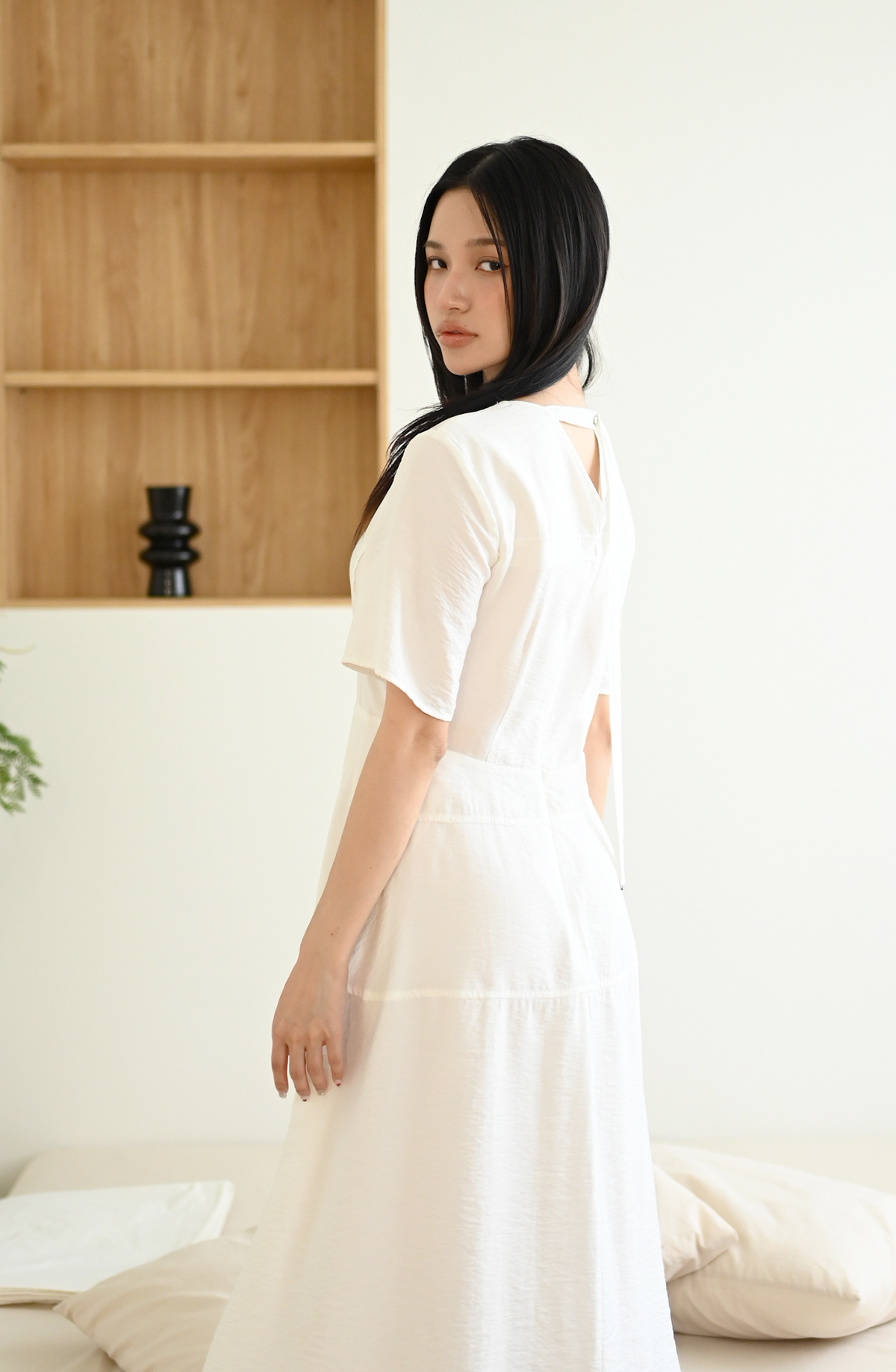 ○背後細緻V簍空 垂帶設計