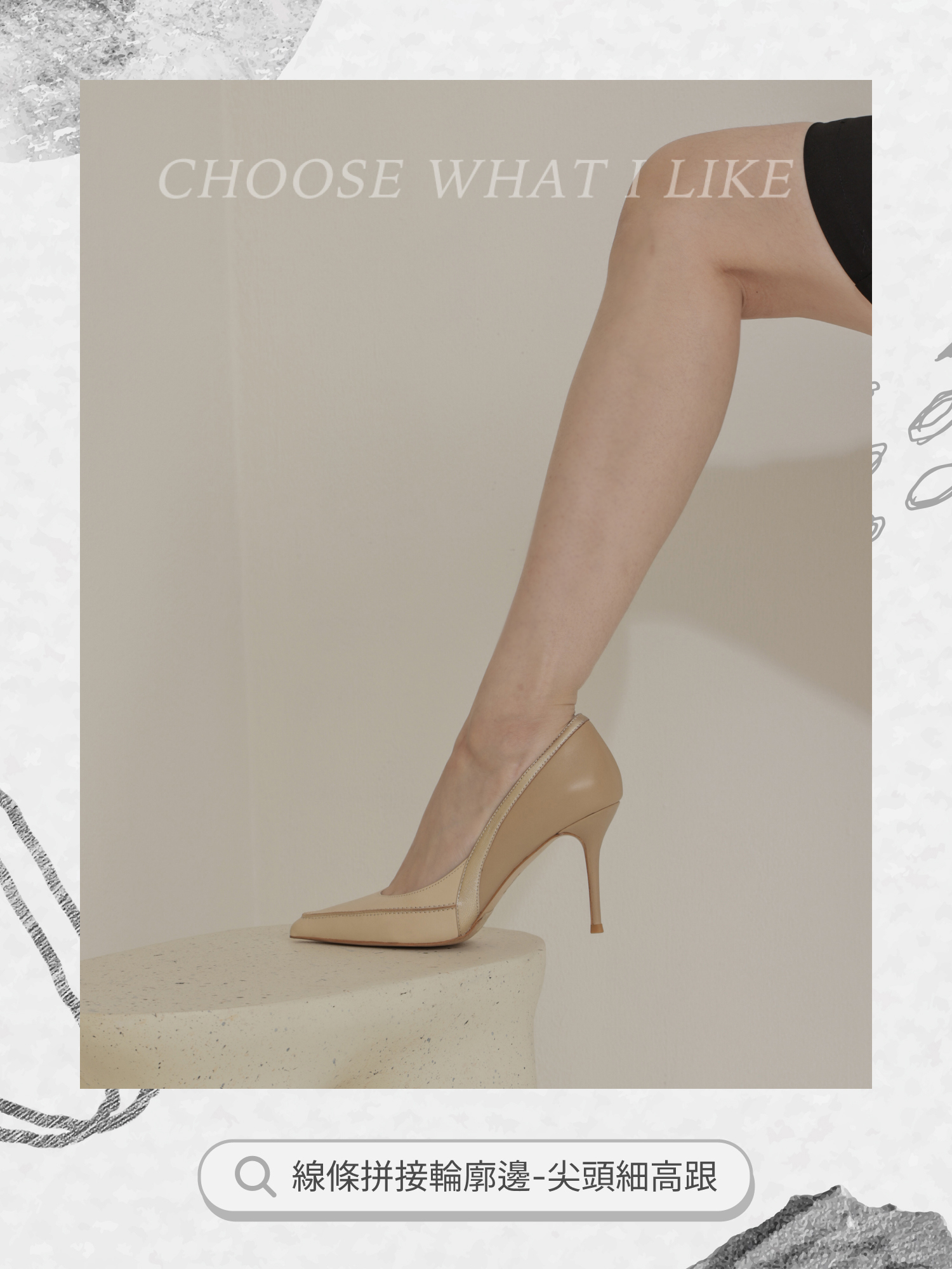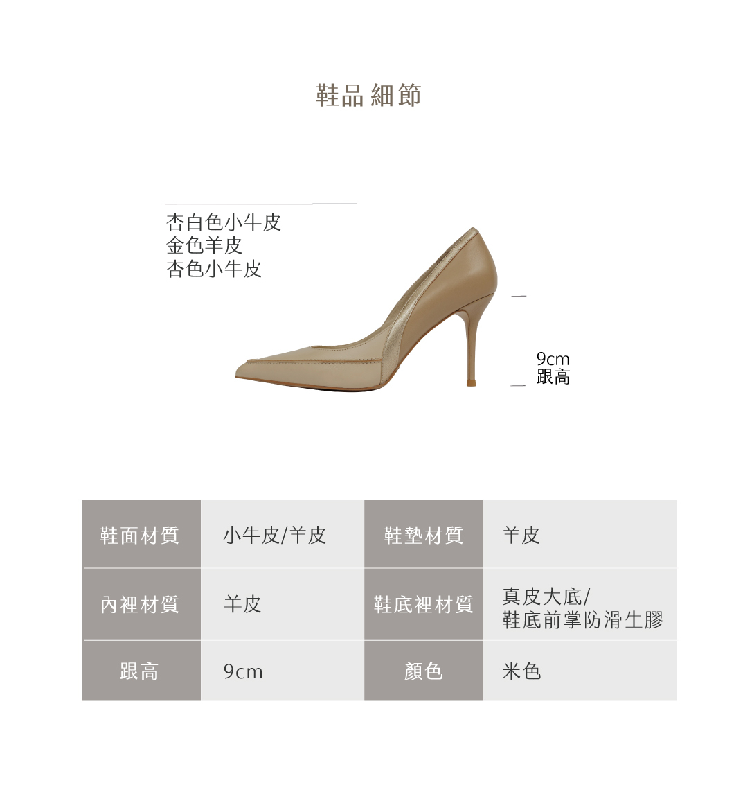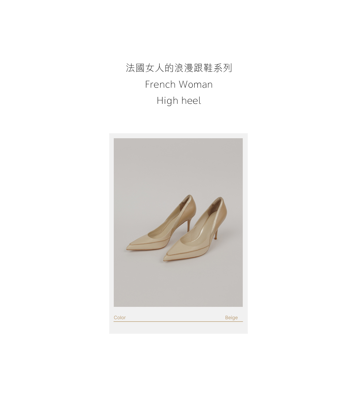 NO216-線條拼接輪廓邊-尖頭細高跟-米色