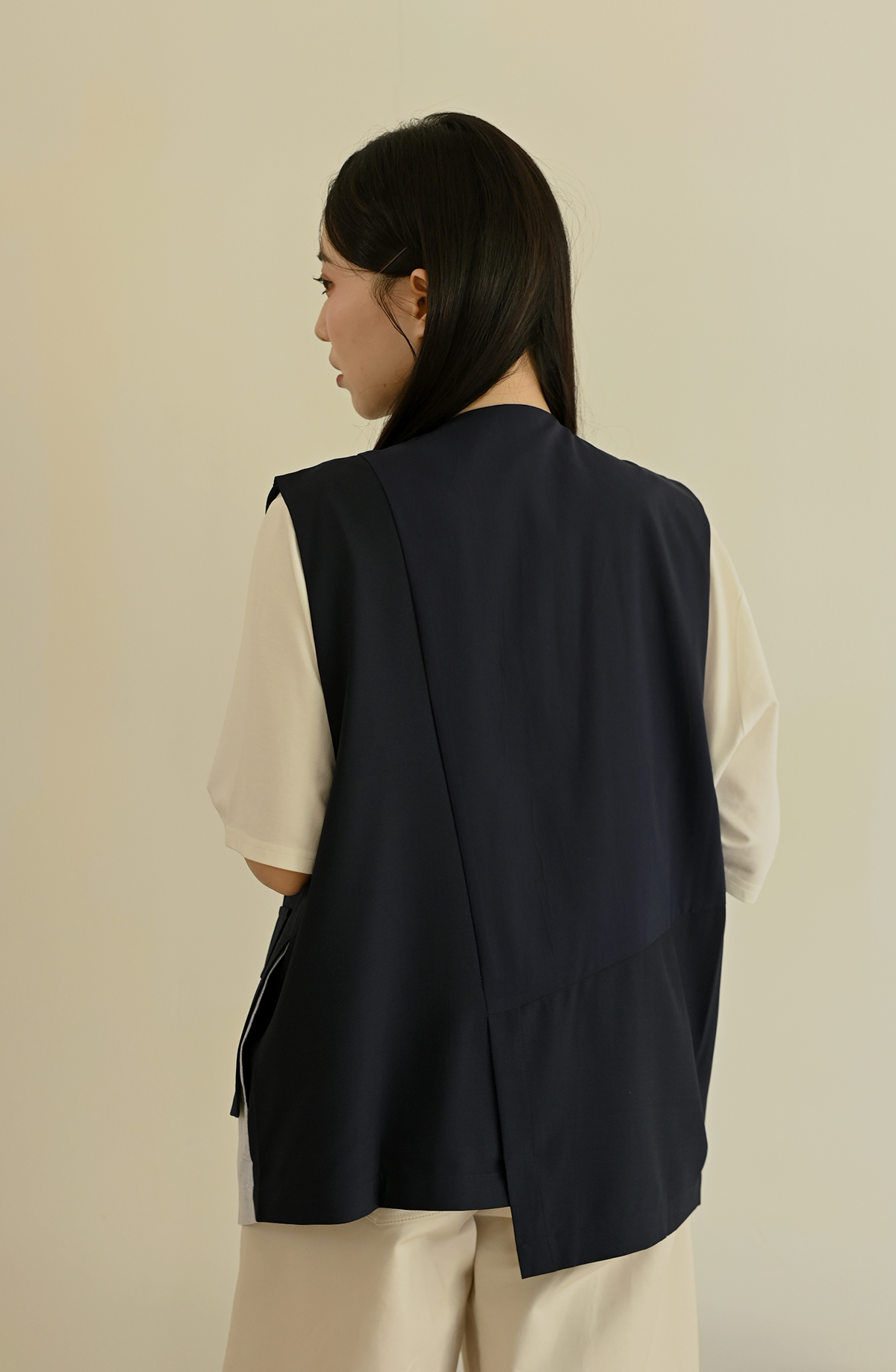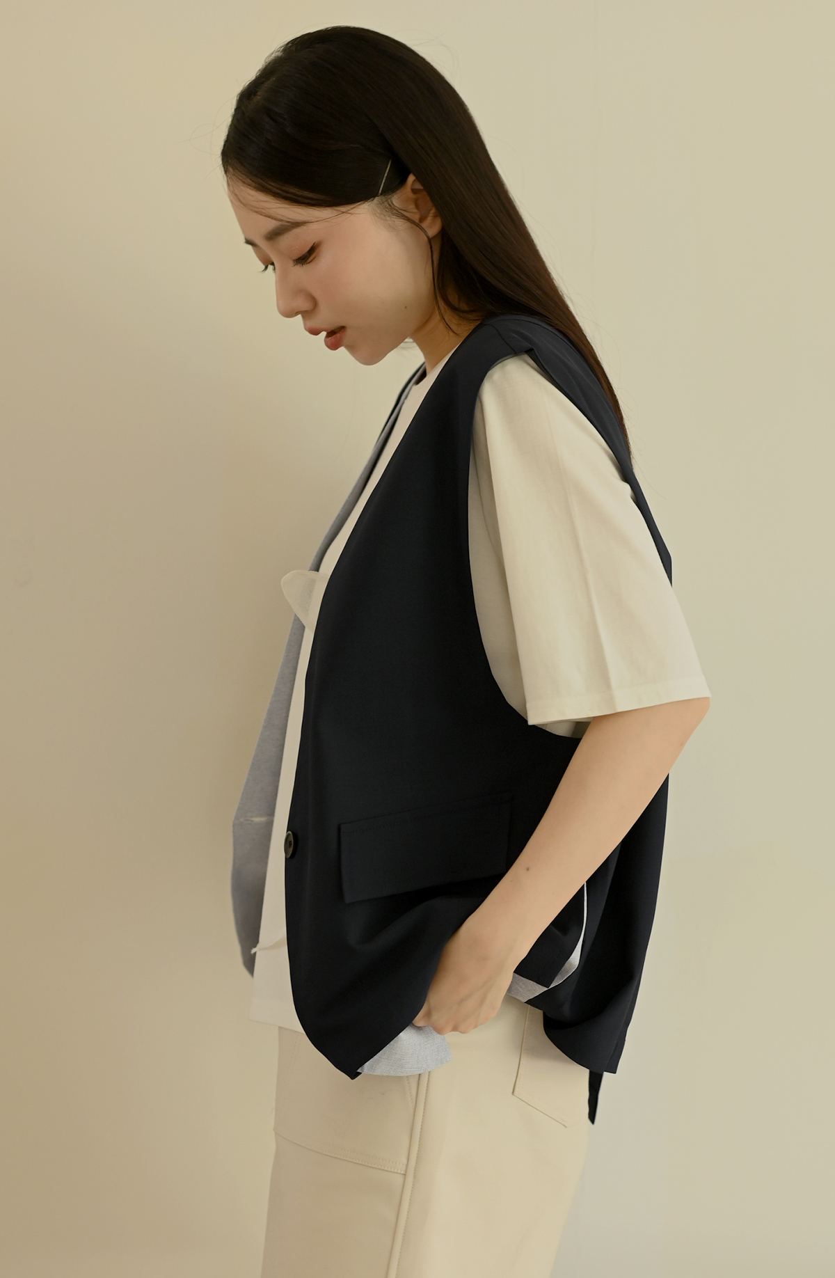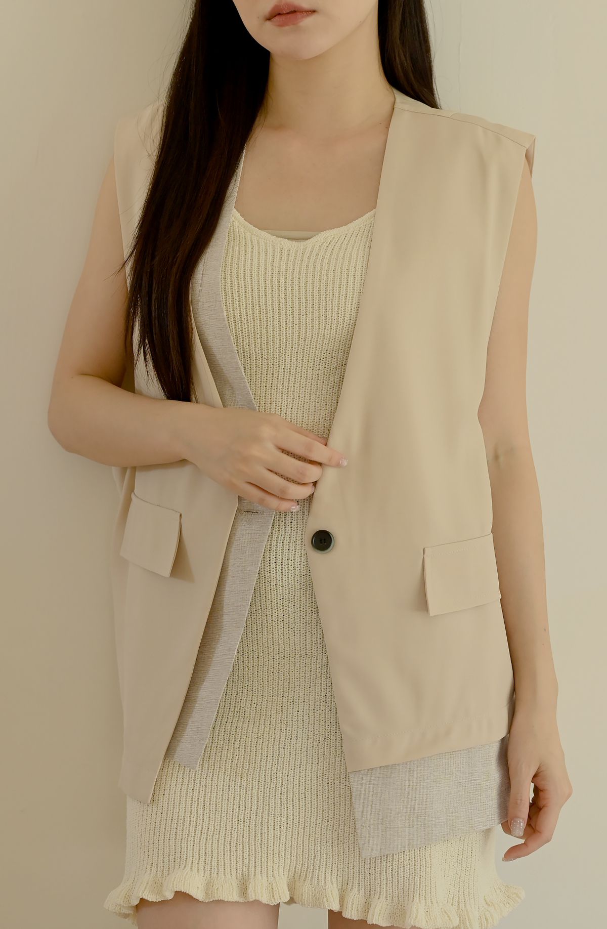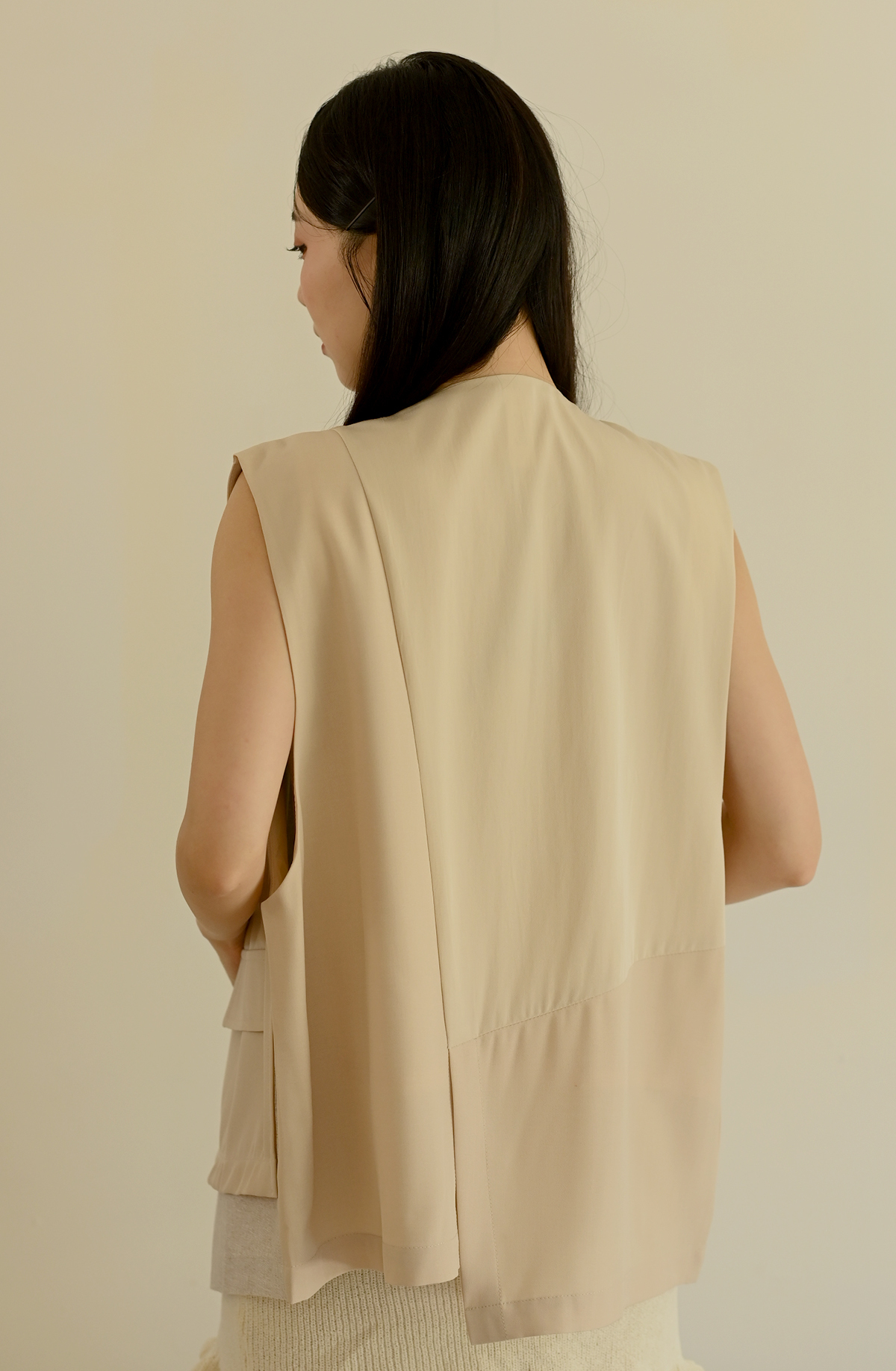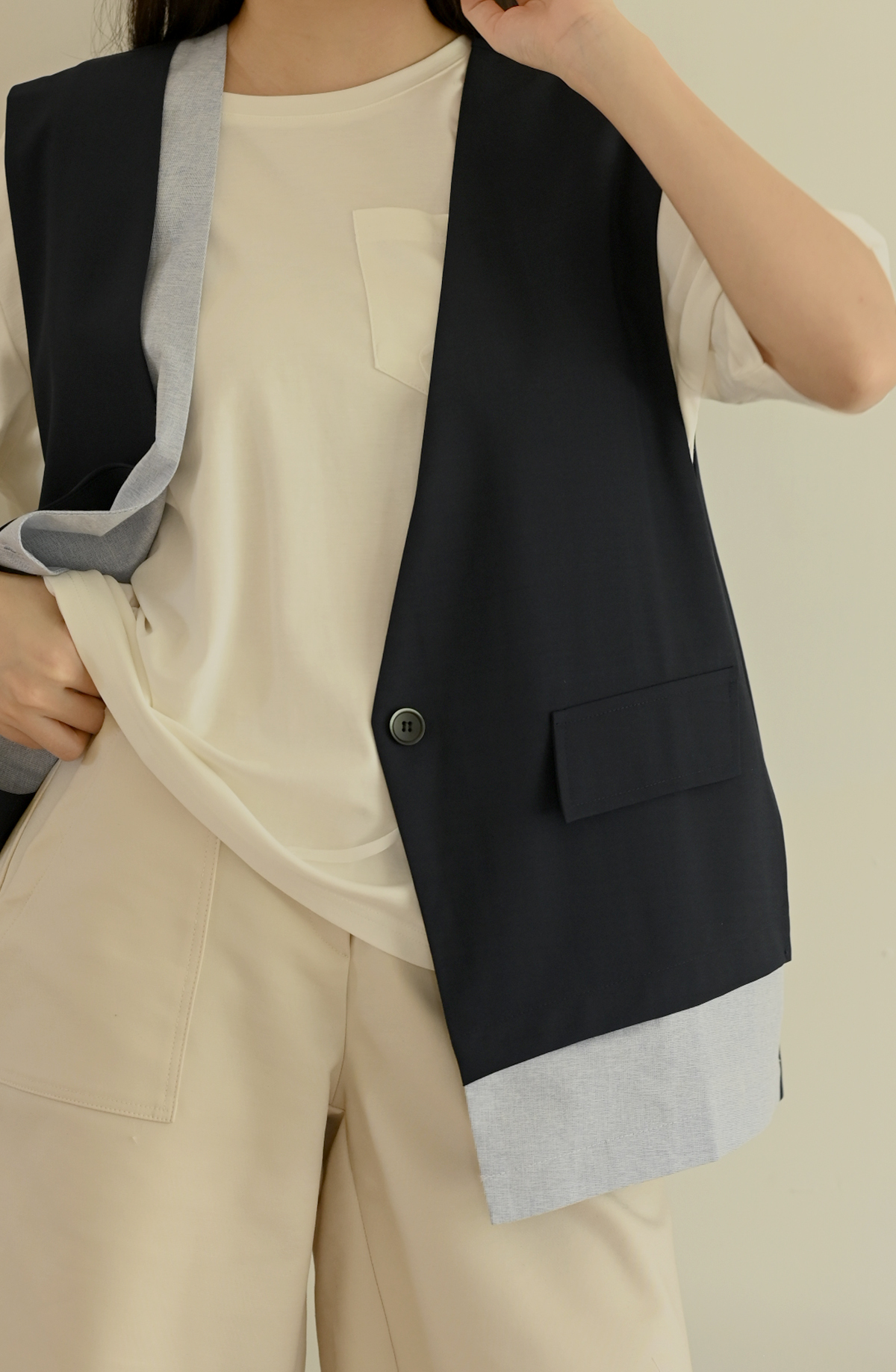 線條領口-無領西裝背心