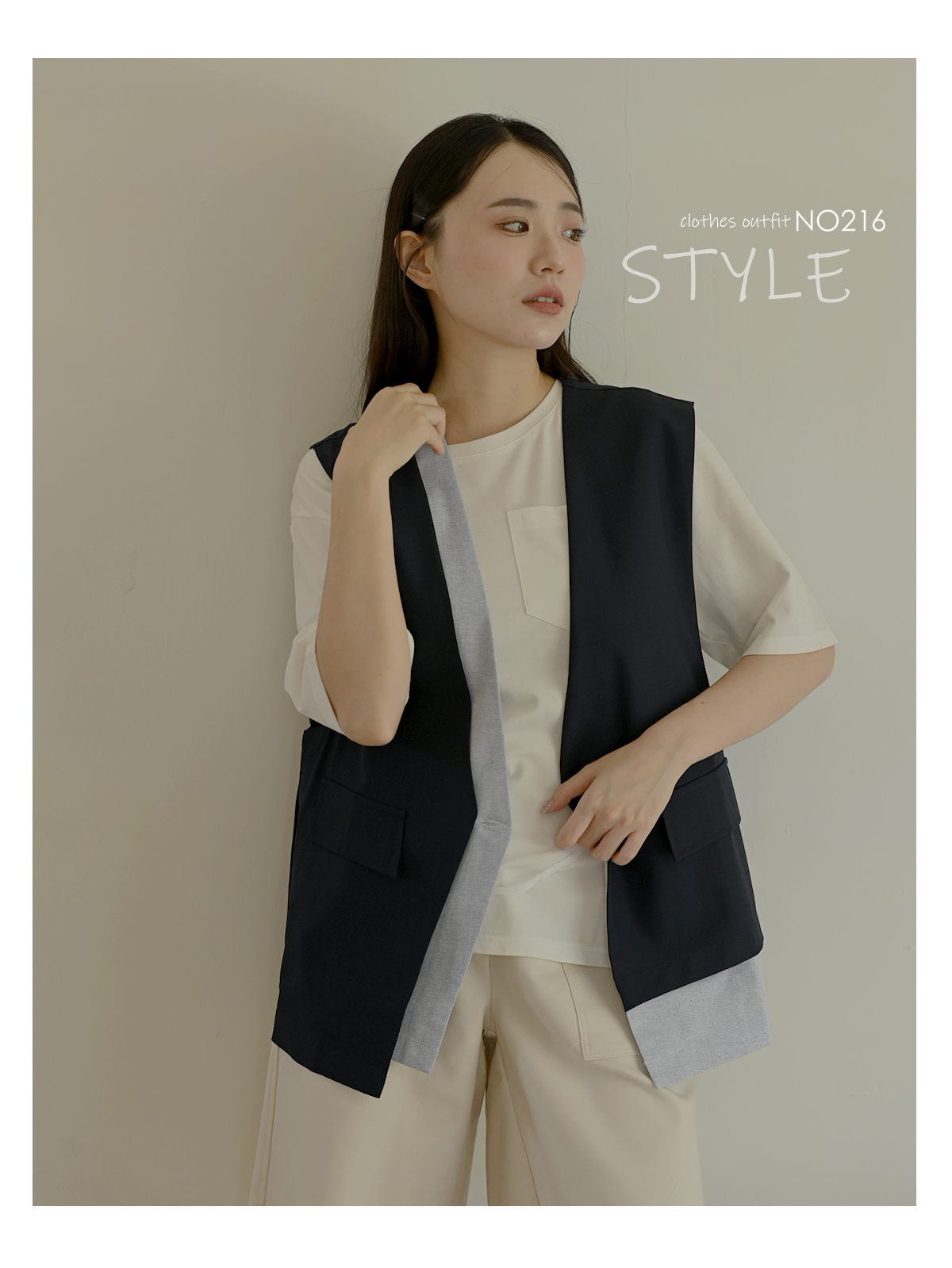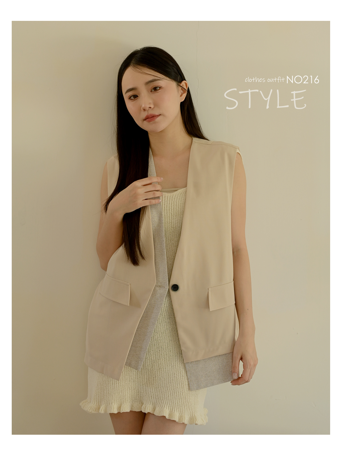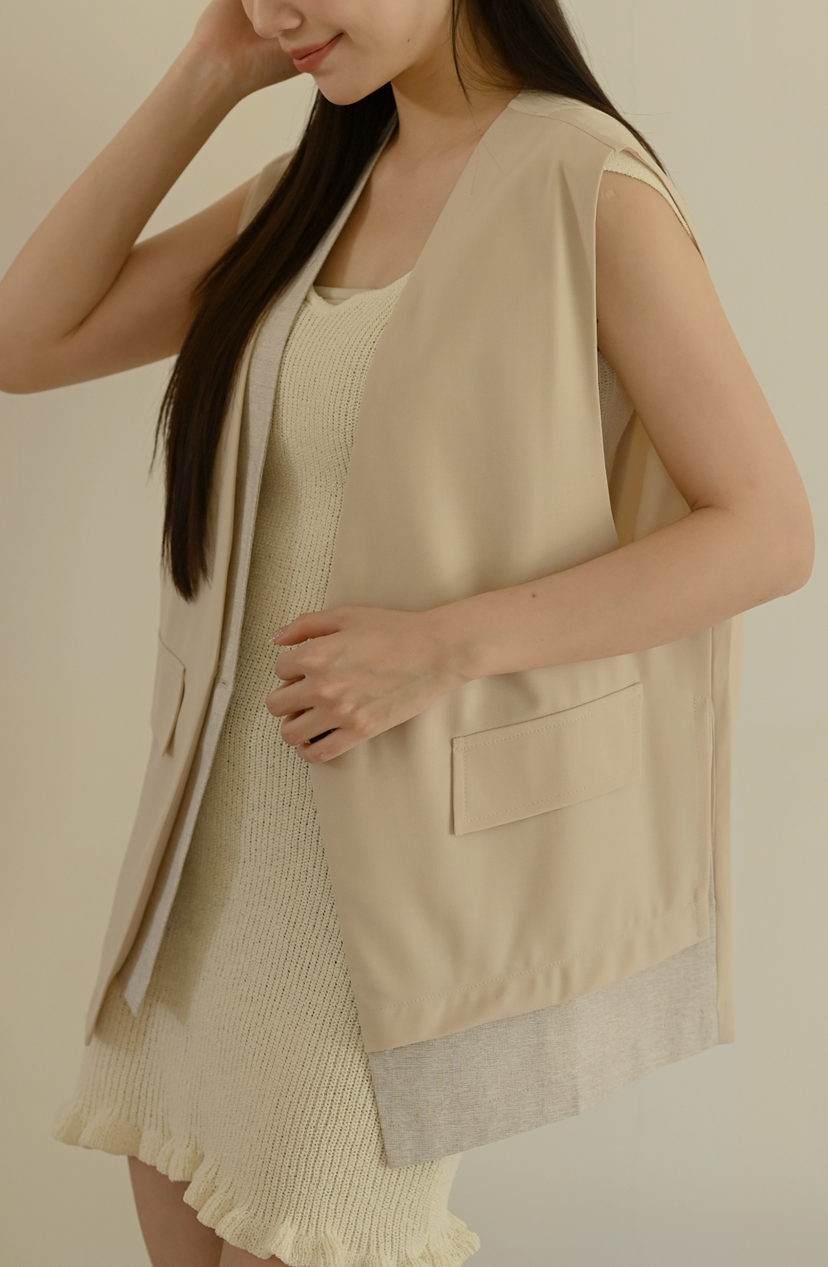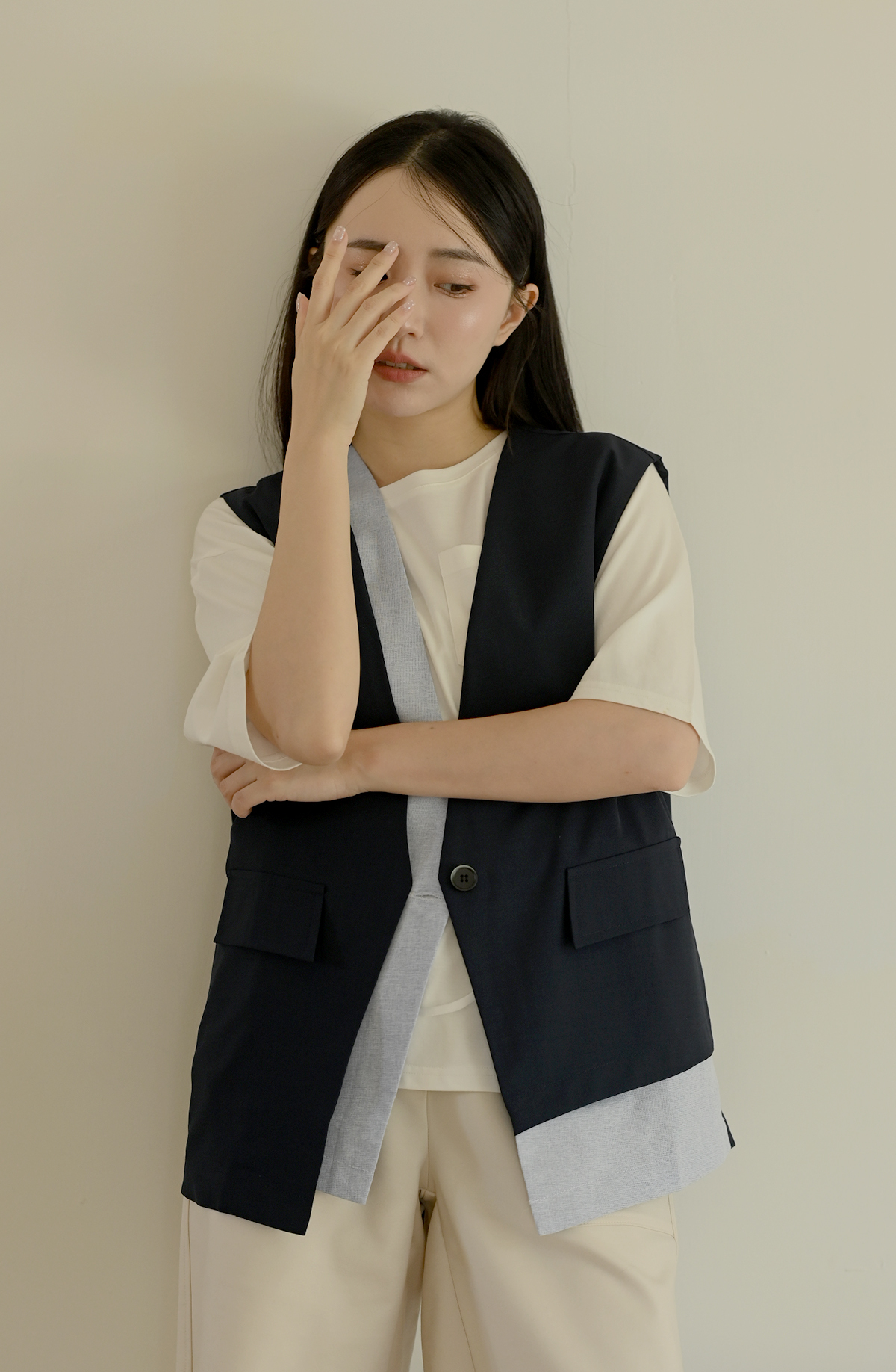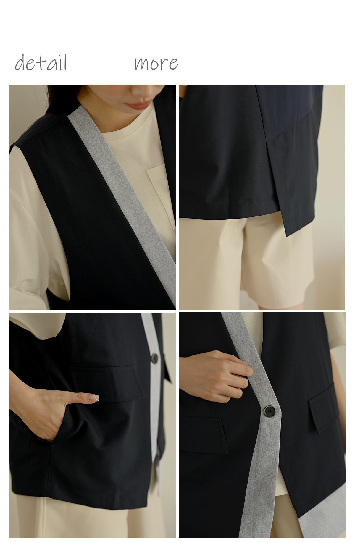 線條領口-無領西裝背心