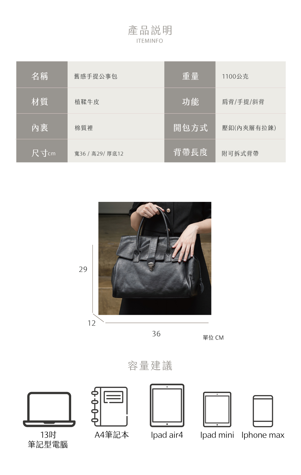 容量建議說明:外套/長夾/A4/雜誌
