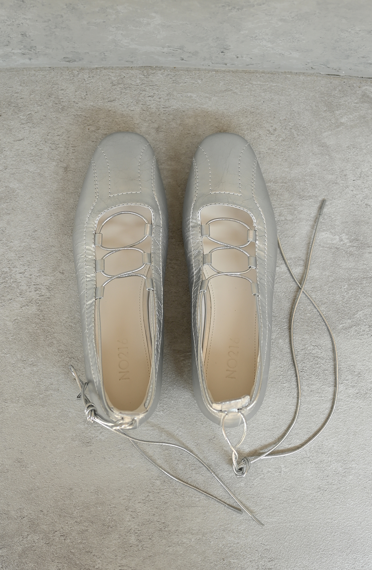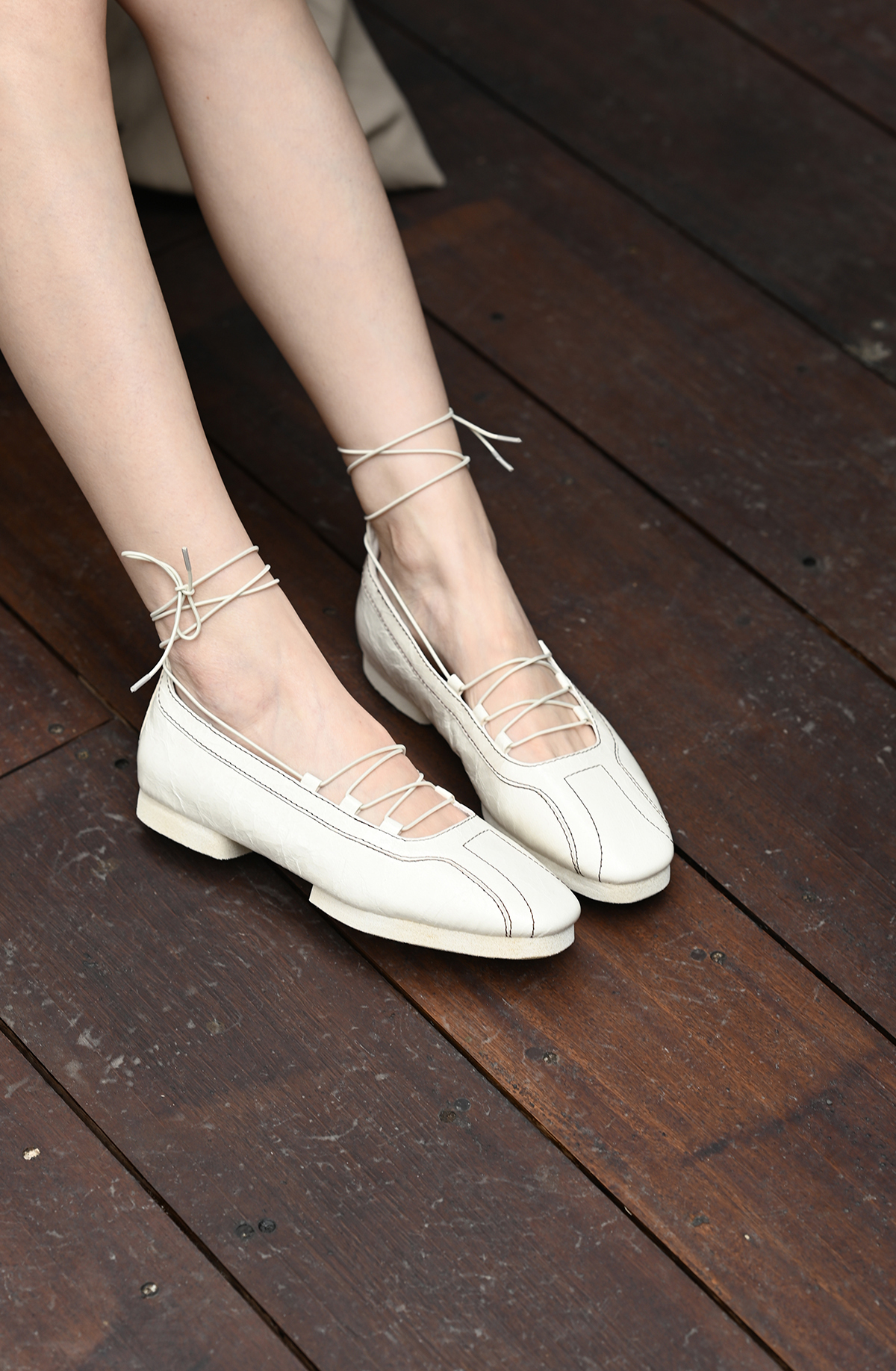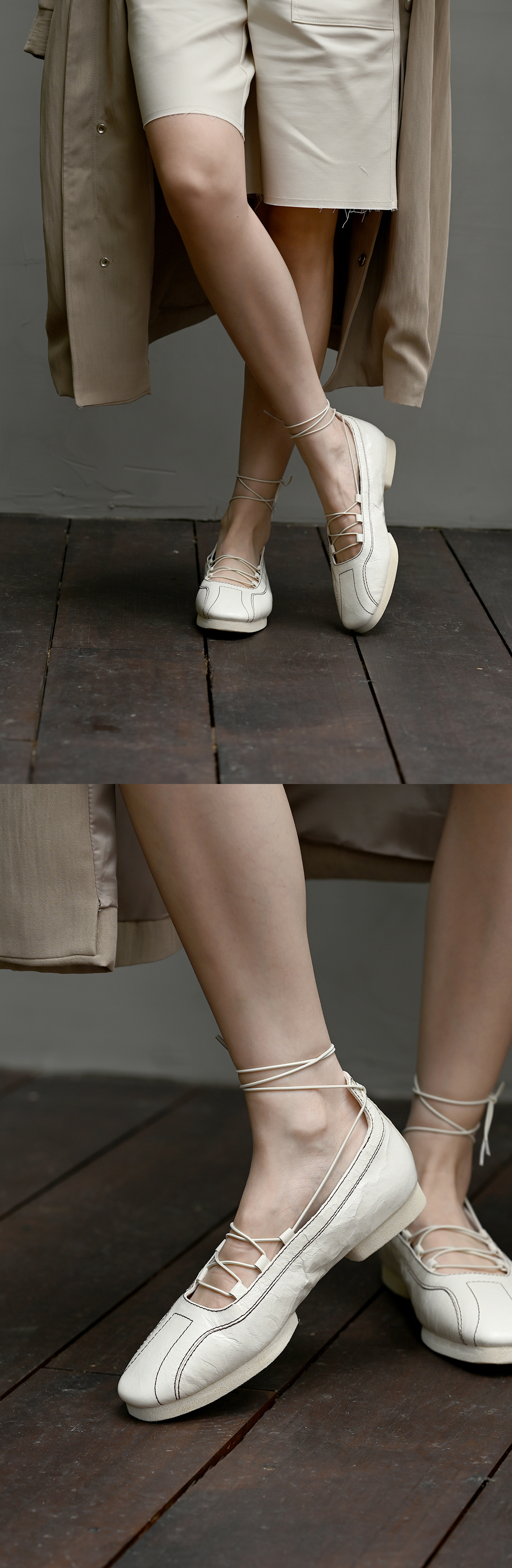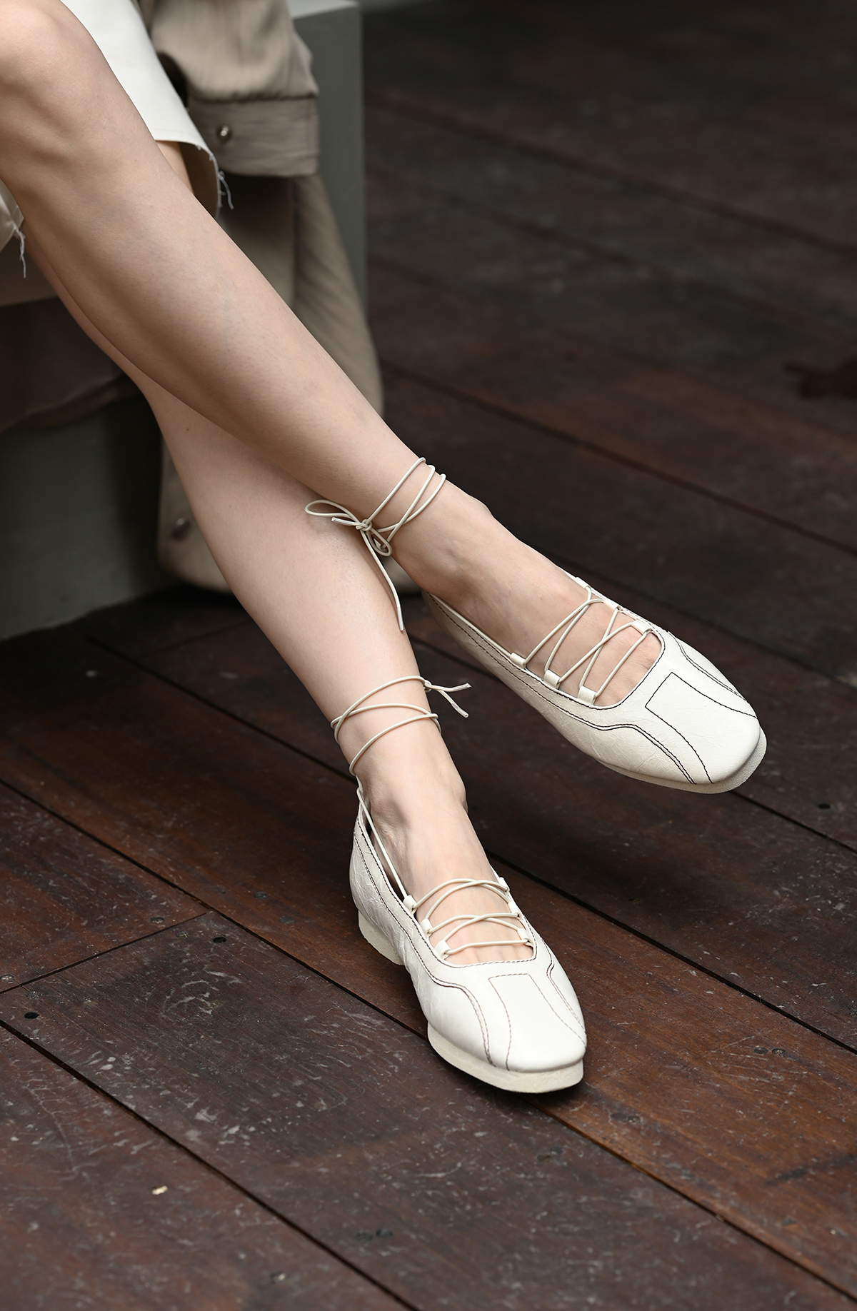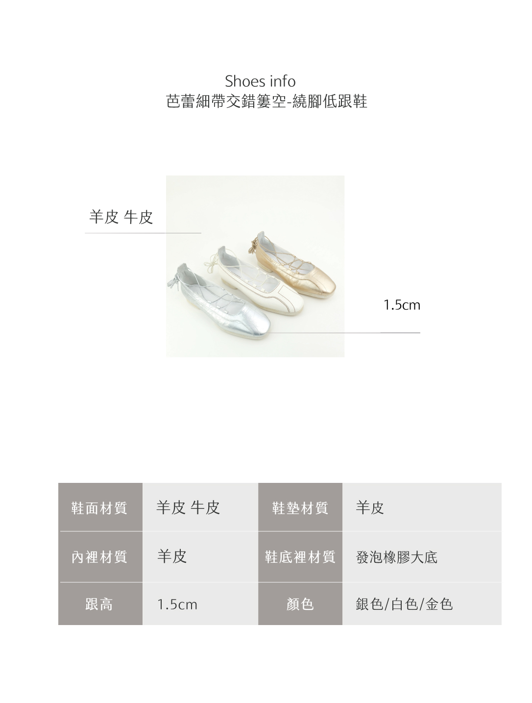 - 芭蕾細帶交錯簍空-繞腳低跟鞋