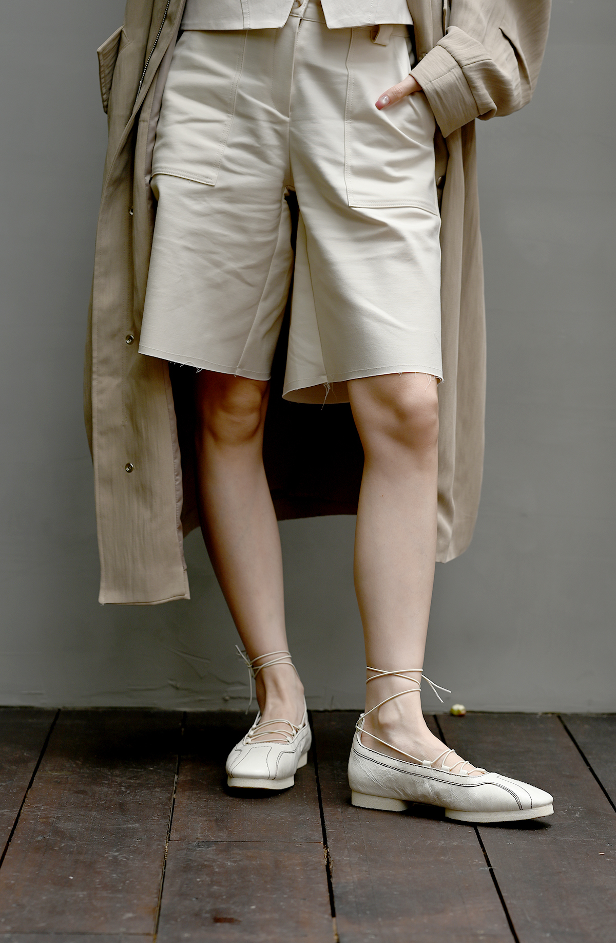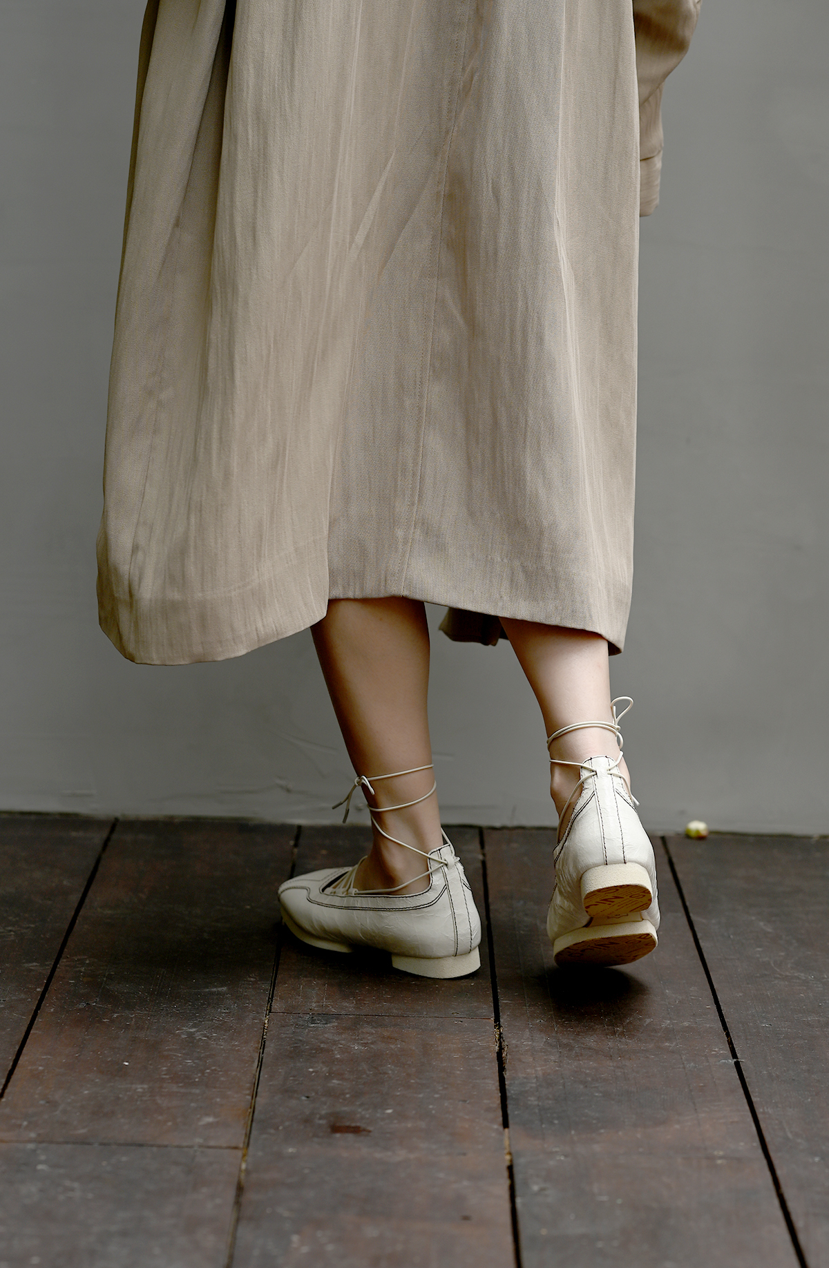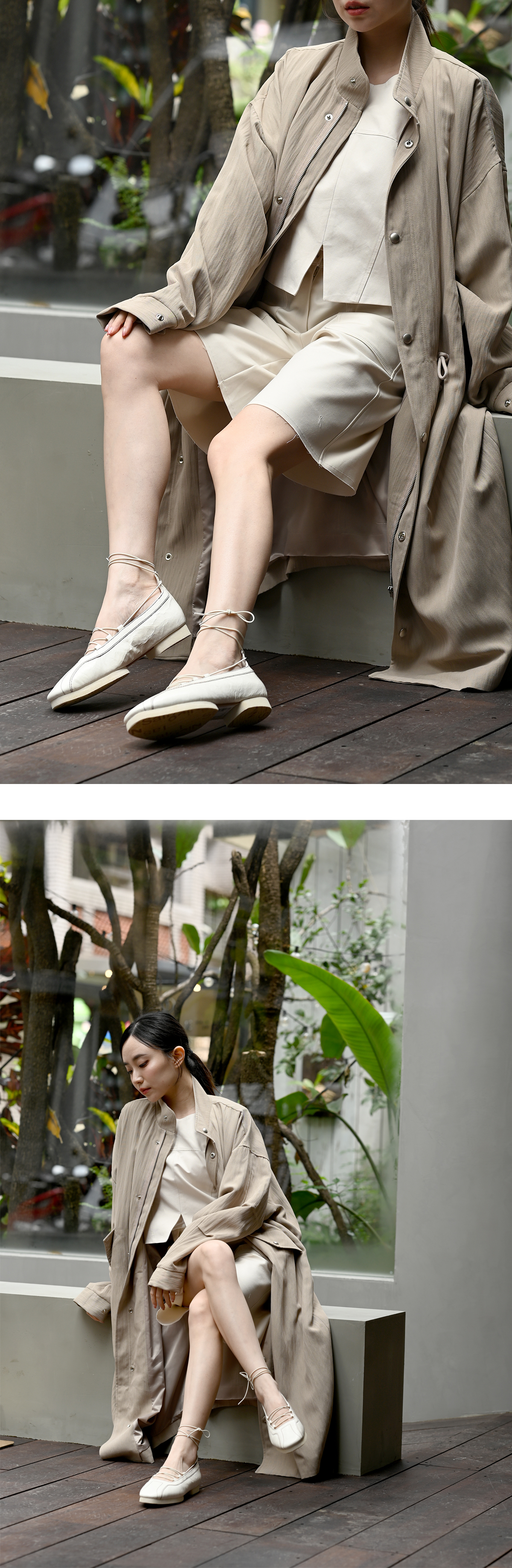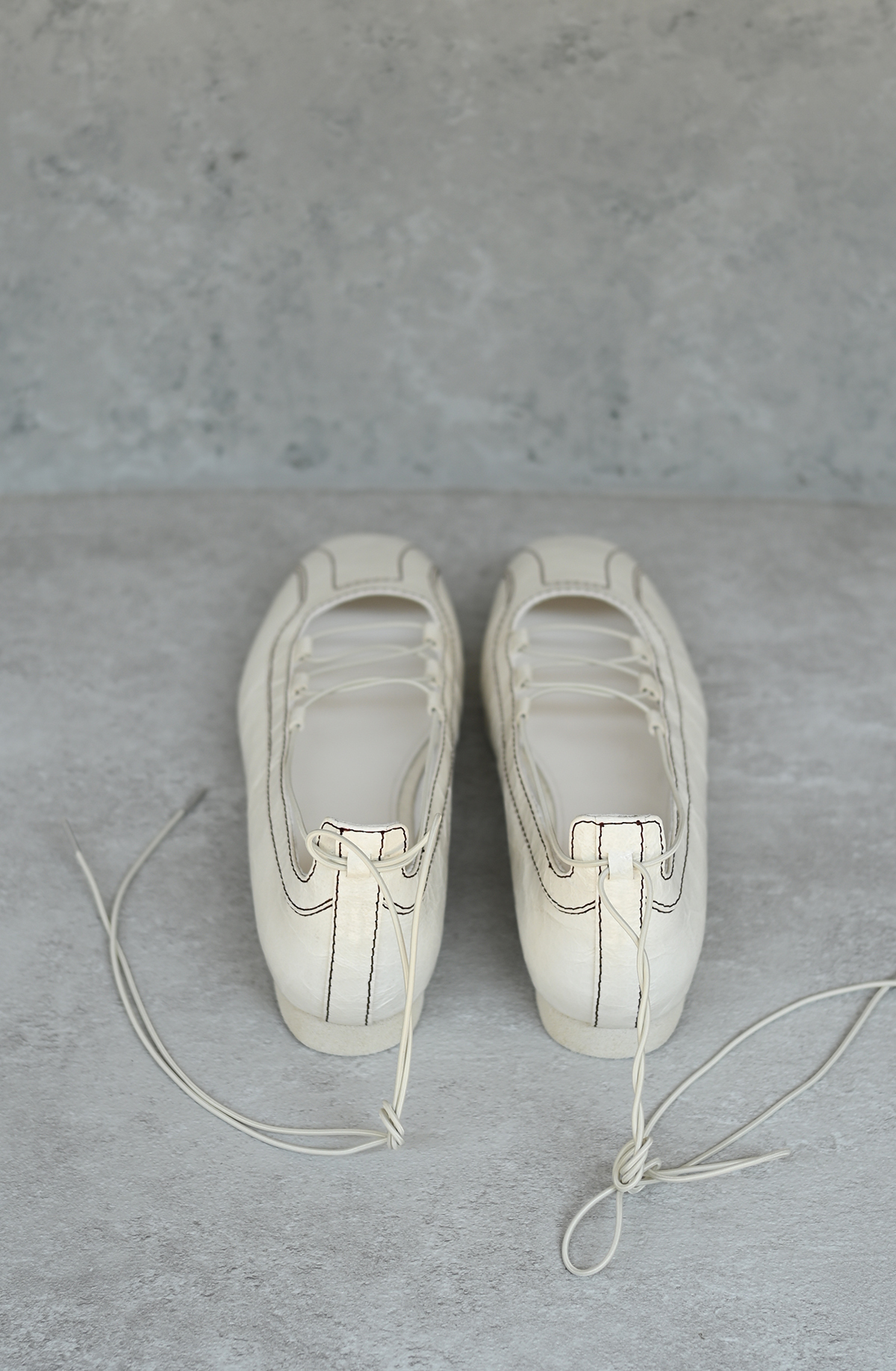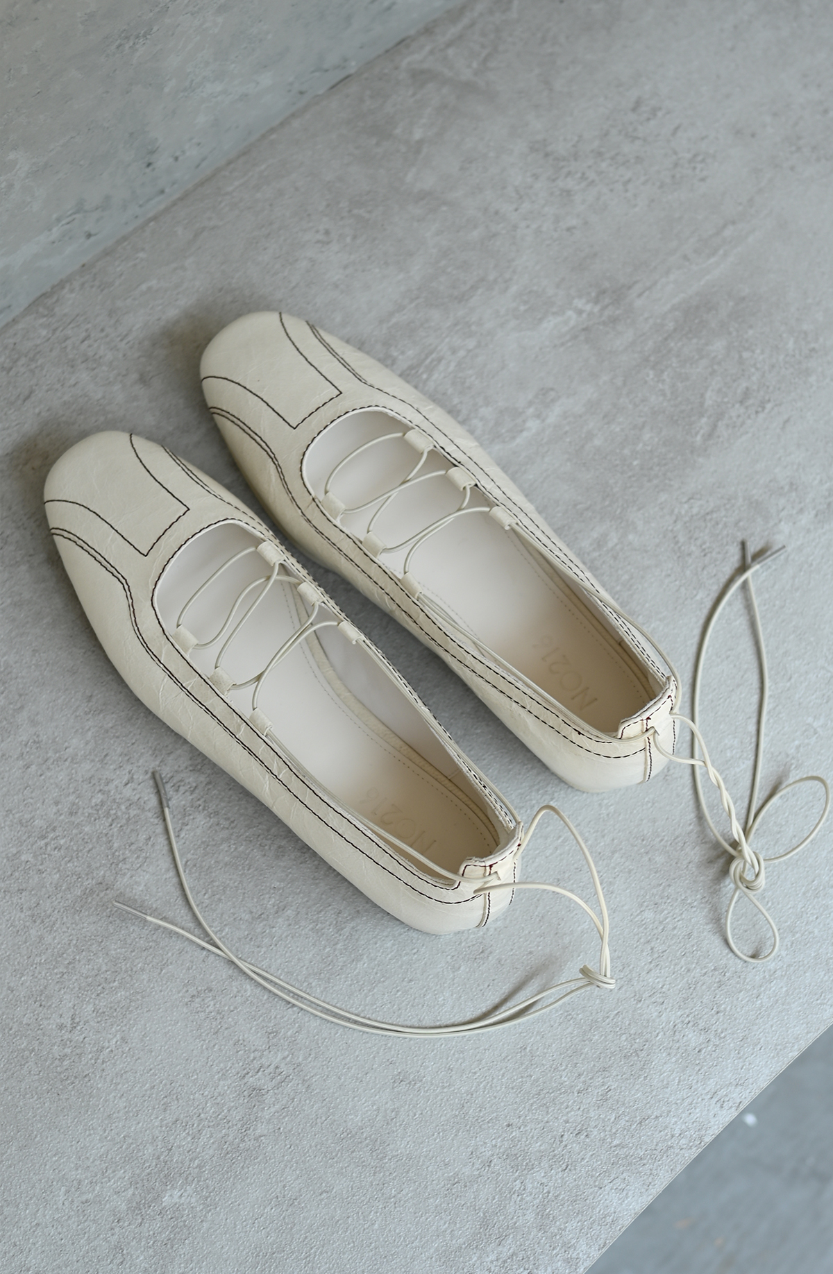 - 芭蕾細帶交錯簍空-繞腳低跟鞋
