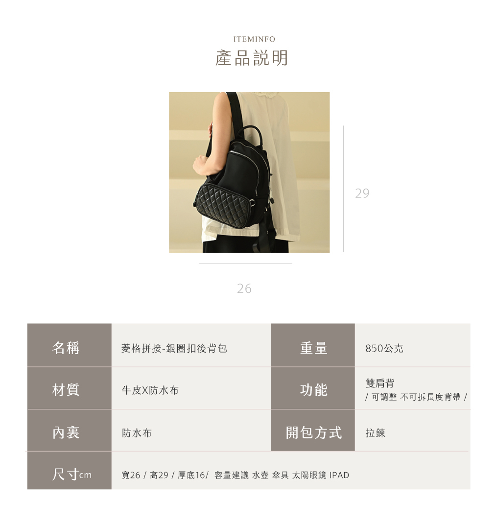 皮質:頭層牛皮 拼接 台灣防水布(尼龍)