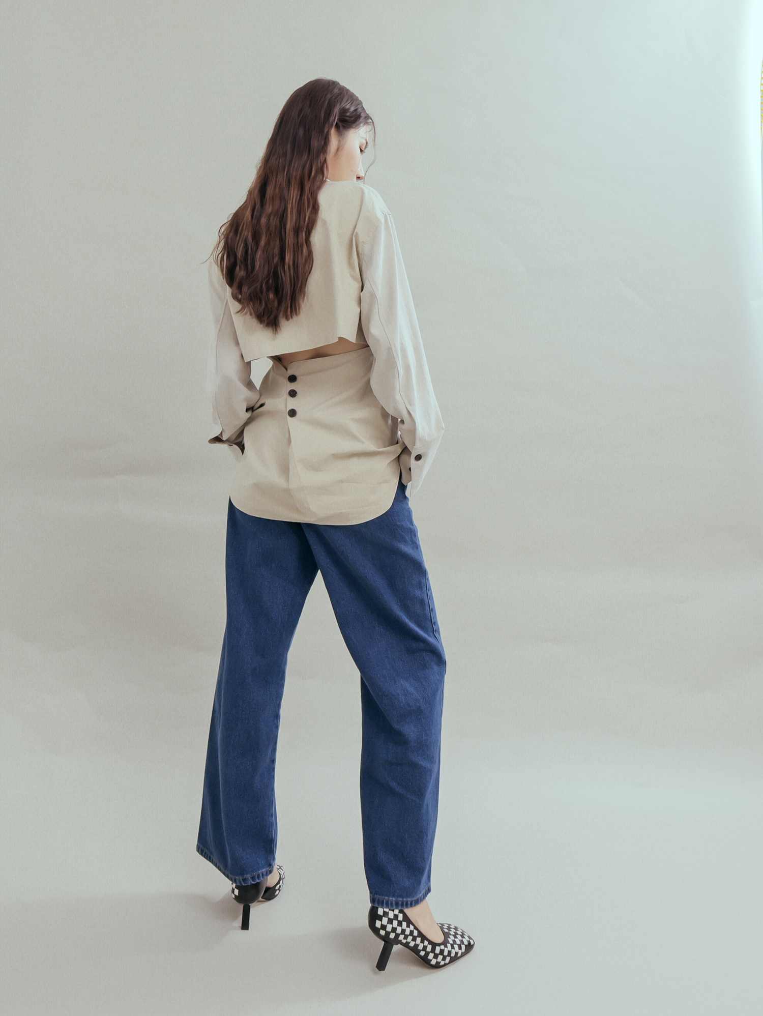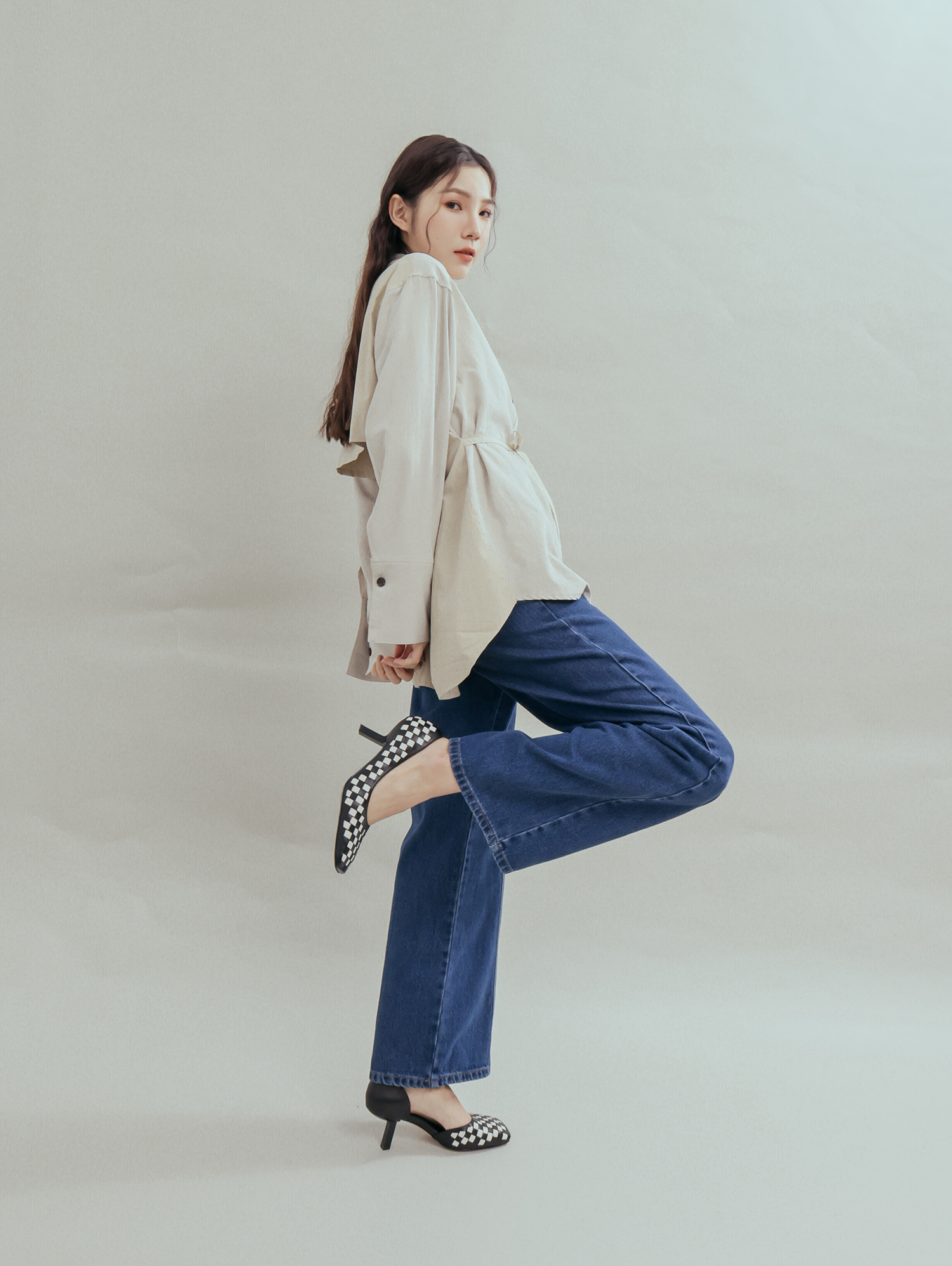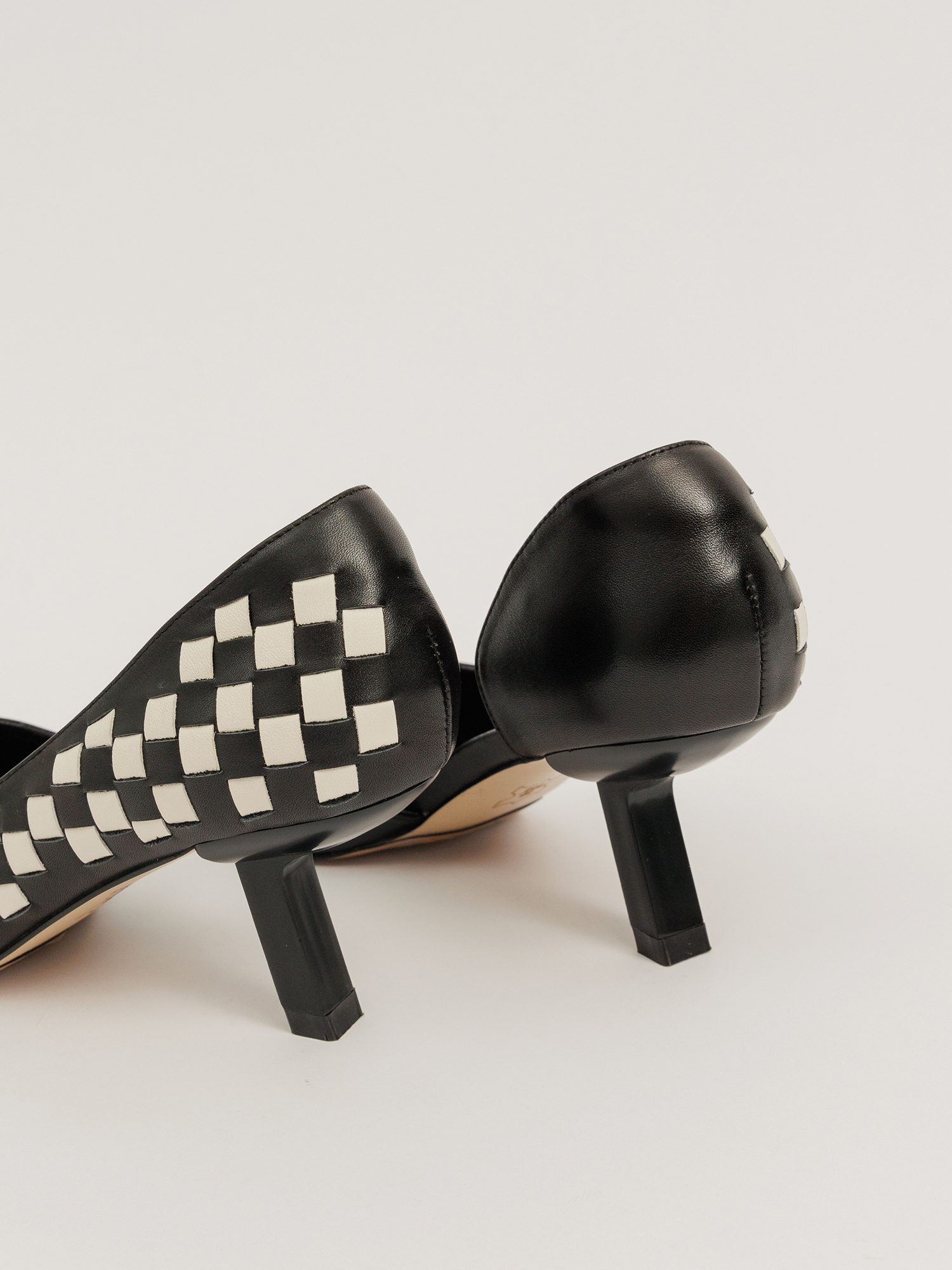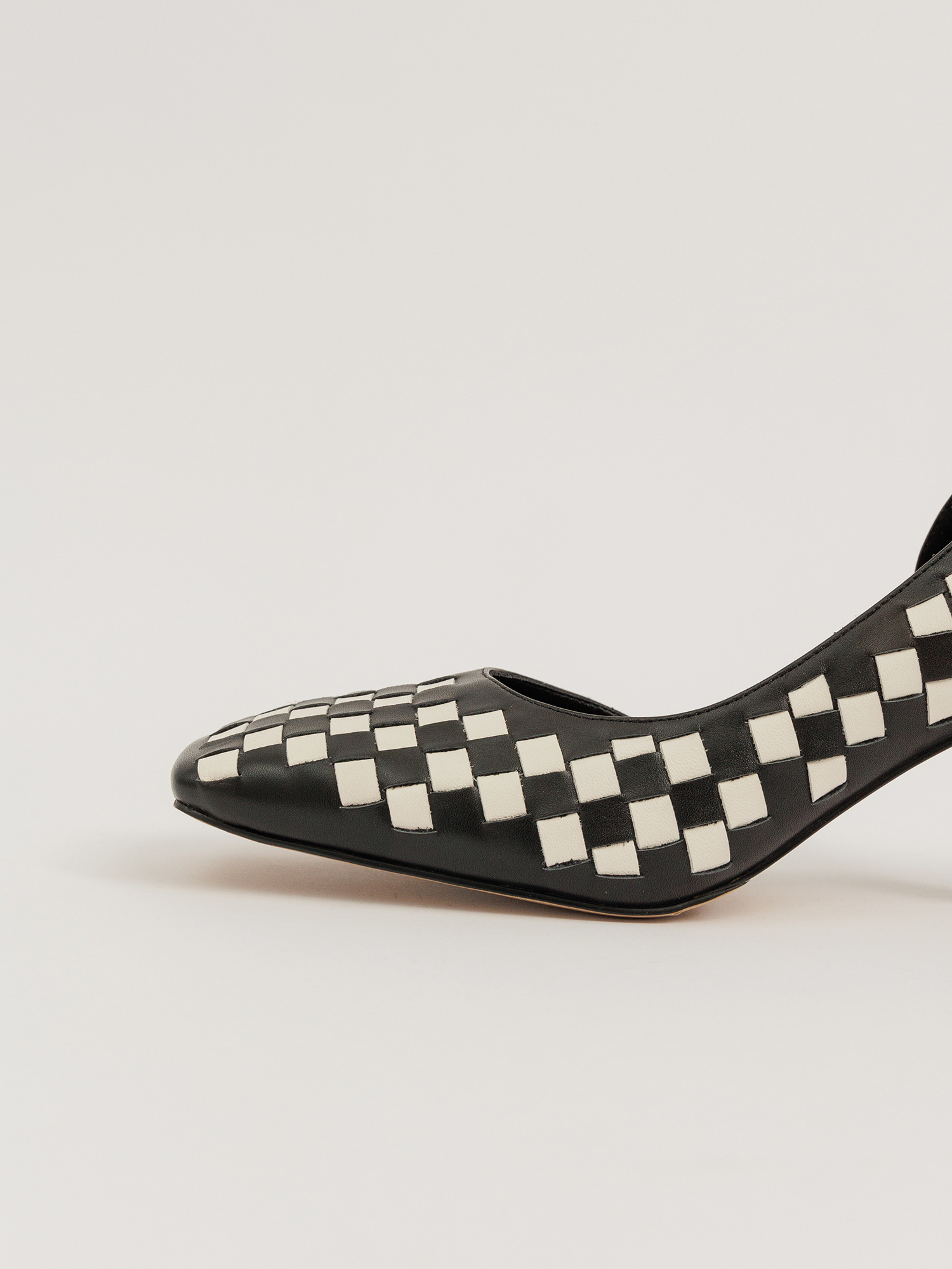 方頭格紋拼接皮 獨特斜狀的跟鞋