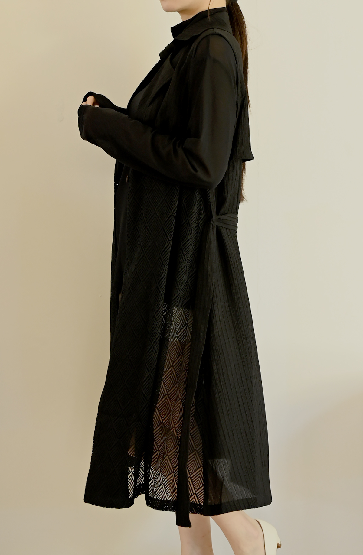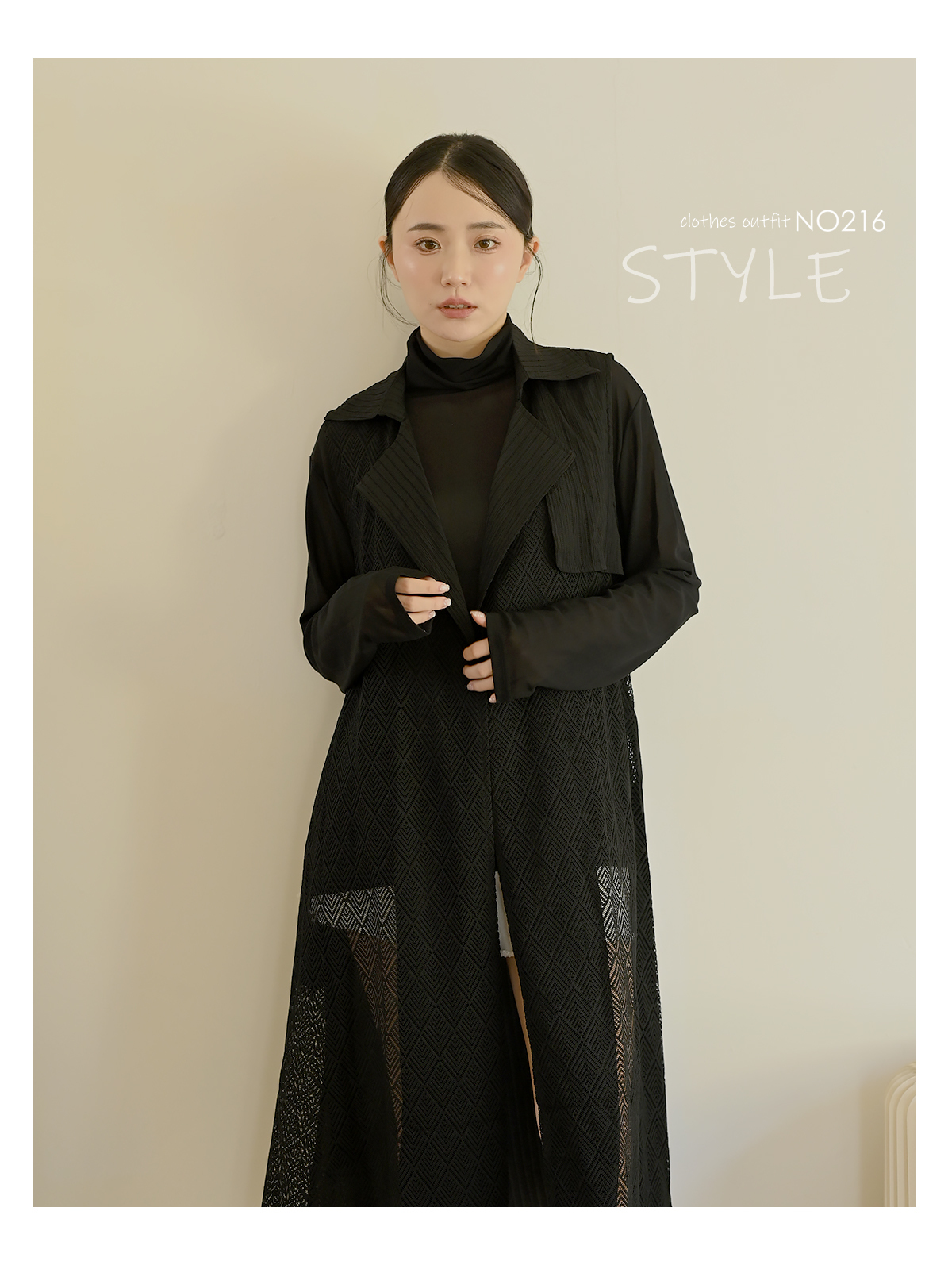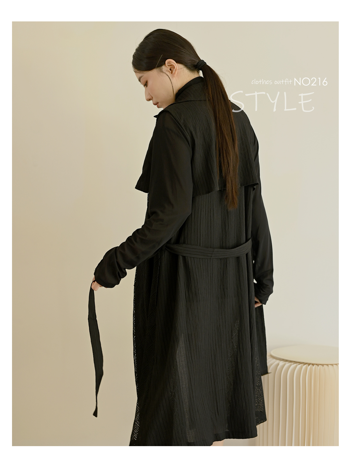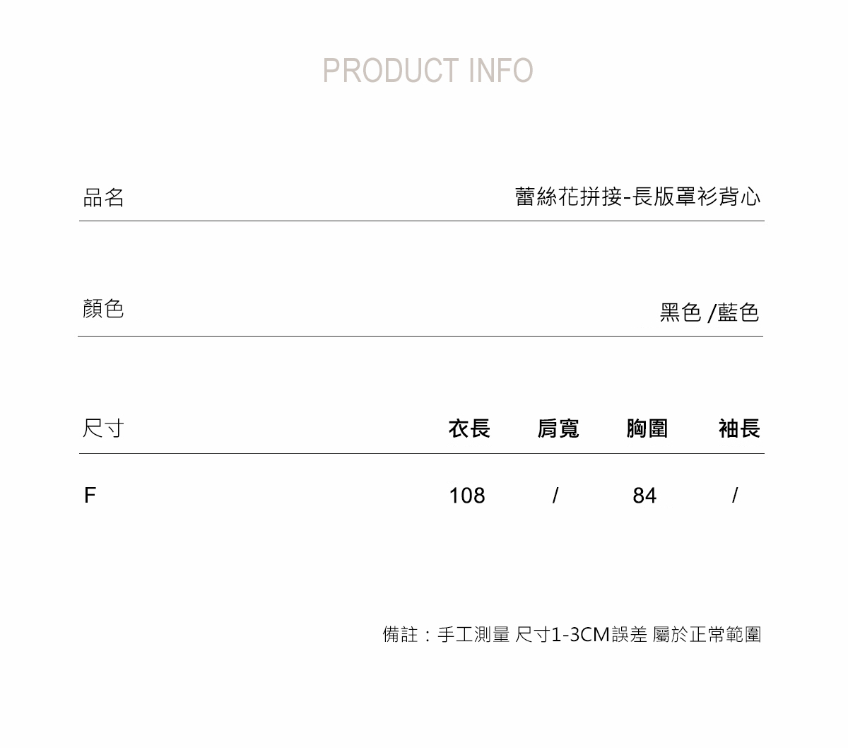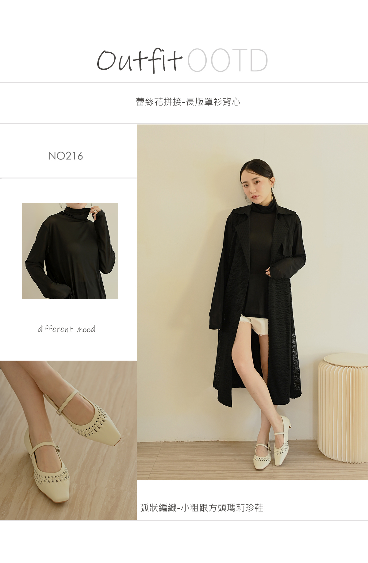 NO216-蕾絲花拼接-長版罩衫背心-黑色