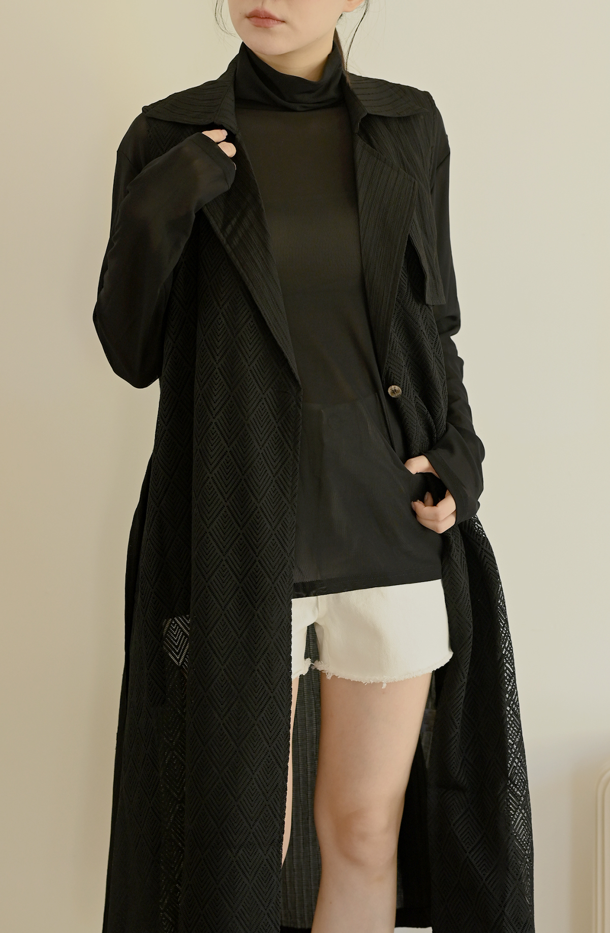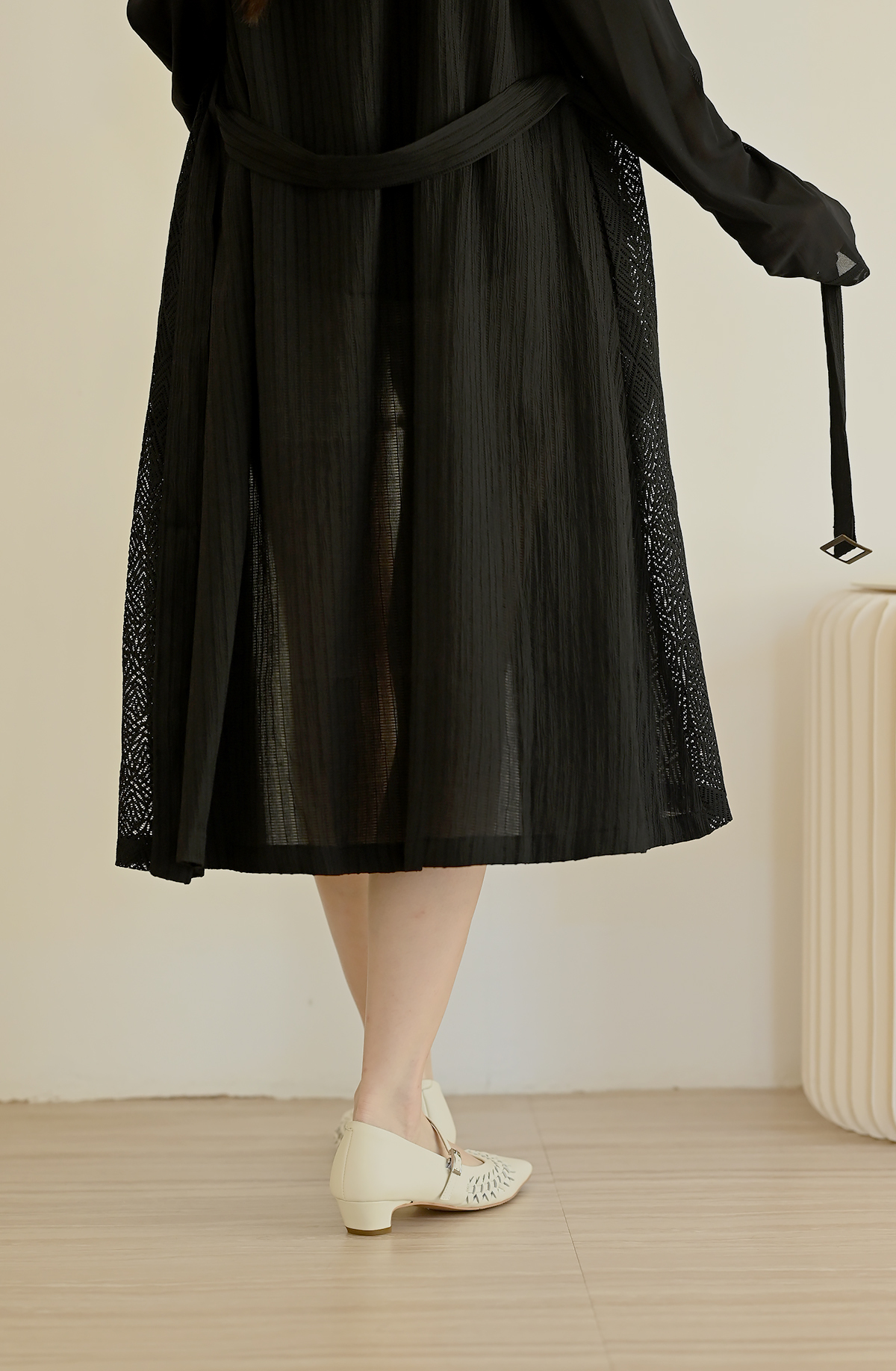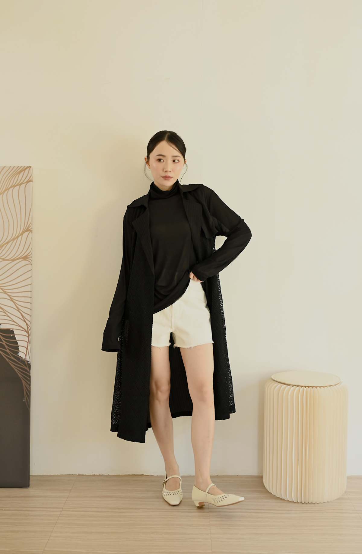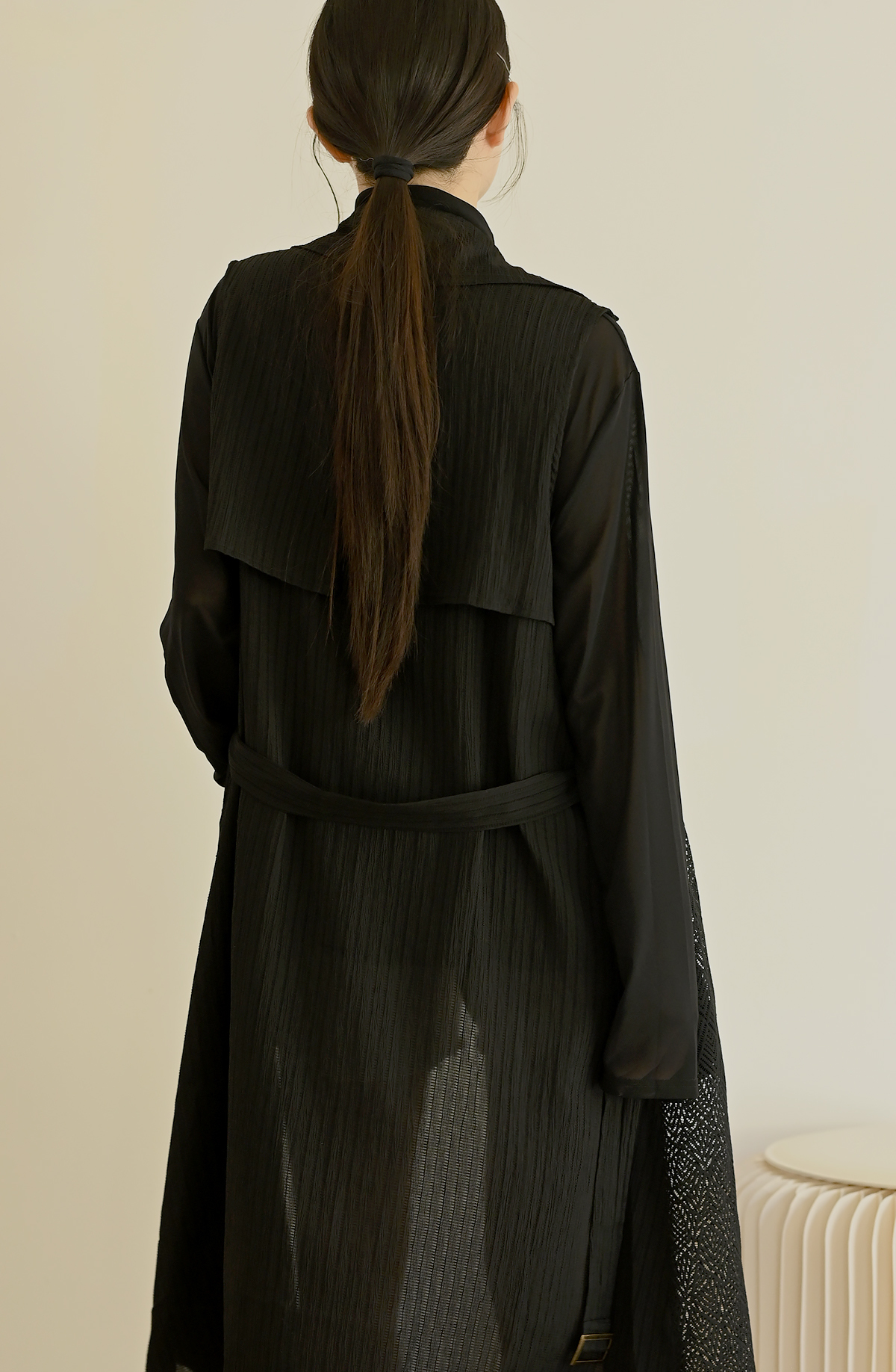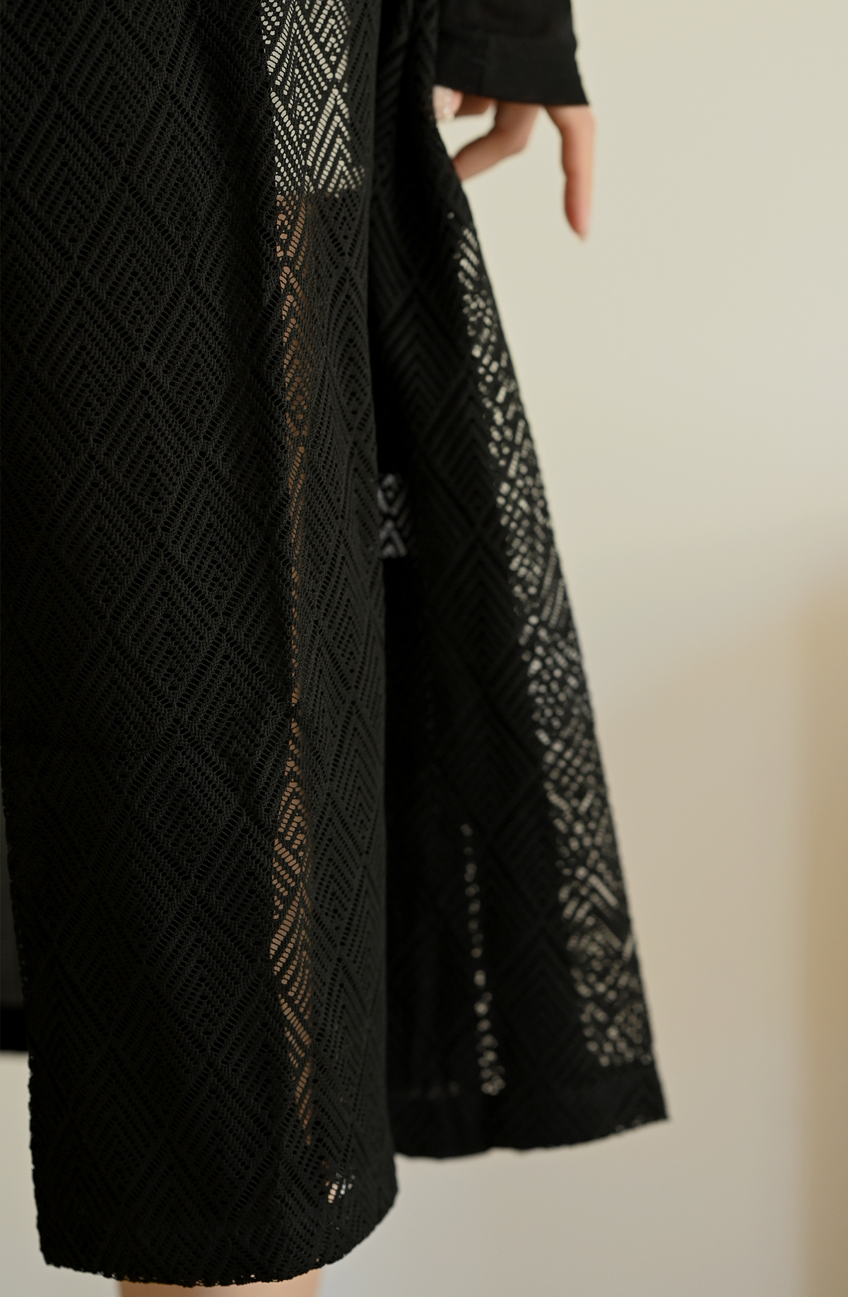 NO216-蕾絲花拼接-長版罩衫背心-黑色
