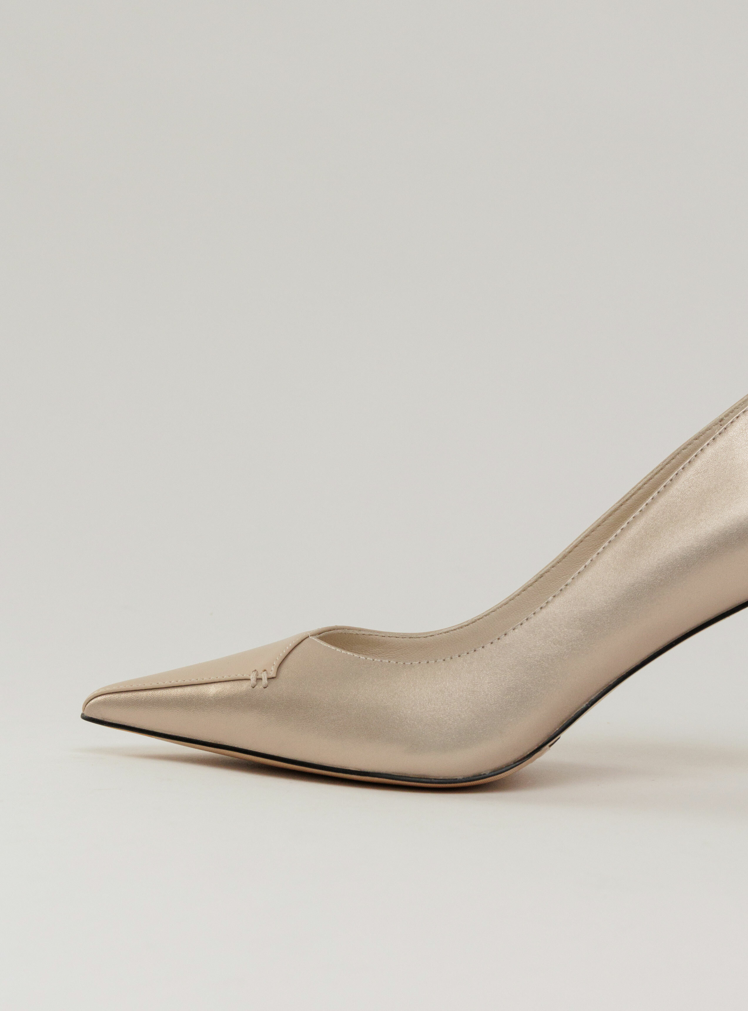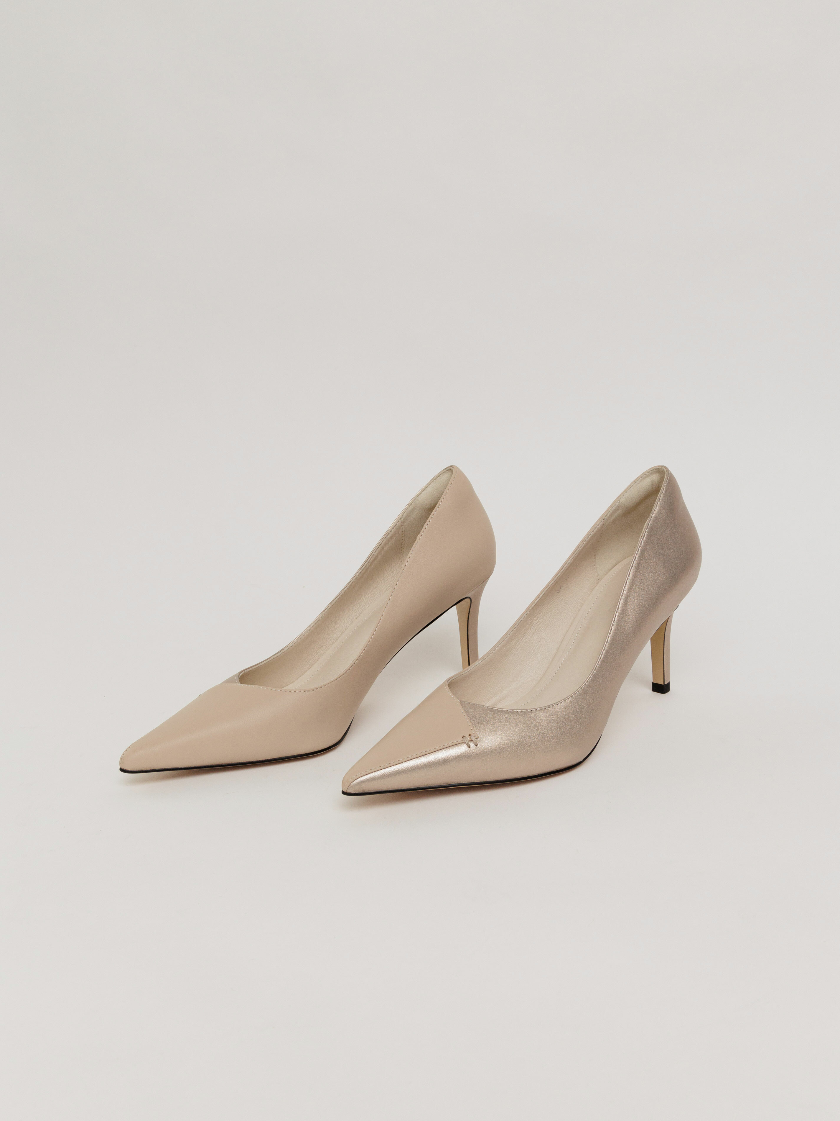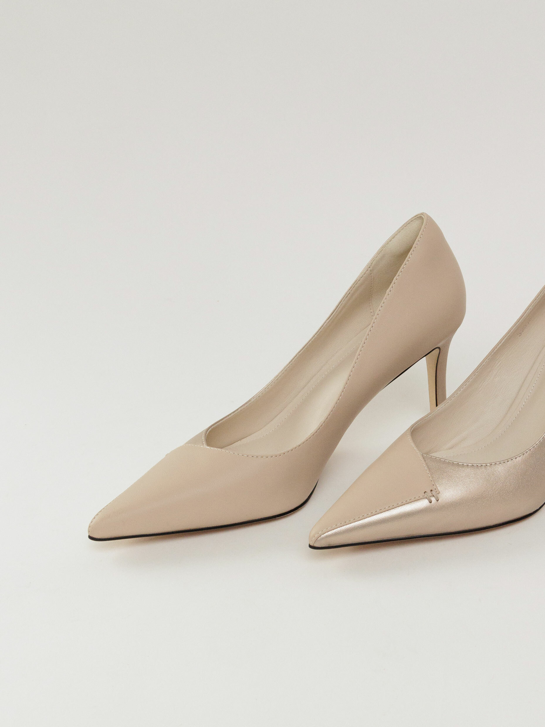 NO216-角狀拼接-歐美風尖頭細高跟-杏