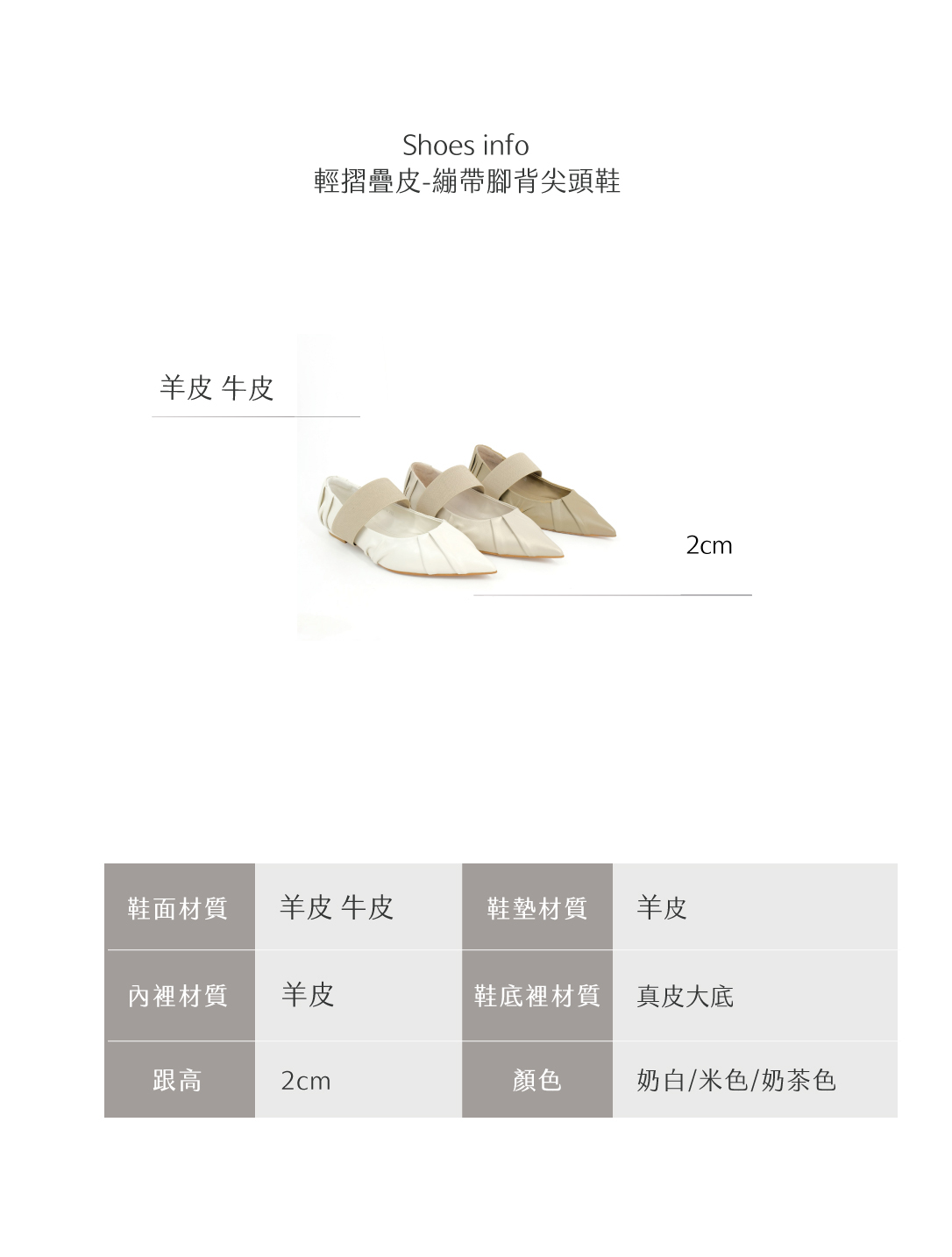 鞋裡:羊皮 腳底墊皮:羊皮