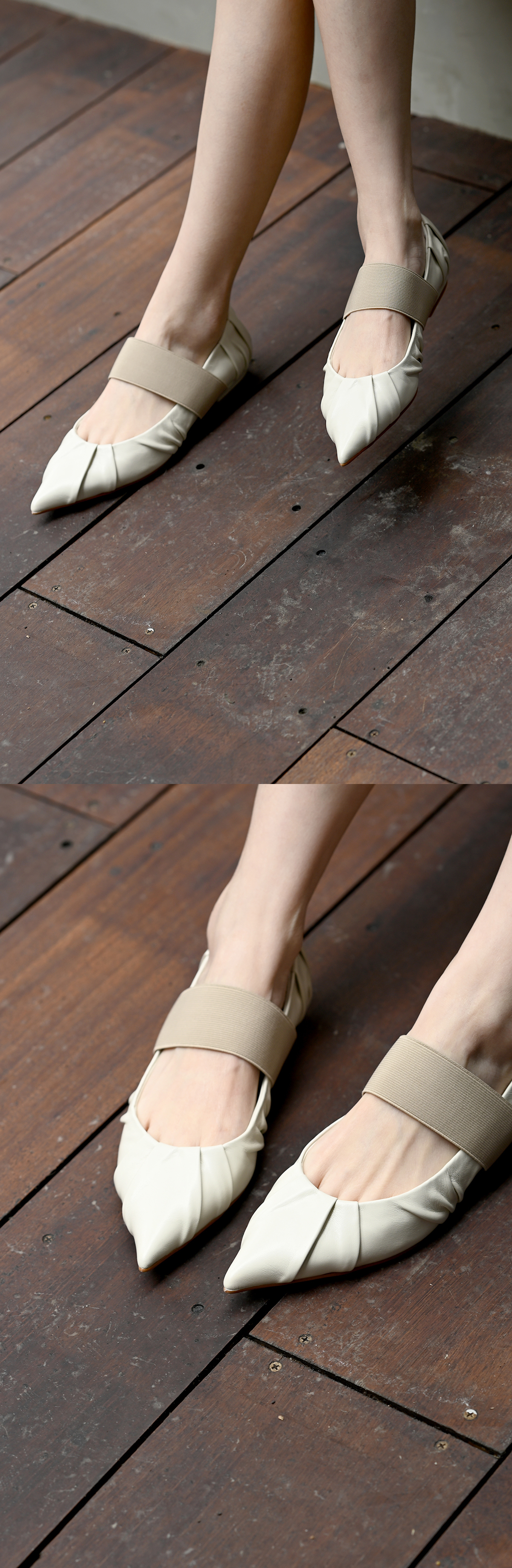 -輕摺疊皮-繃帶腳背尖頭鞋