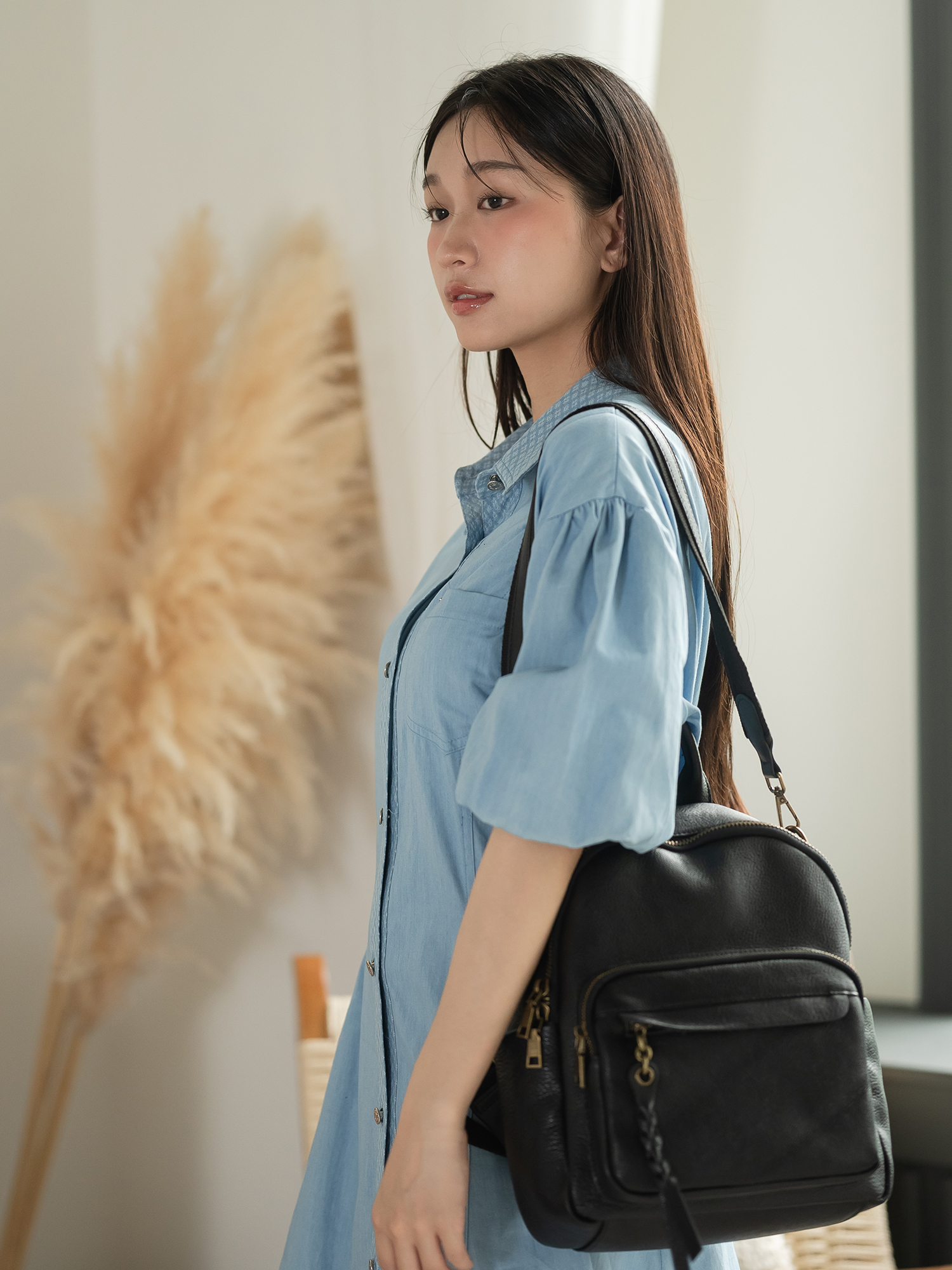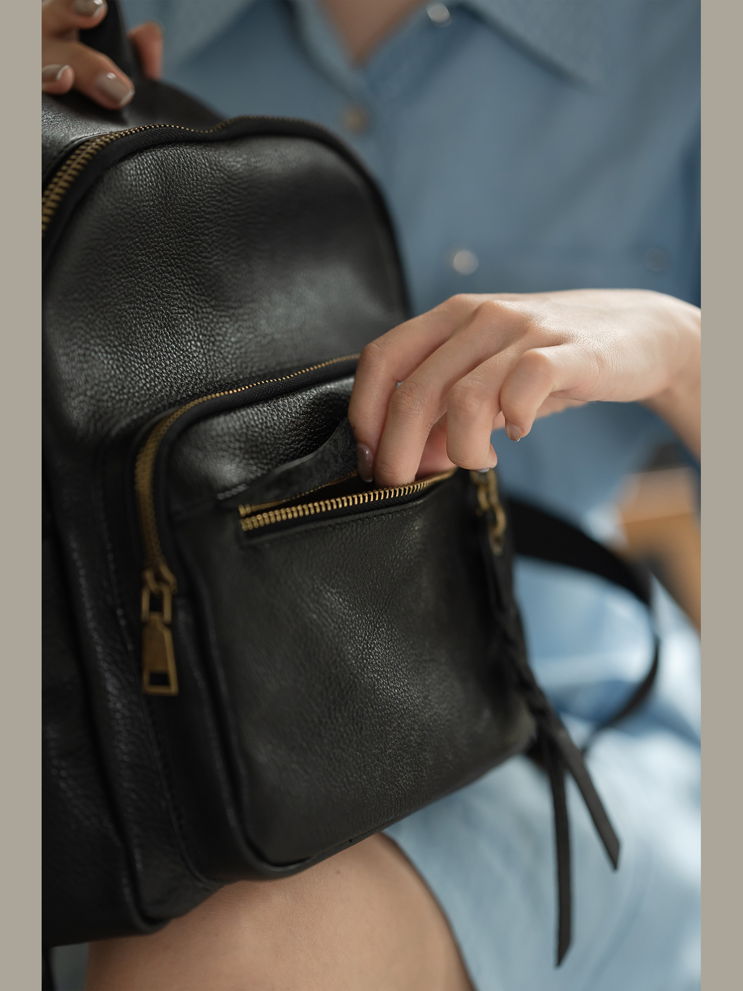 夾層:內部一主夾層 ( 含拉鍊袋口) 包前後都有拉鍊夾層