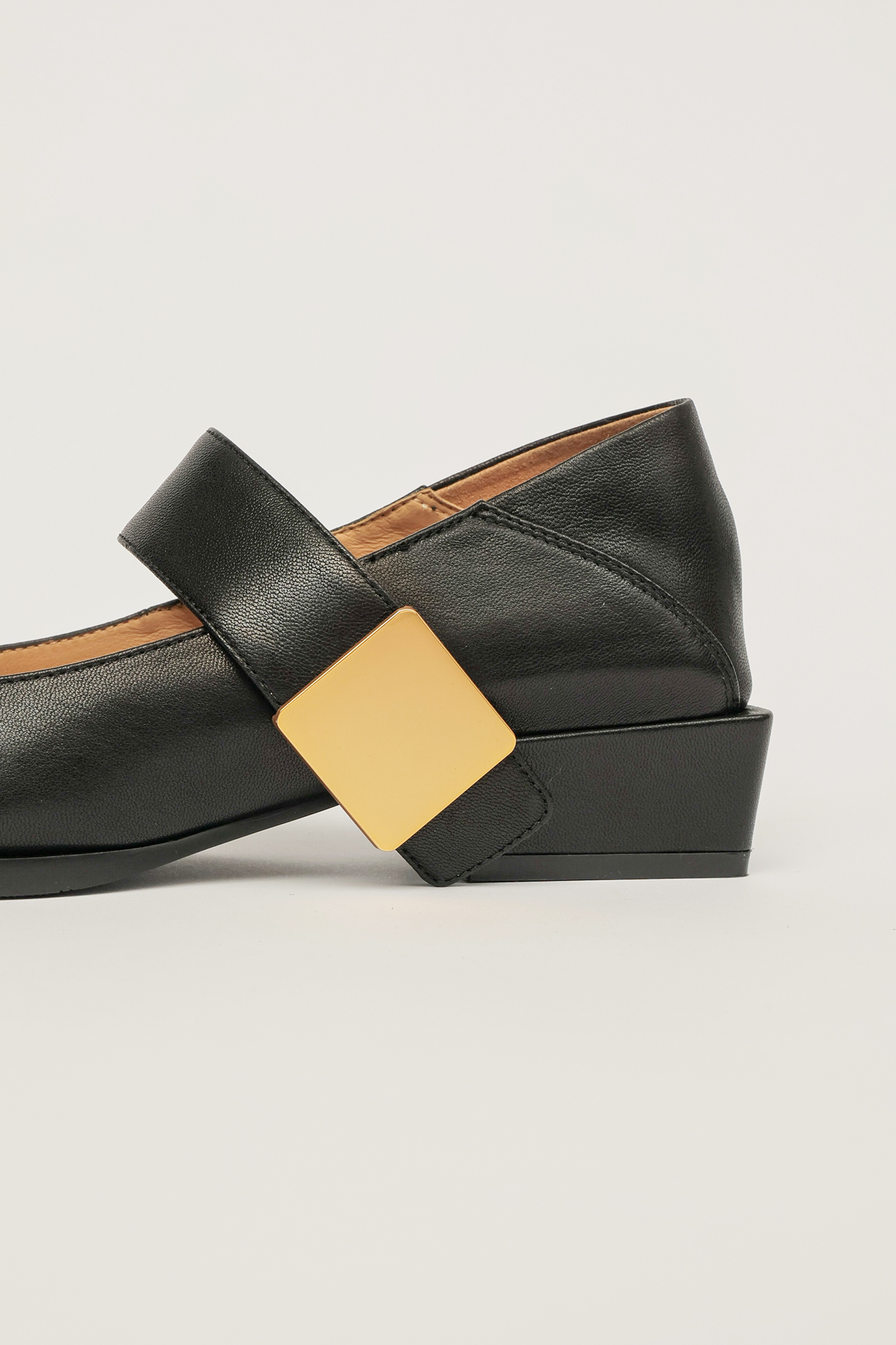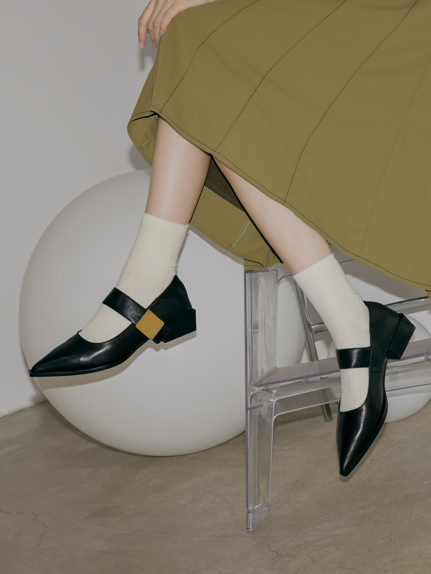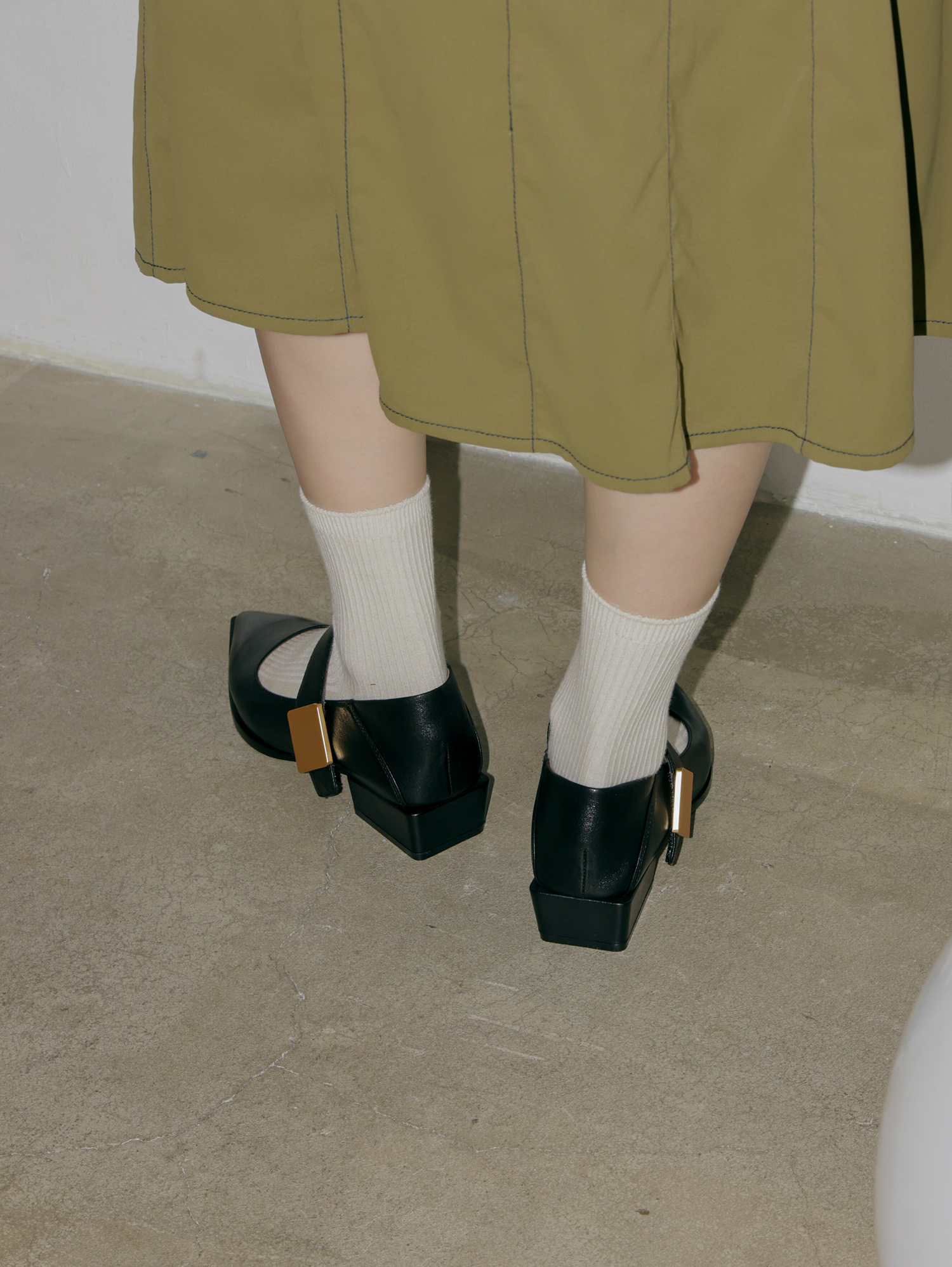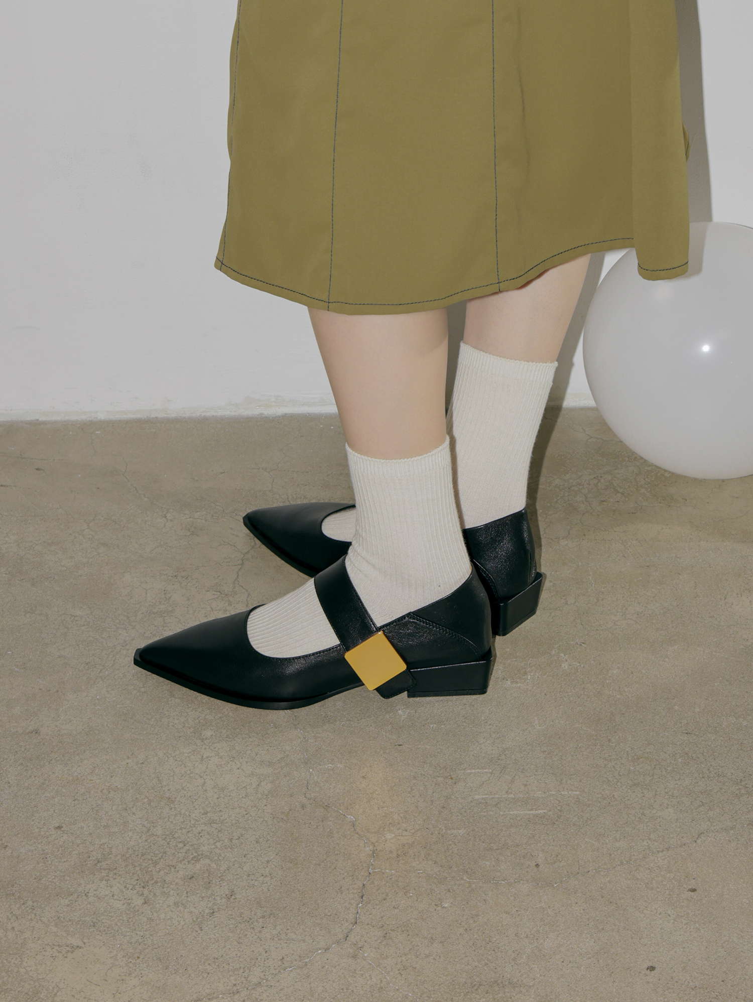 NO216-金色方塊裝飾-魔鬼粘穿脫方跟尖頭鞋-黑