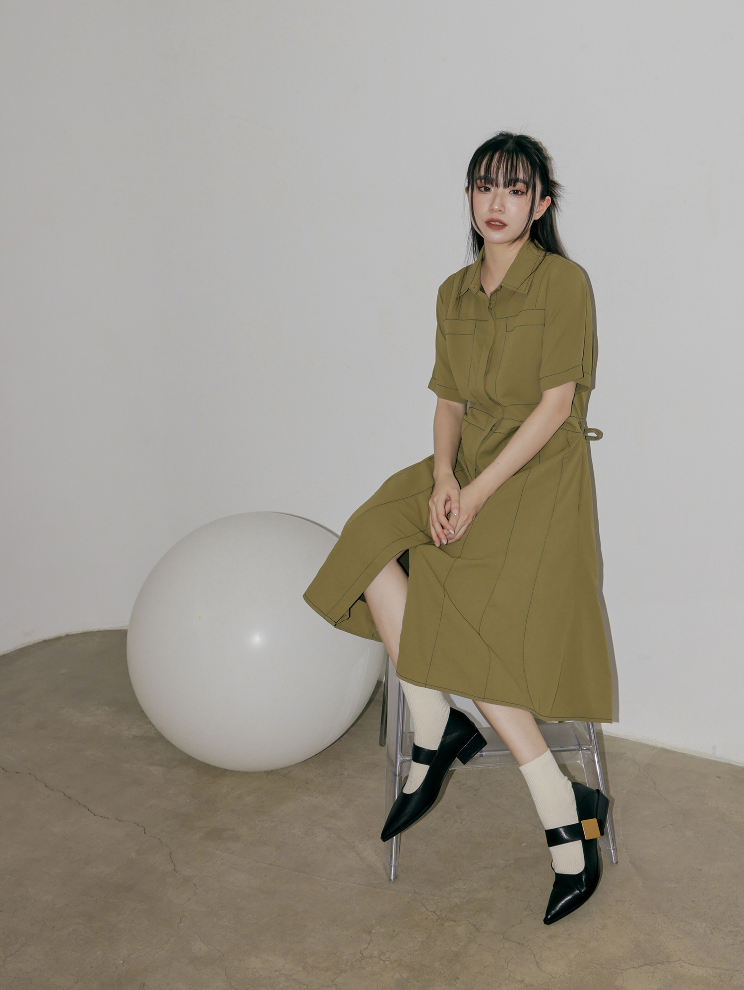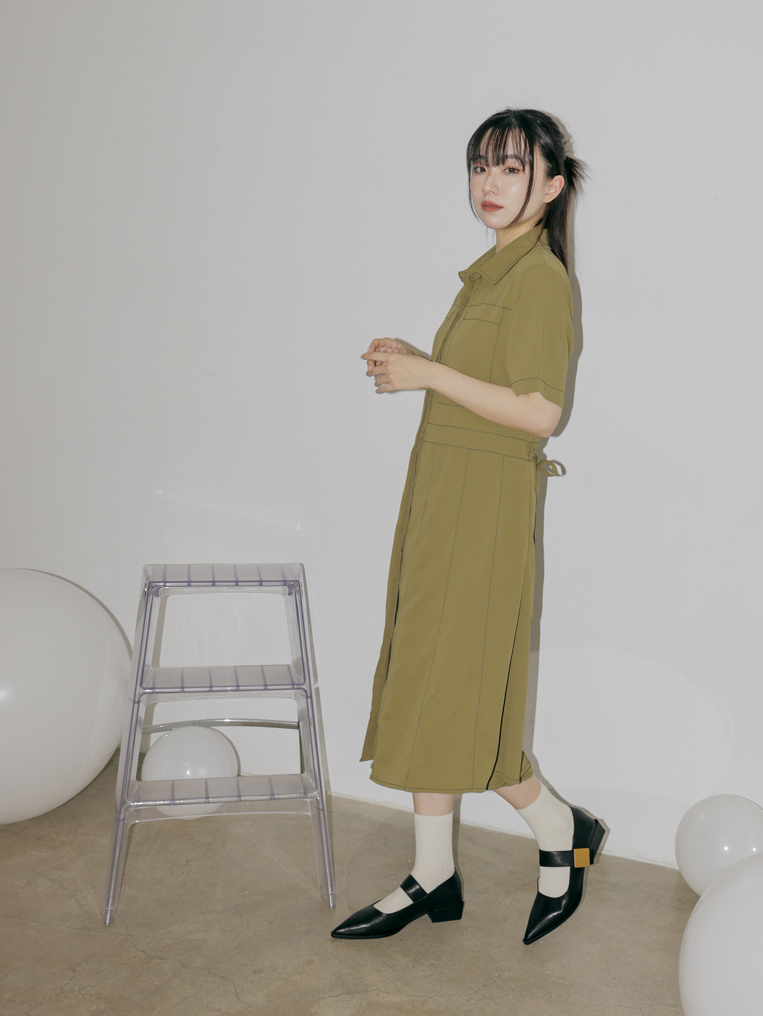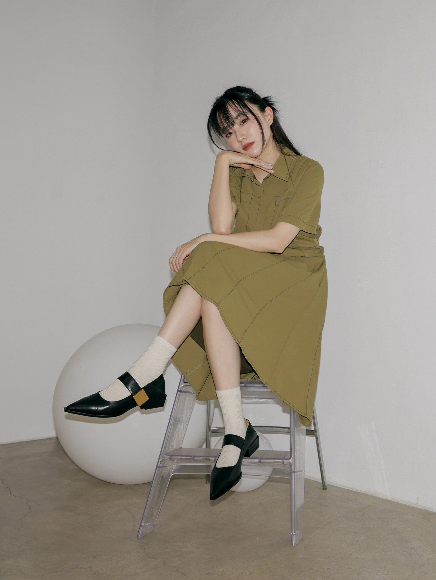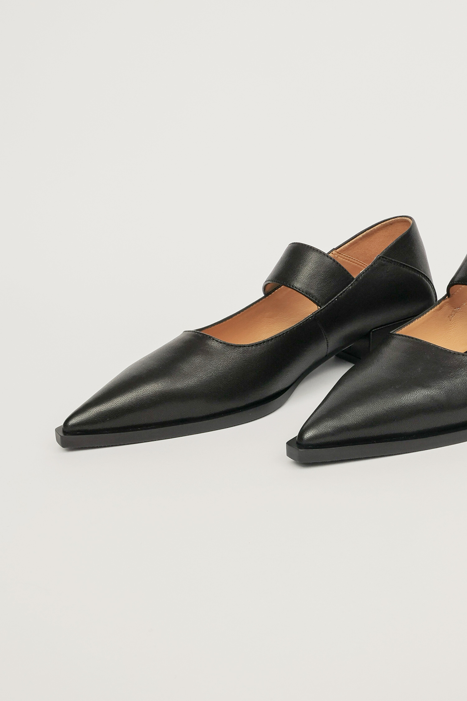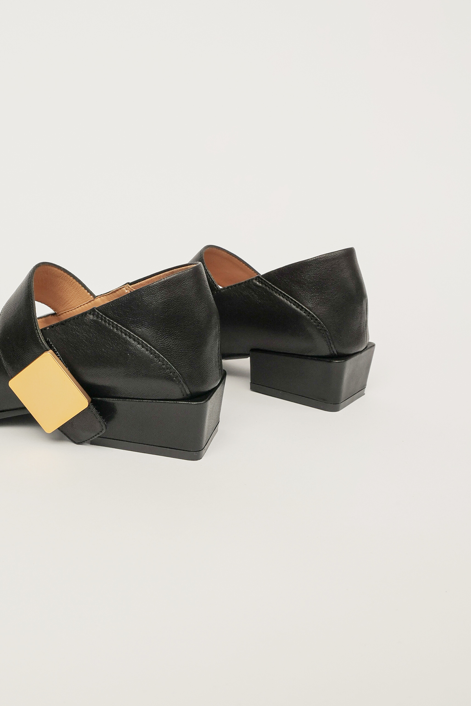NO216-金色方塊裝飾-魔鬼粘穿脫方跟尖頭鞋-黑