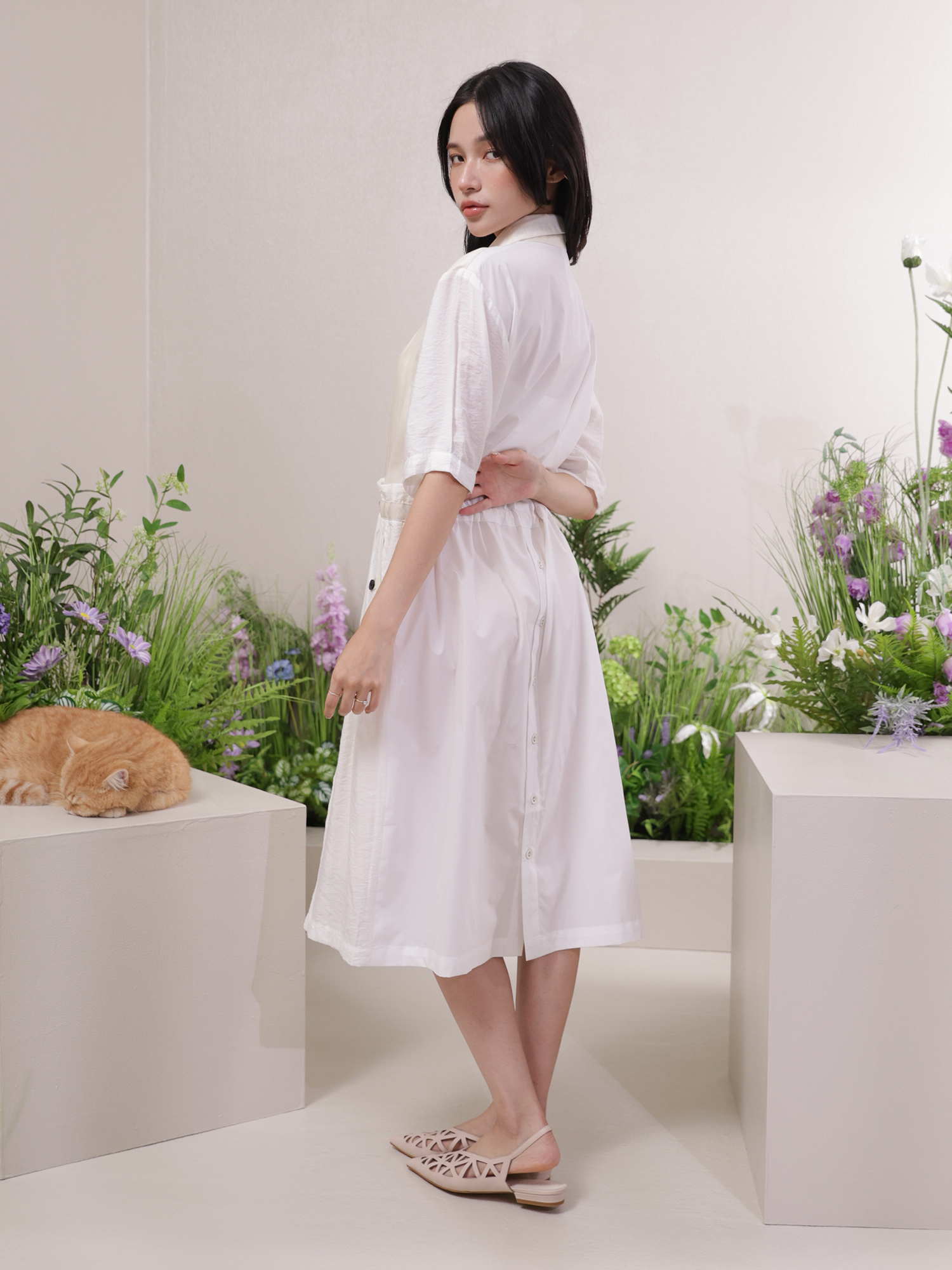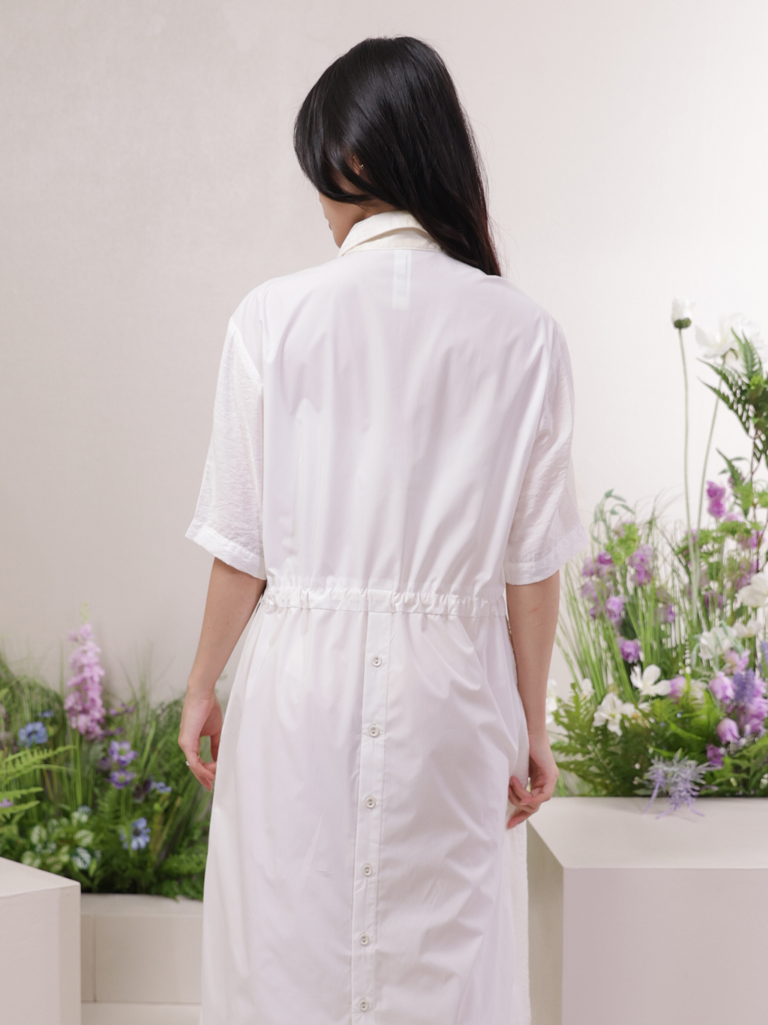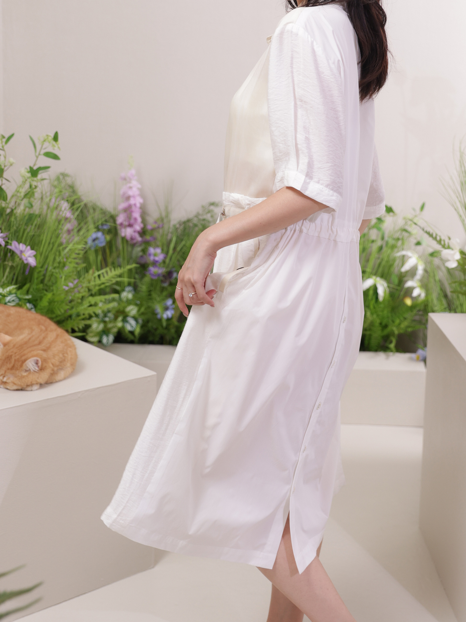 〈飄逸感-拼接結構短袖洋裝〉