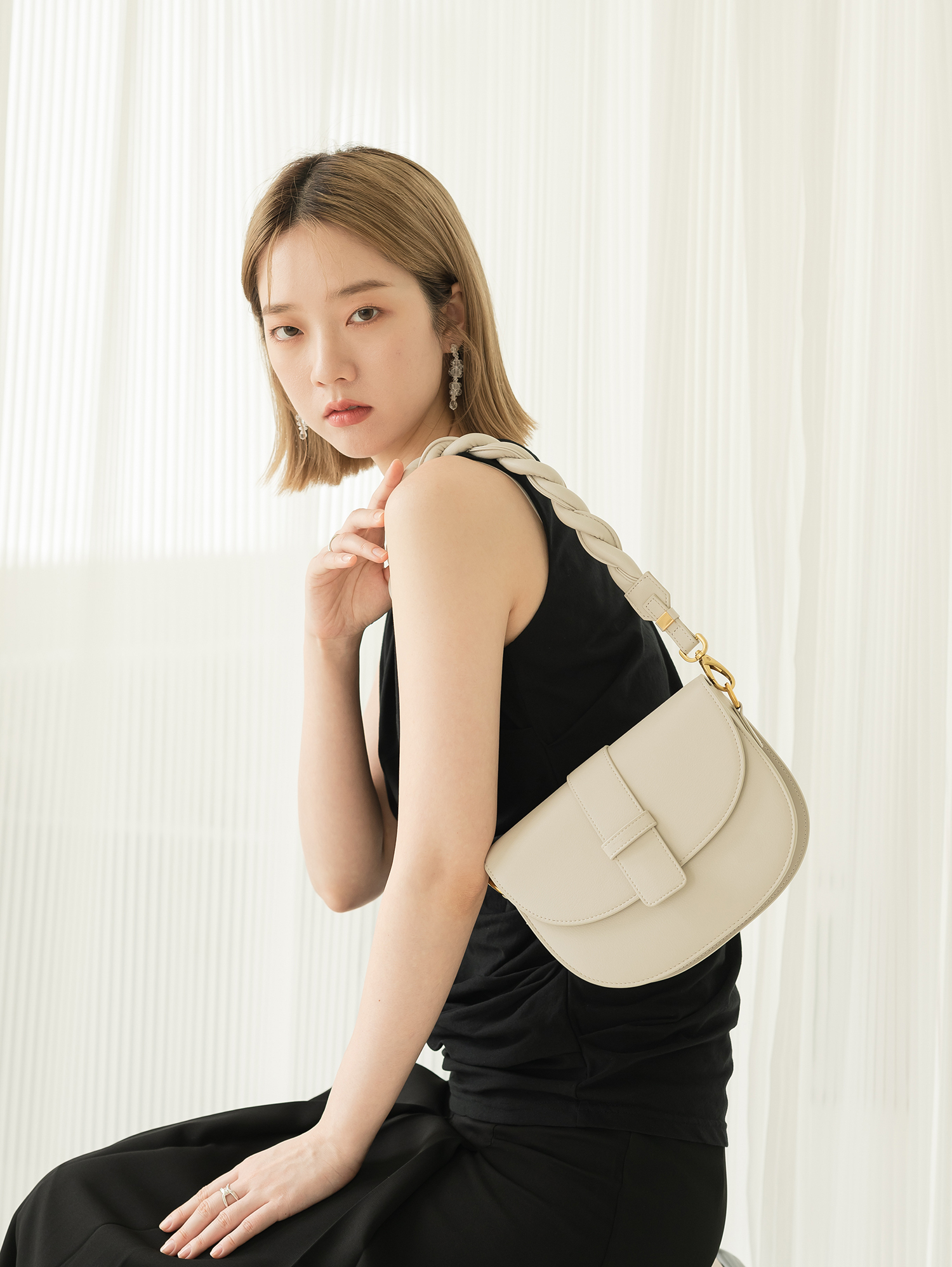 麻花背帶-寬皮扣馬鞍包