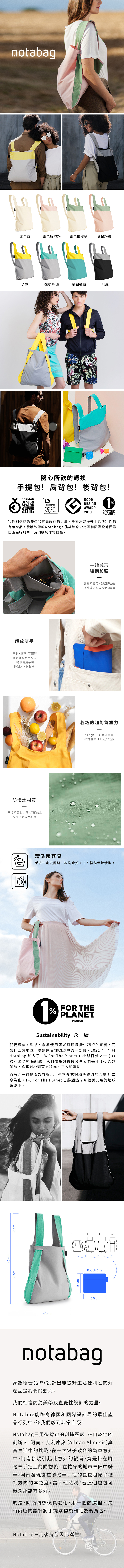 ‧ 展開後收納袋變內袋;方便存放錢包、鑰匙等其他小物