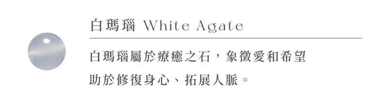 ◦ 白瑪瑙 | 避邪, 舒緩壓力, 增加免疫力