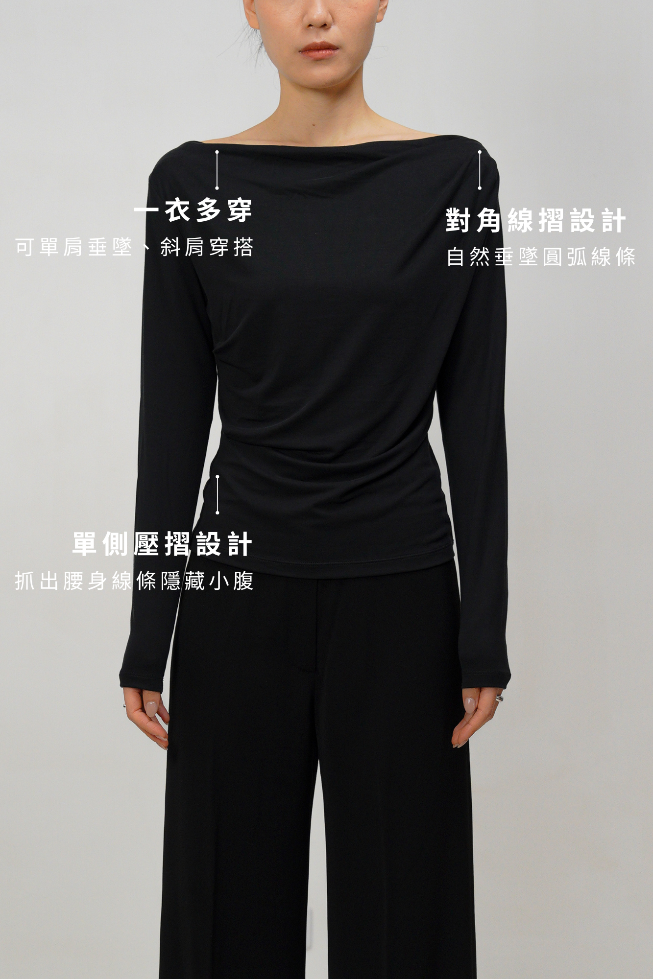 一衣多穿|可單肩垂墜、斜肩穿搭,輕鬆變換造型,適合不同場合