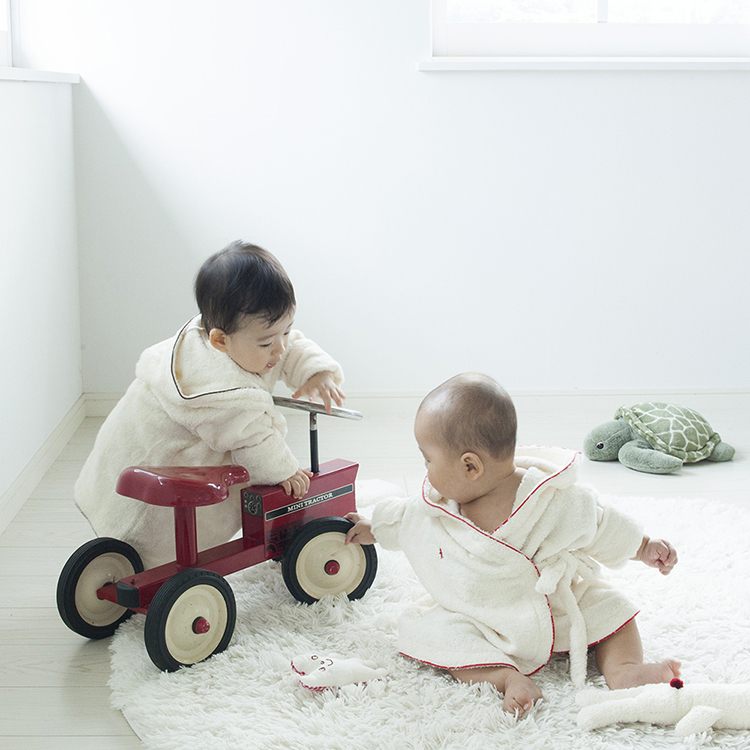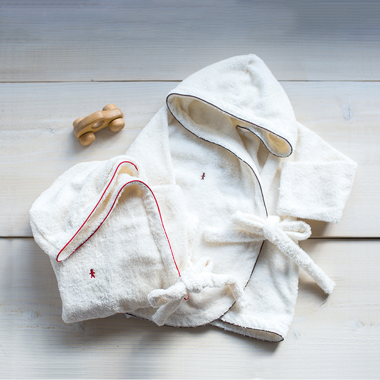 沐浴完替寶寶套上,在家也像住飯店般享有奢華的享受。為防止寶寶受涼,可在溫度下降的早晨和晚上保護寶貝小肚子免於受涼。經過公平交易精心挑選有機棉製成,親膚性佳,非常適合嬰兒敏感的肌膚。即使對於新生兒也可以放心使用。