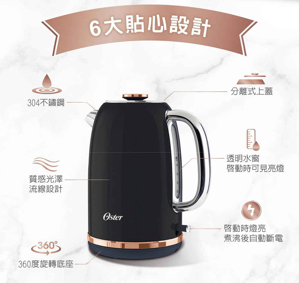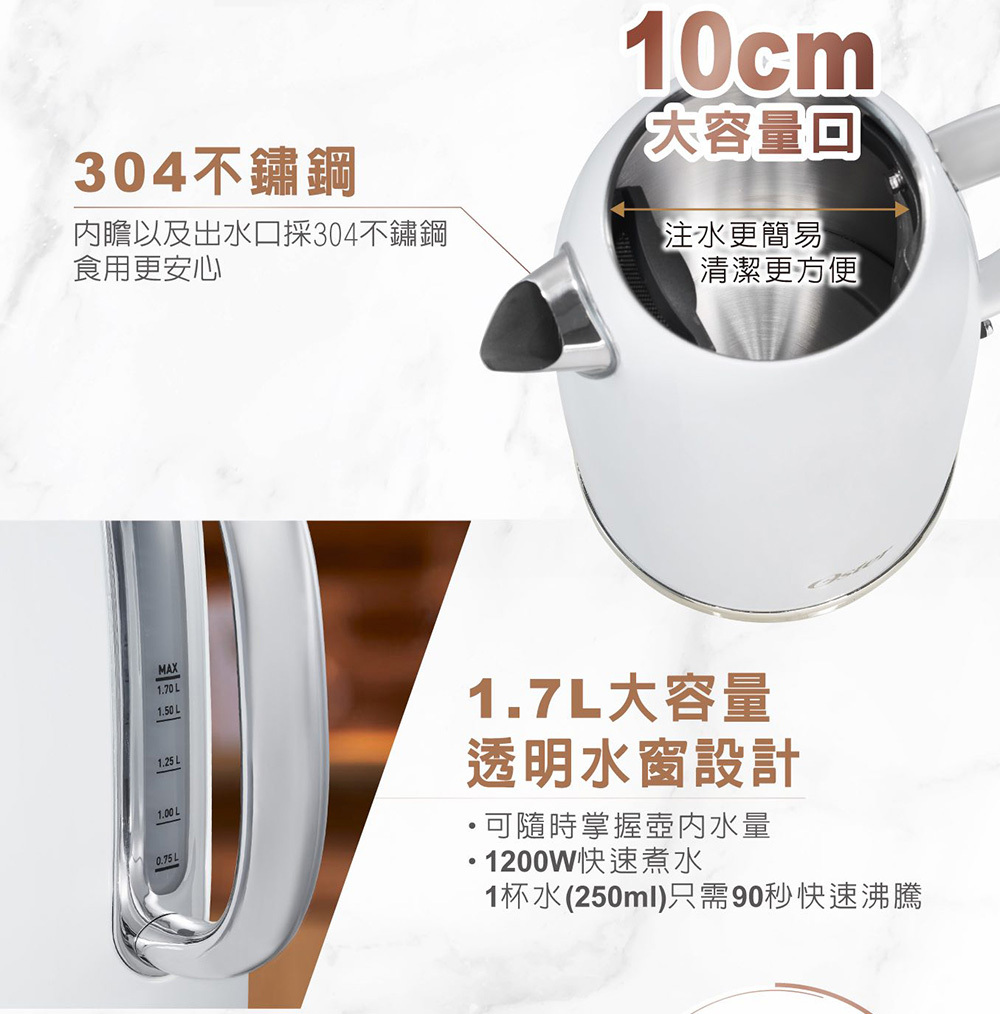 ★1.7L容量搭配1200瓦功率:省電且快速沸騰