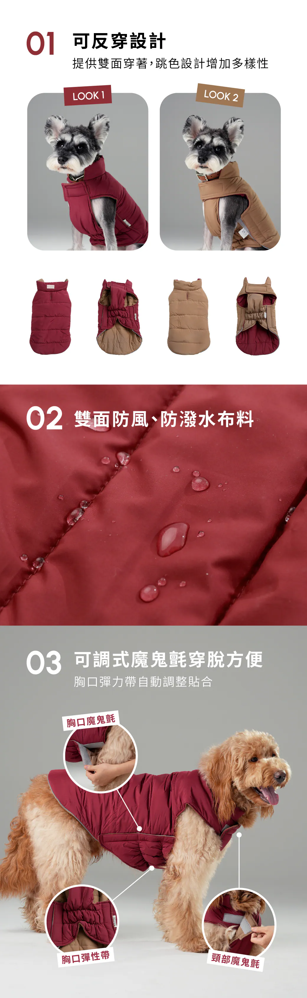 01 可反穿設計:提供雙面穿著,跳色設計增加多樣性