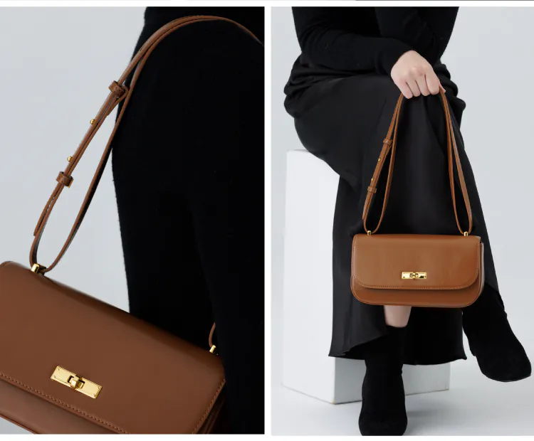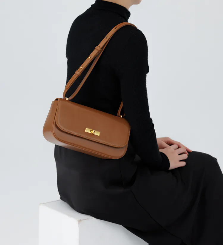 ● 法式腋下包點綴金屬轉釦,經典簡約好搭配