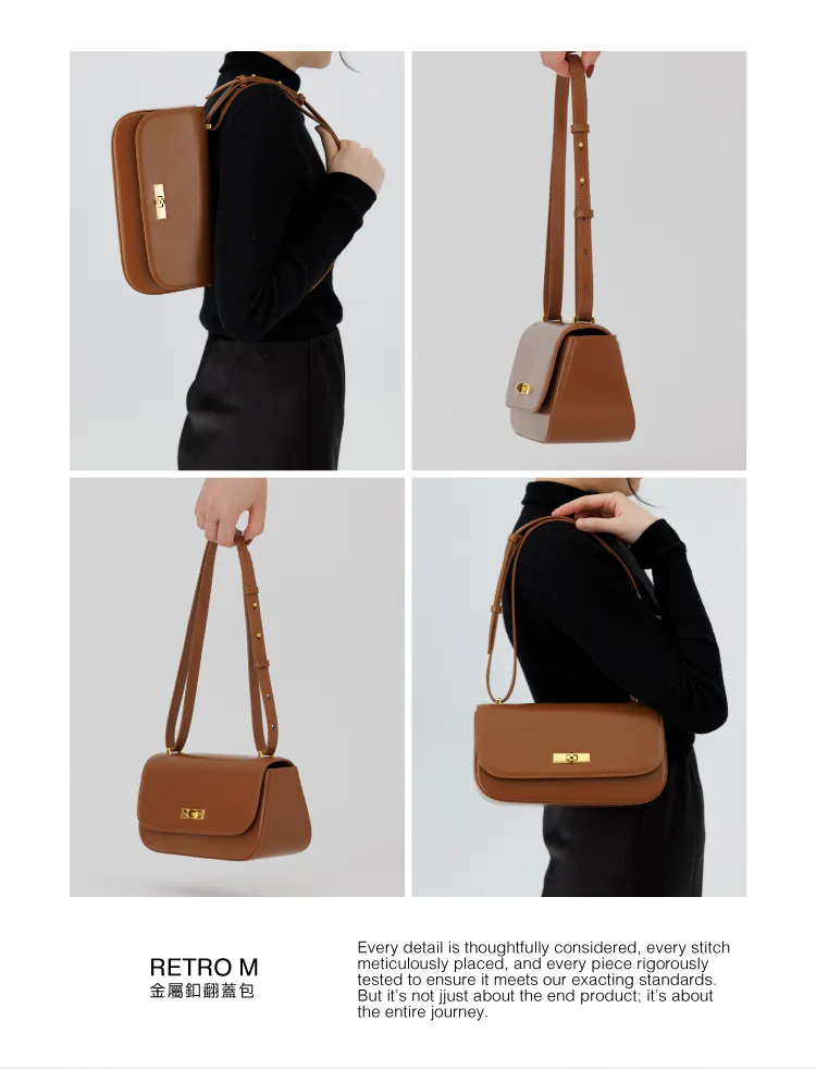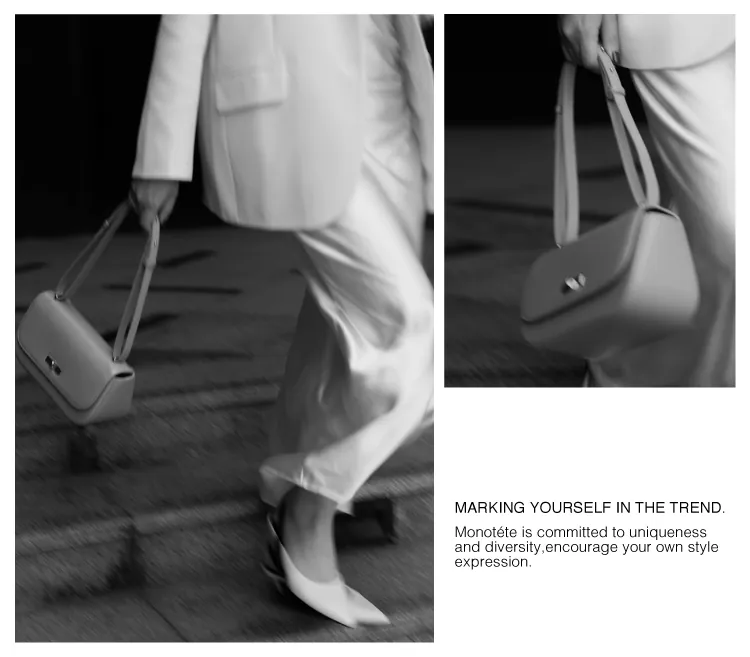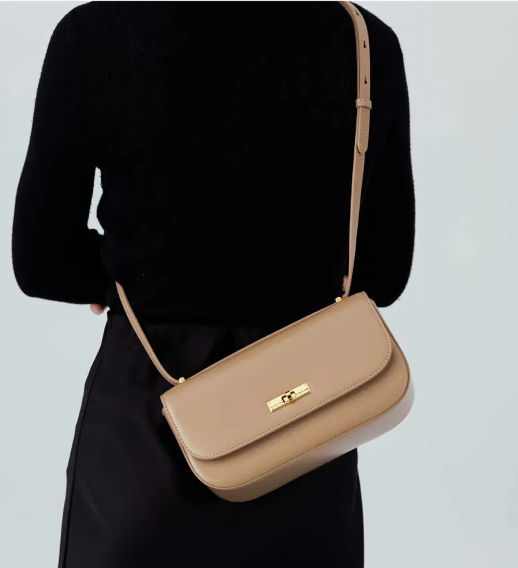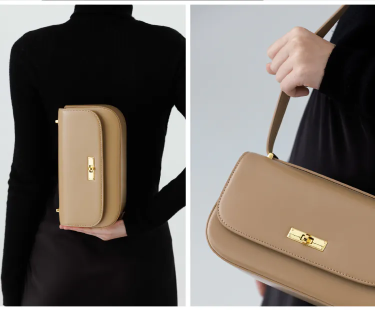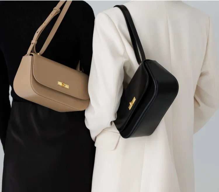 ● 法式腋下包點綴金屬轉釦,經典簡約好搭配