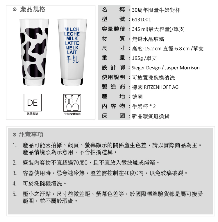 限量版 /德國百年高科技玻璃工廠製造/ 知名設計師操刀 / 集結最熱銷售花色 / 容量:345 ml