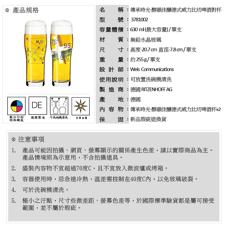 RITZENHOFF-傳承時光系列-德式威力比切啤酒對杯-醇韻佳釀
