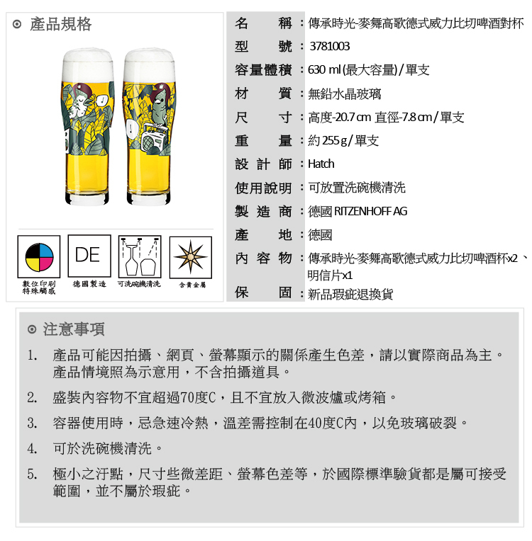 RITZENHOFF-傳承時光系列-德式威力比切啤酒對杯-麥舞高歌