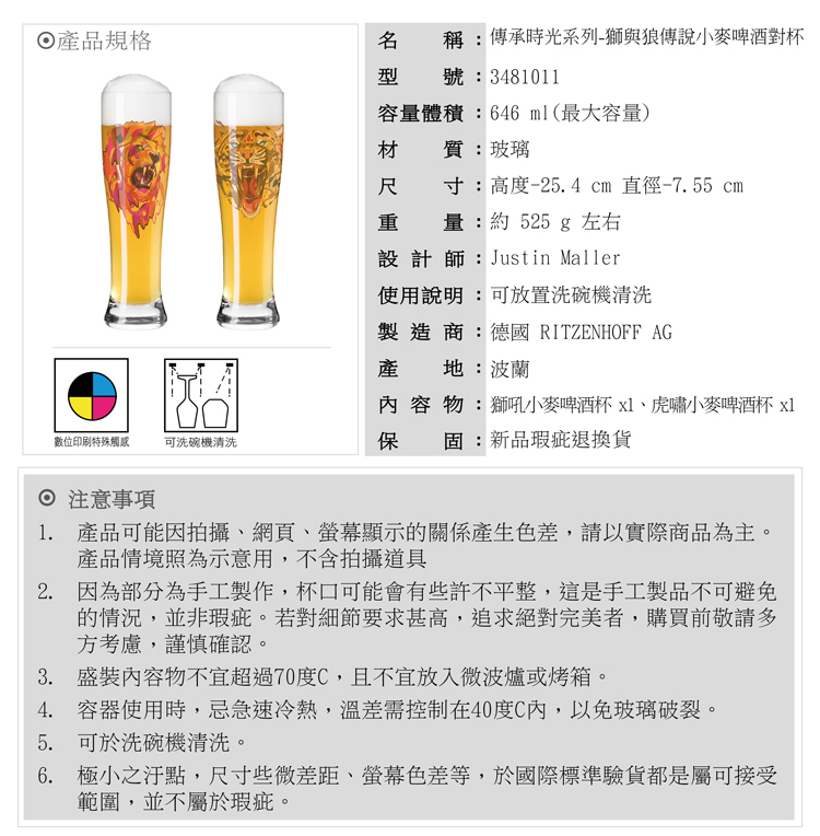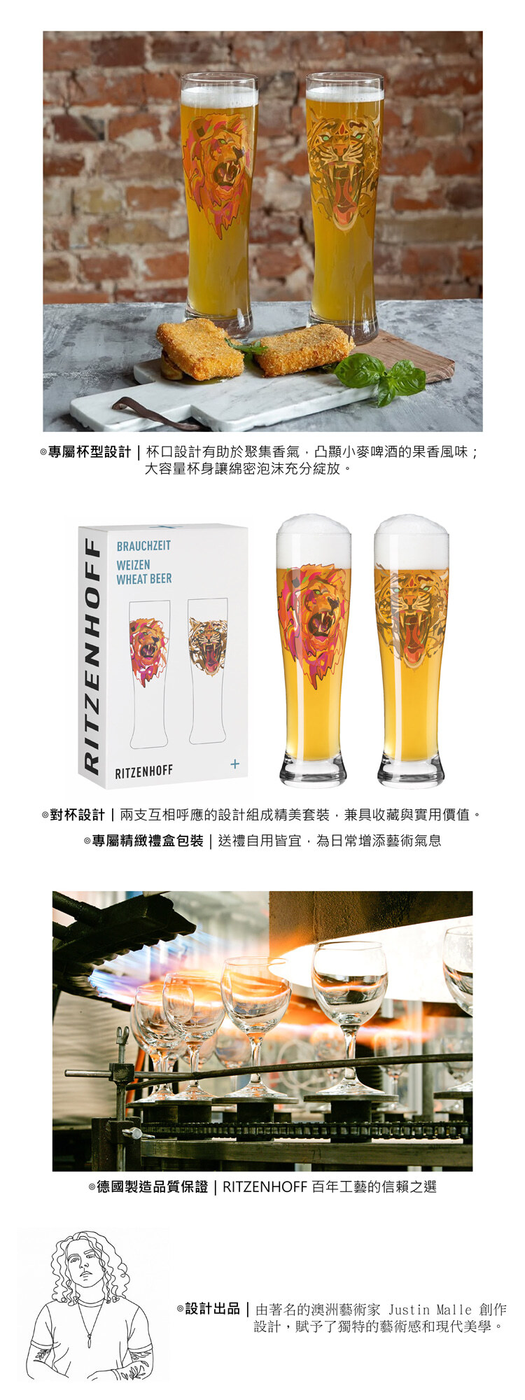 ◎專屬杯型設計|杯口設計有助於聚集香氣,凸顯小麥啤酒的果香風味;大容量杯身讓綿密泡沫充分綻放。