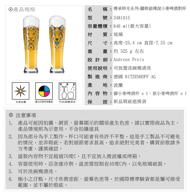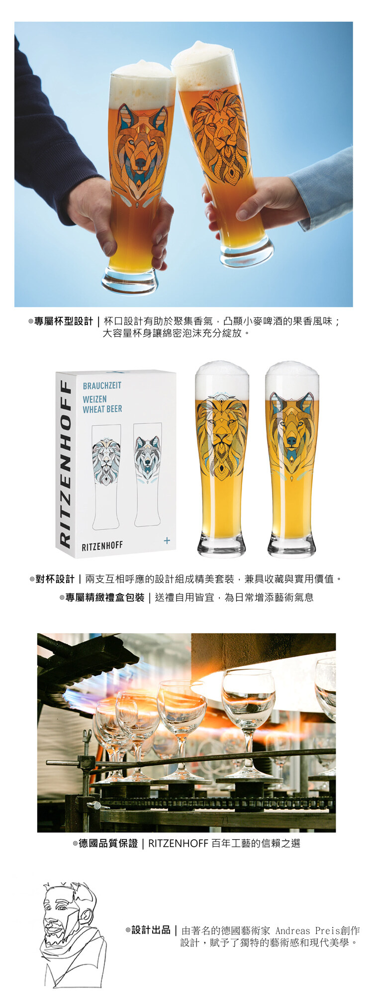 ◎專屬杯型設計|杯口設計有助於聚集香氣,凸顯小麥啤酒的果香風味;大容量杯身讓綿密泡沫充分綻放。