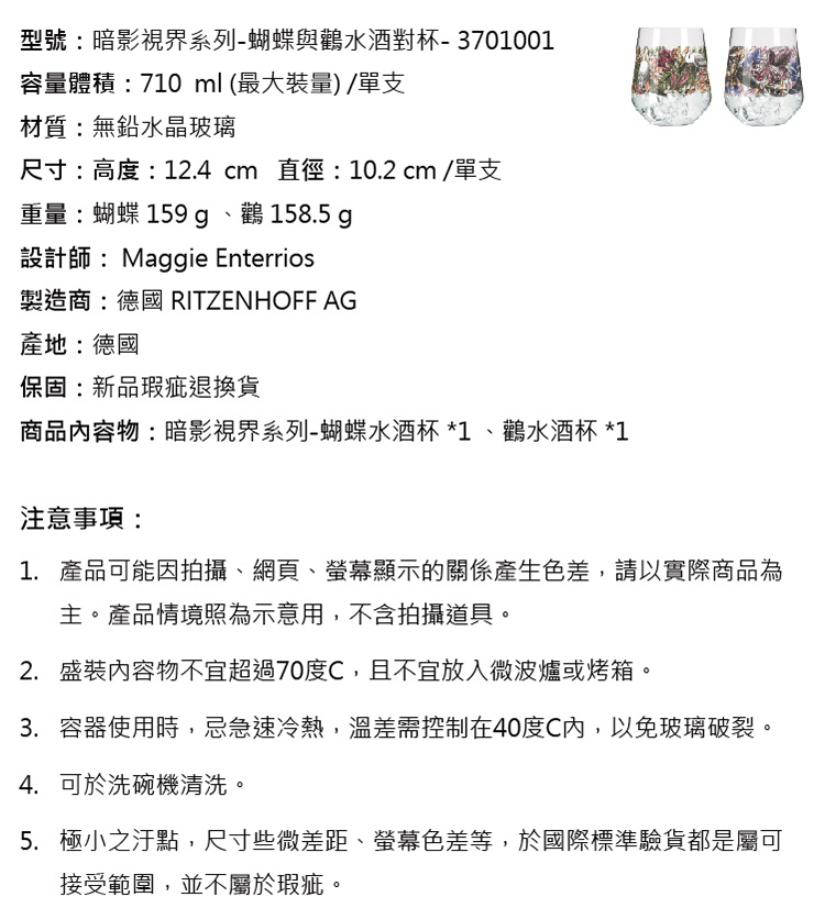 RITZENHOFF-暗影視界系列-水酒對杯-蝴蝶與鸛 / 710 ml