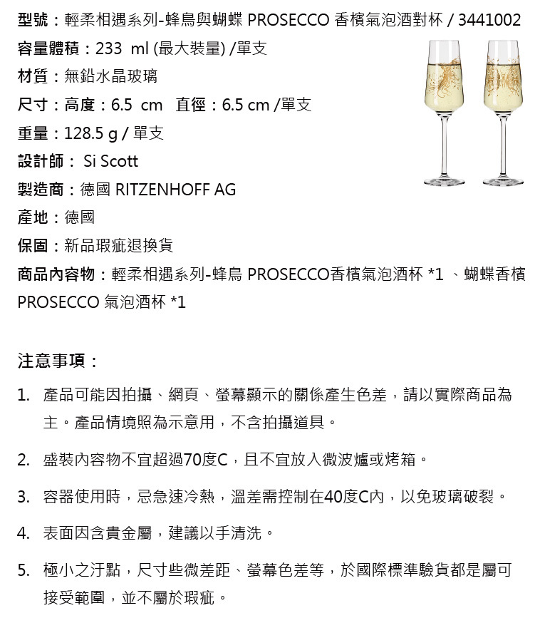 RITZENHOFF-香檳氣泡酒對杯-蜂鳥與蝴蝶