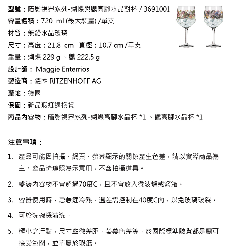 RITZENHOFF-暗影視界系列-高腳水晶對杯-蝴蝶與鸛 / 720 ml