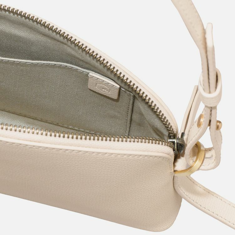 - 採用 Crumbs Leather 壓紋皮革,搭配布質內襯
